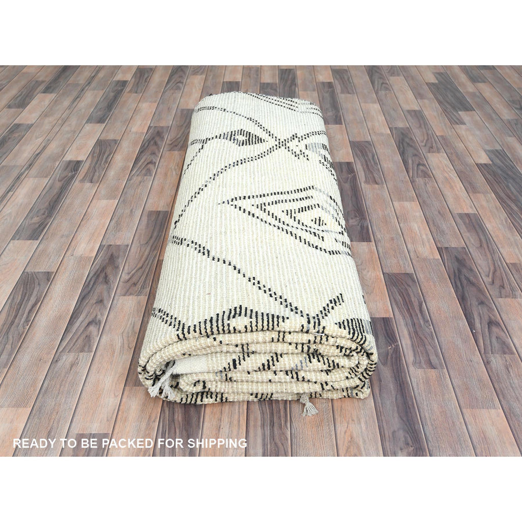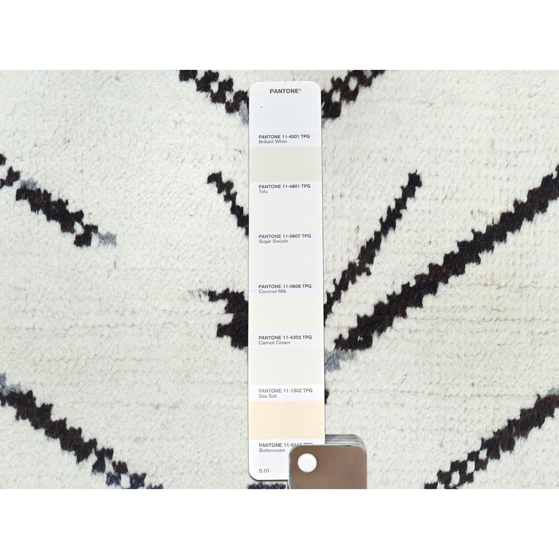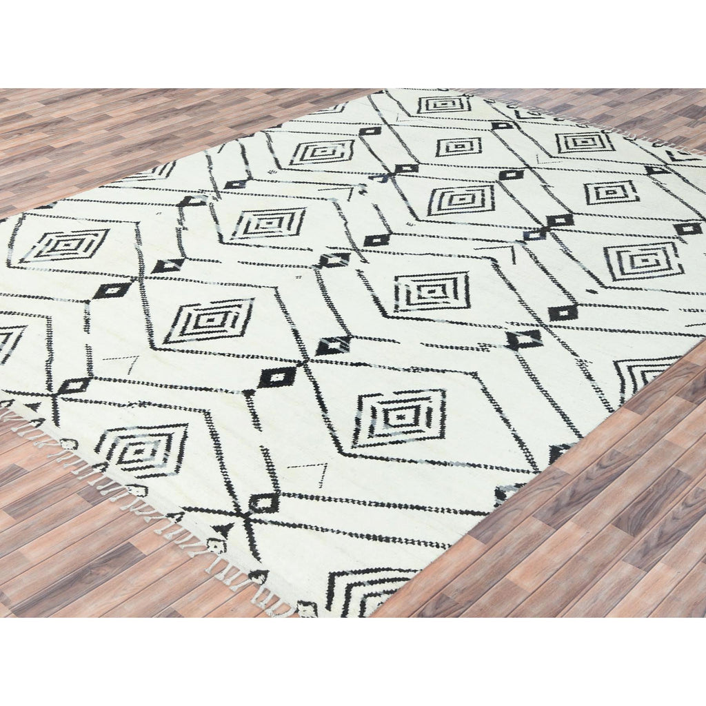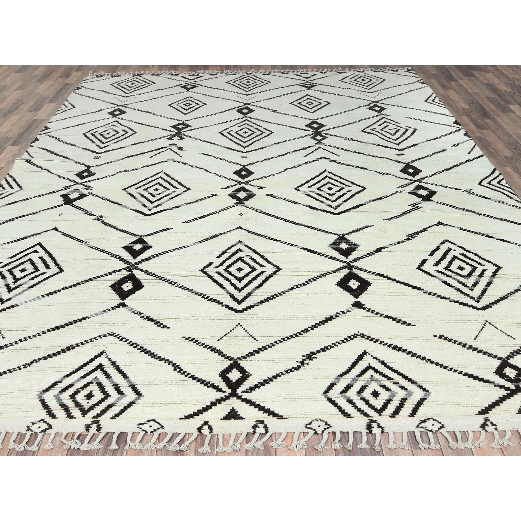 10'x14'4" Ivory, Moroccan Berber Influence With Serrated Pattern, Natural Dyes, Extra Soft Wool Hand Knotted, Oriental Rug FWR497718