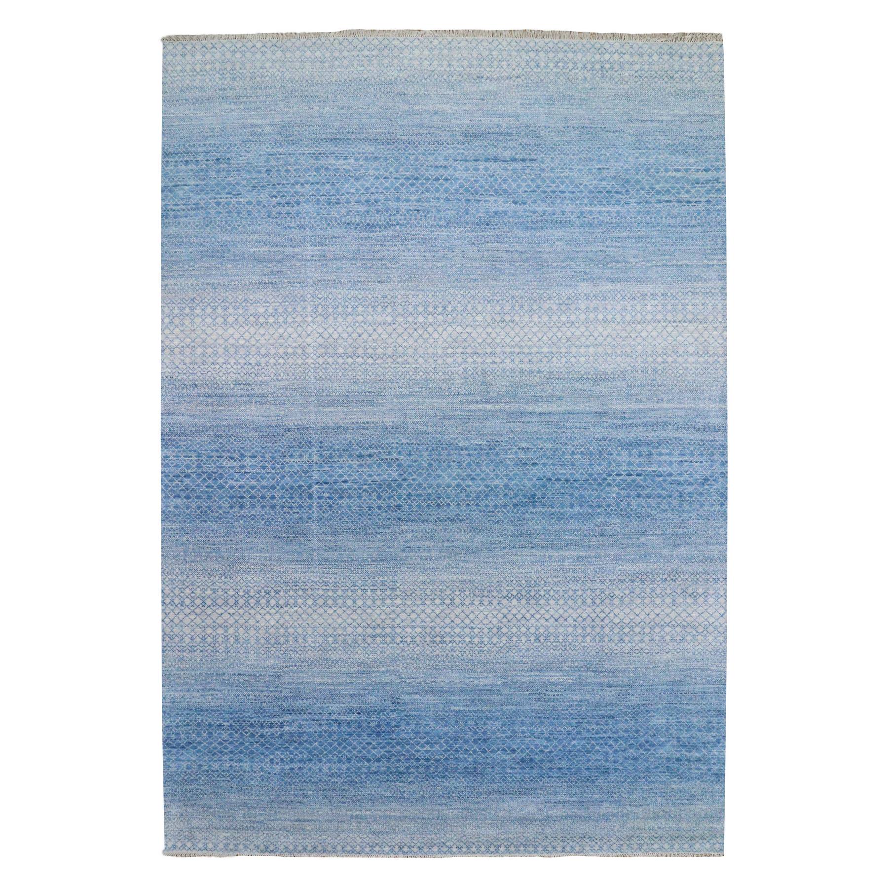 10'x14'4" Light Blue, Pure Wool Hand Knotted, Modern Chiaroscuro Collection Thick And Plush, Oriental Rug FWR475080