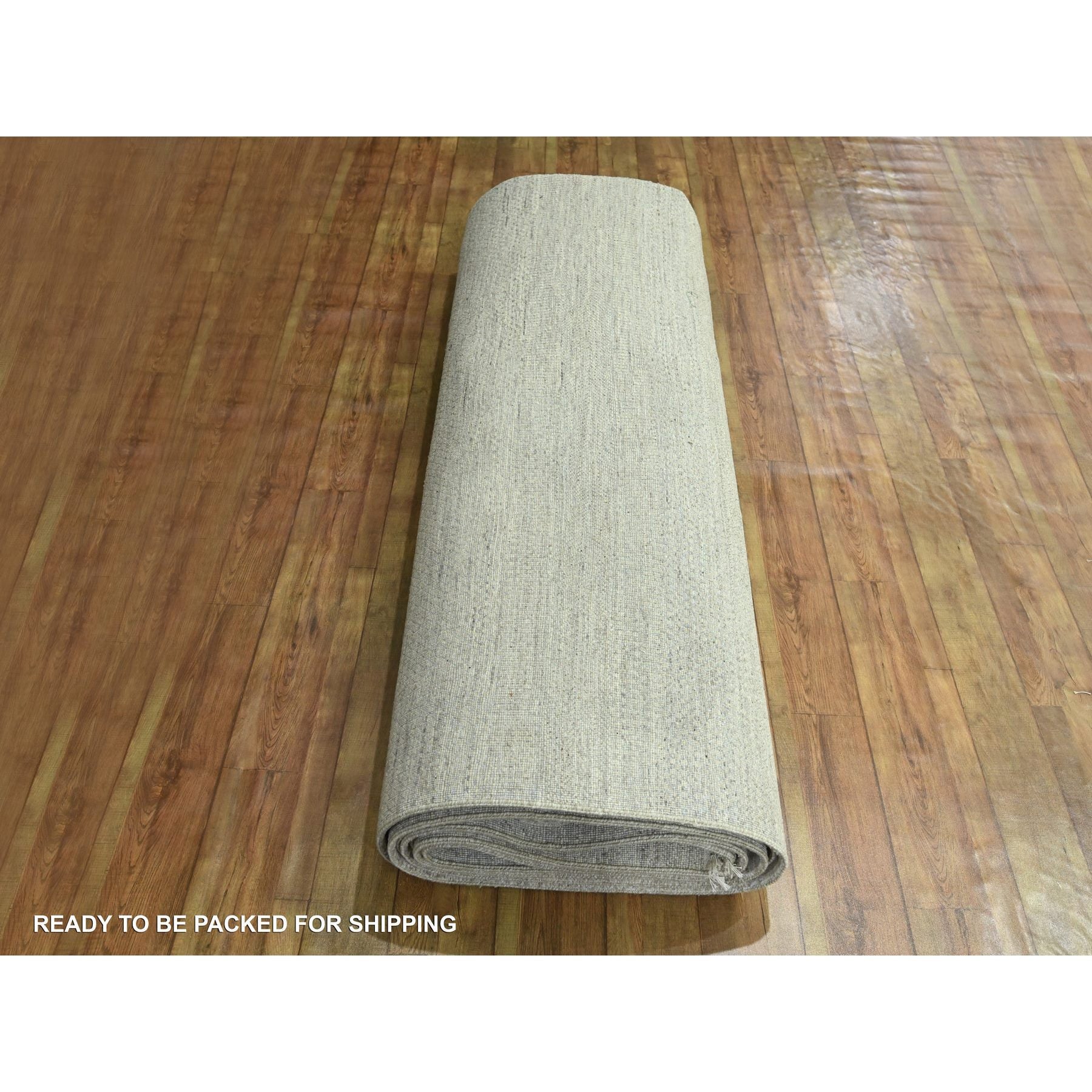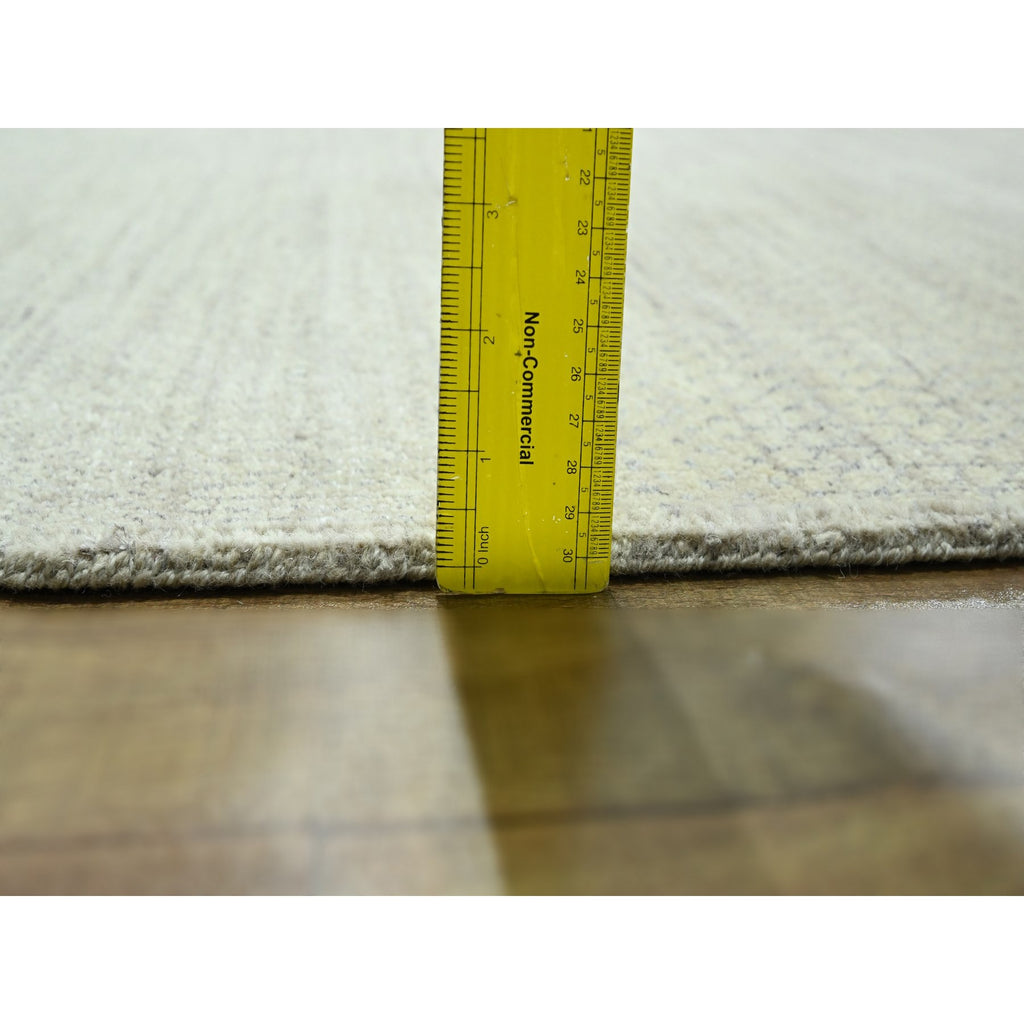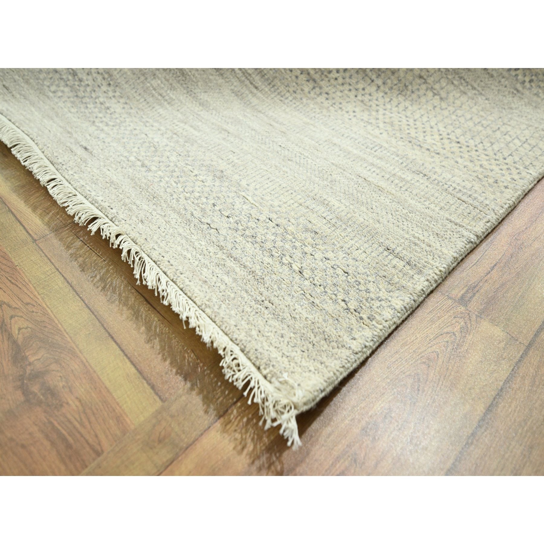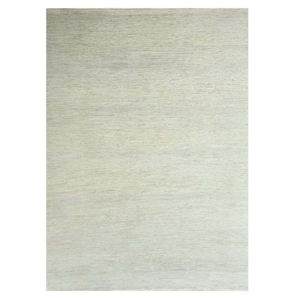 10'x14' Bone White, Modern Grass Design, Hand Knotted, Borderless, Denser Weave, Tone On Tone, Wool And Silk, Lush And Plush, Oriental Rug FWR458010