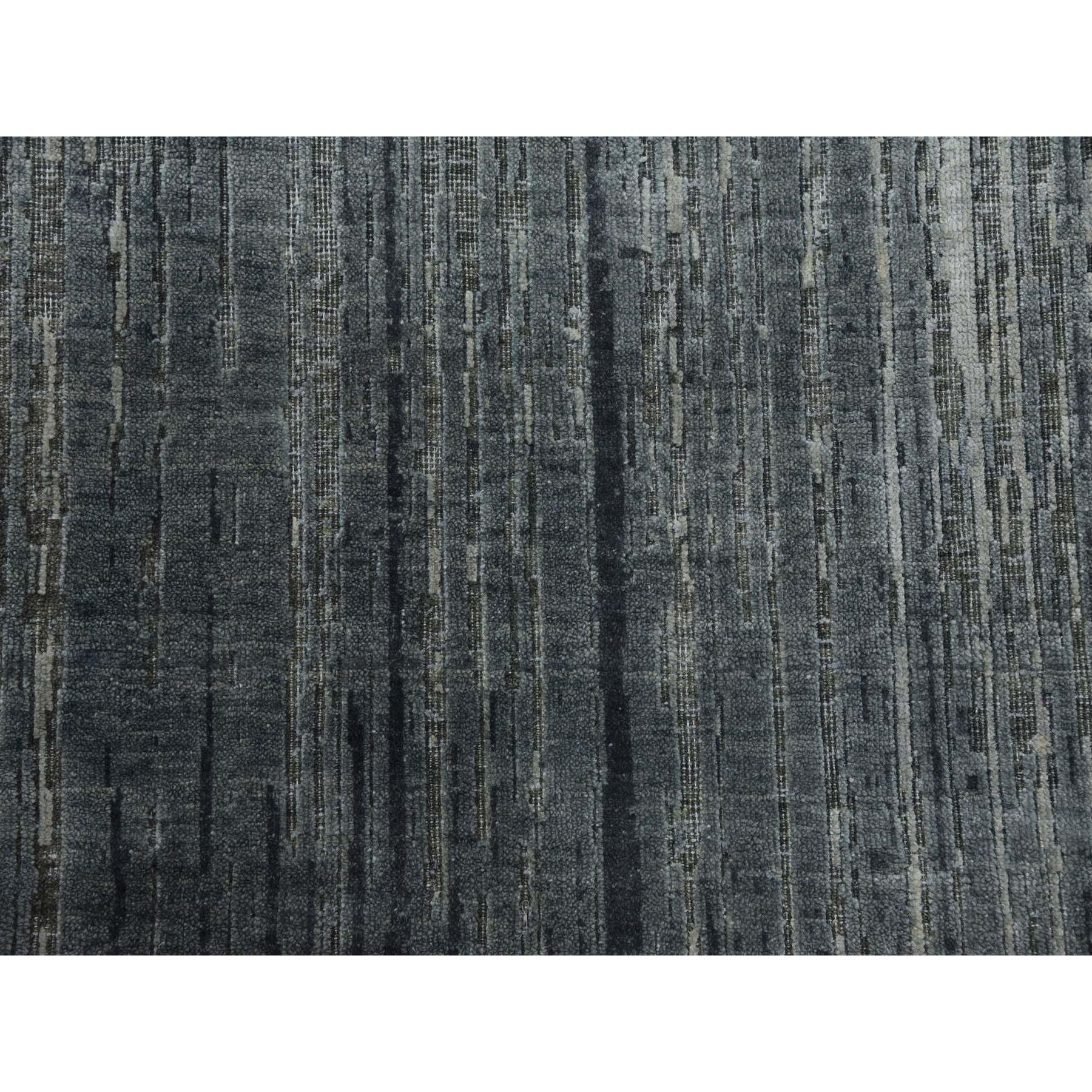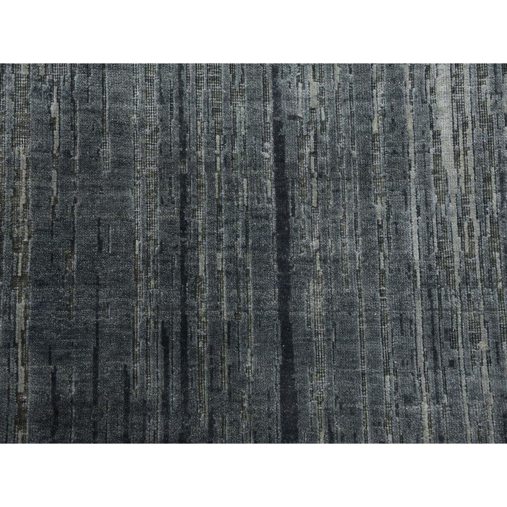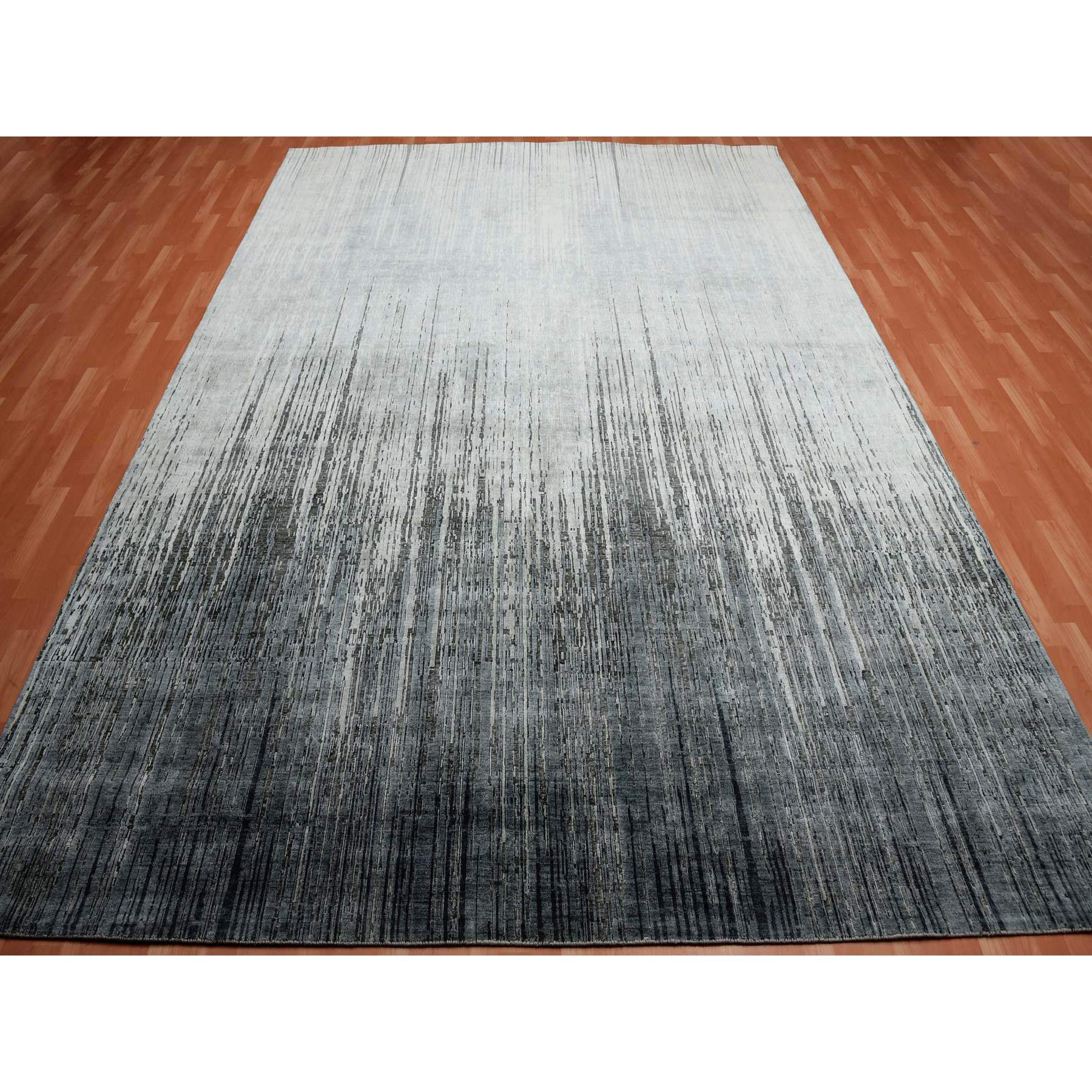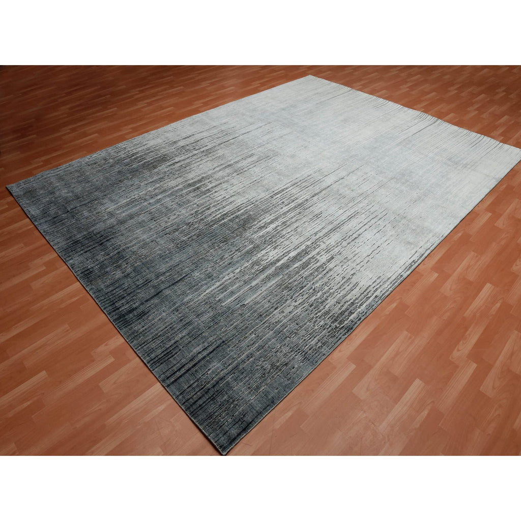 10'x14' Charcoal Gray Vertical Ombre Design Pure Silk With Textured Wool Hand Knotted Oriental Rug FWR451542