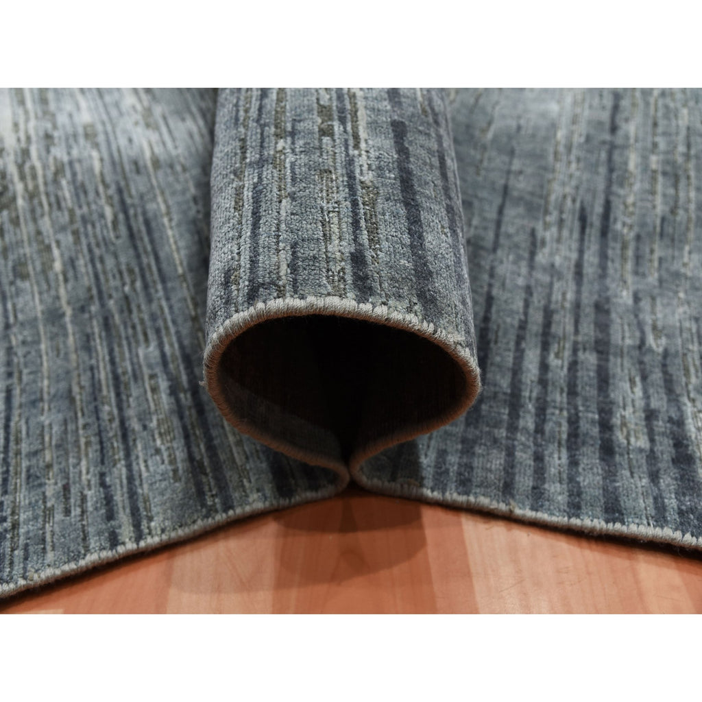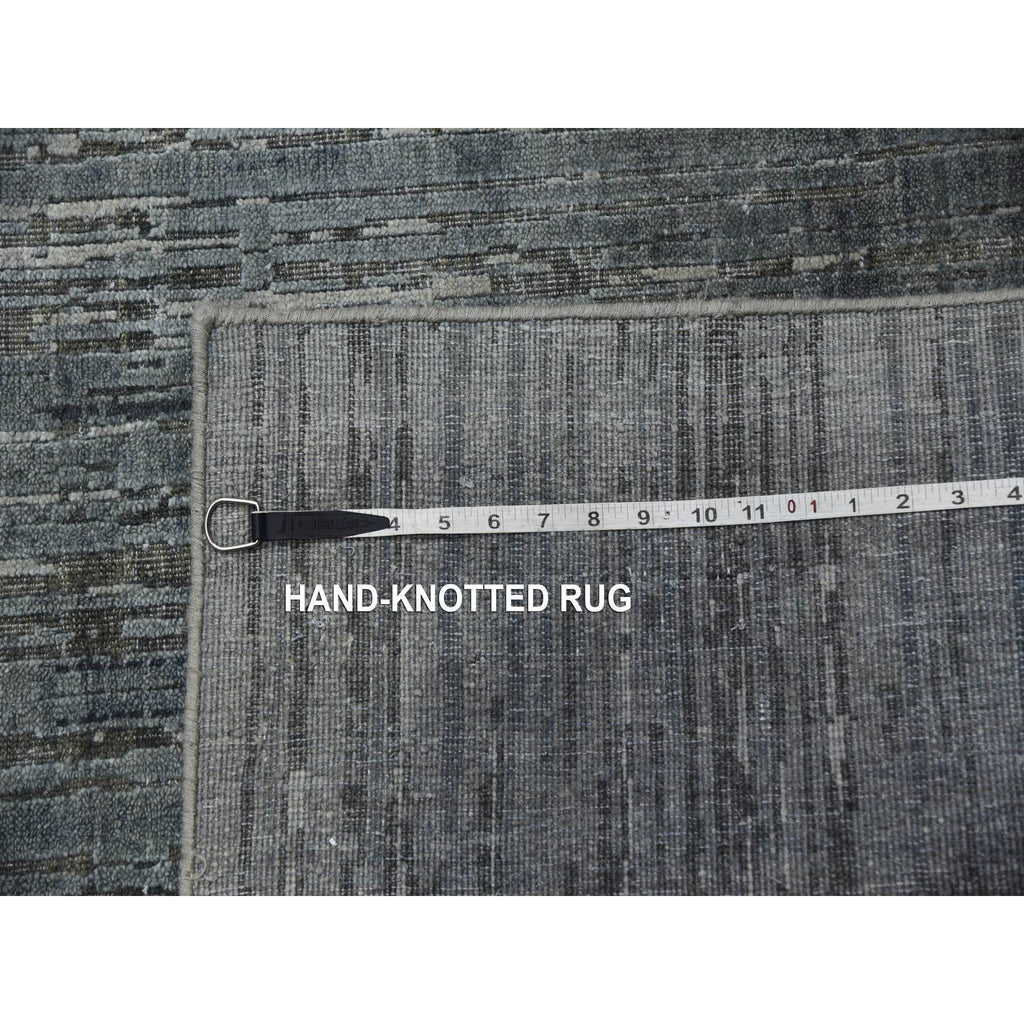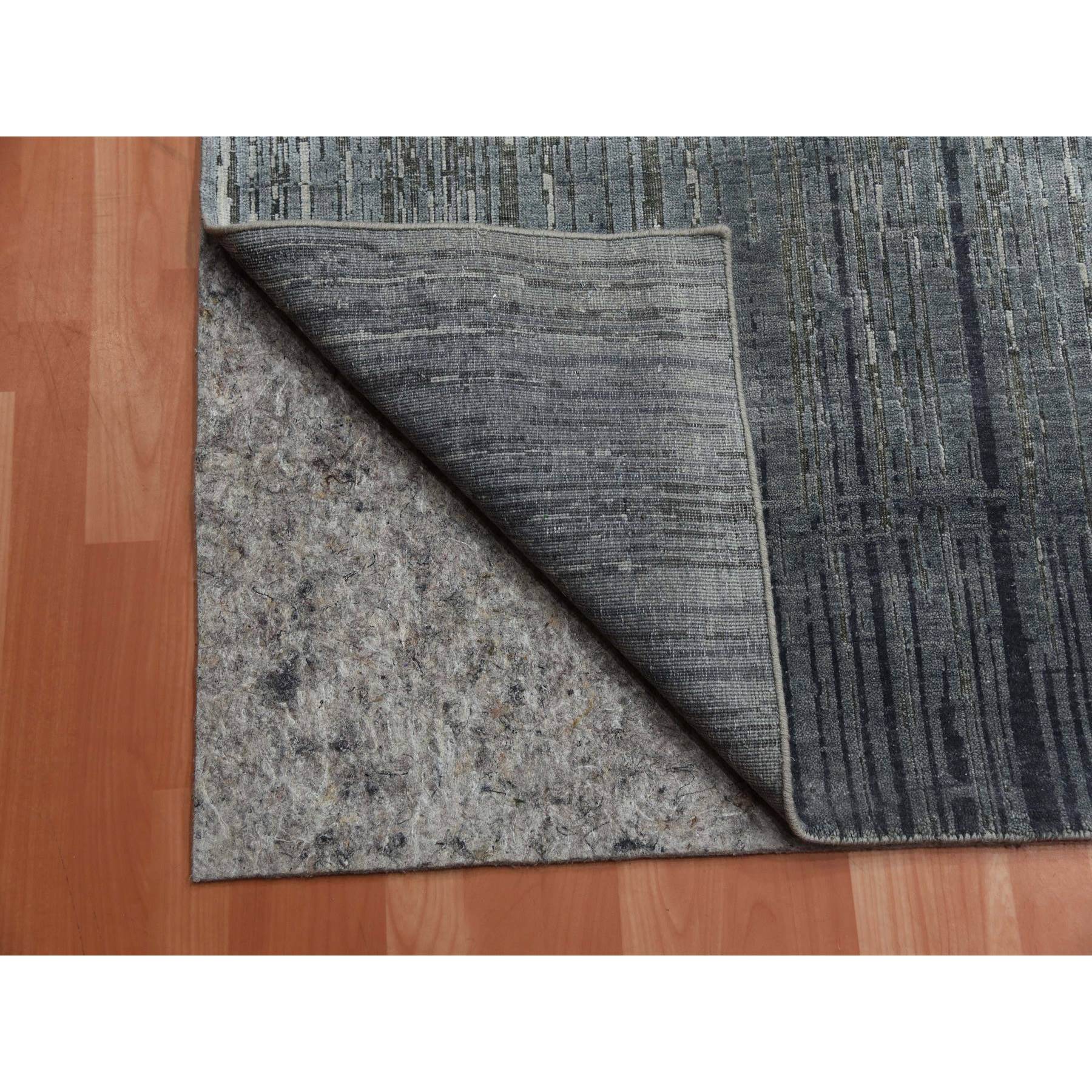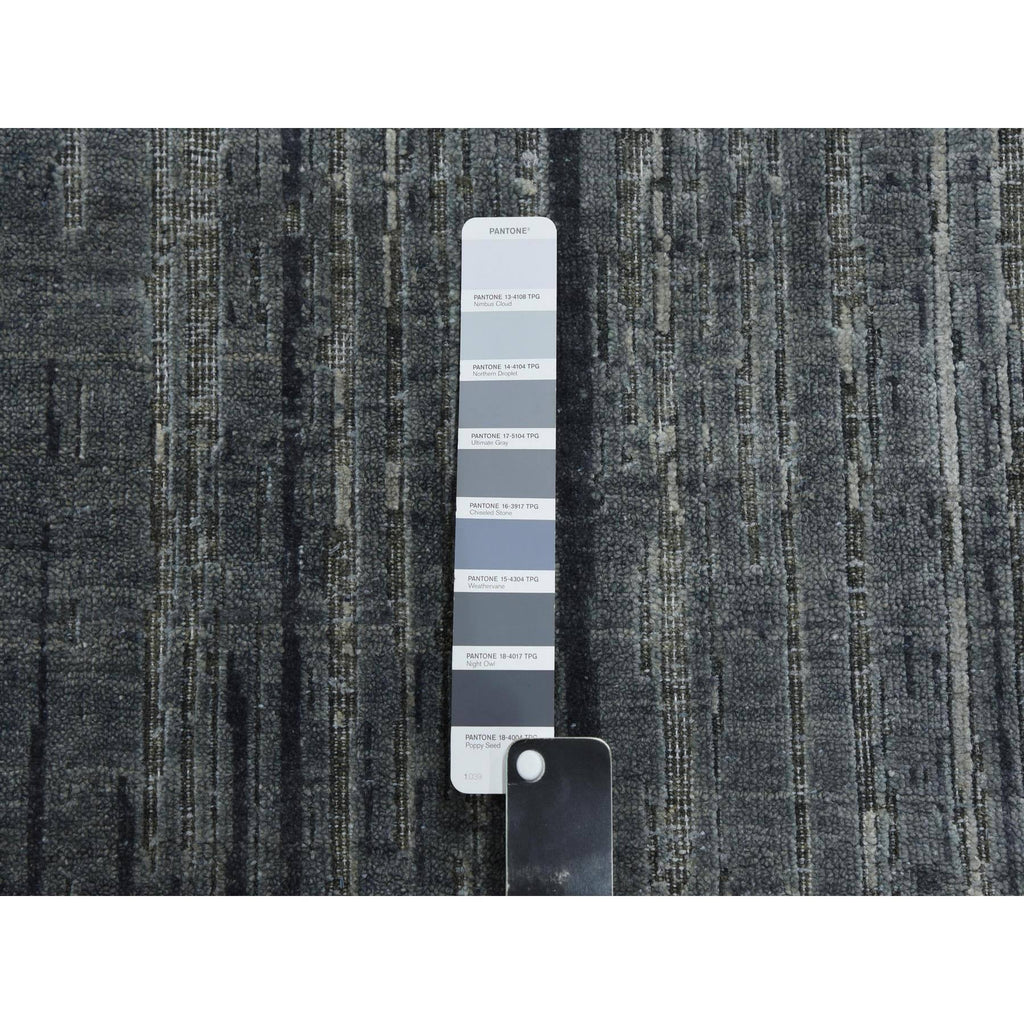 10'x14' Charcoal Gray Vertical Ombre Design Pure Silk With Textured Wool Hand Knotted Oriental Rug FWR451542