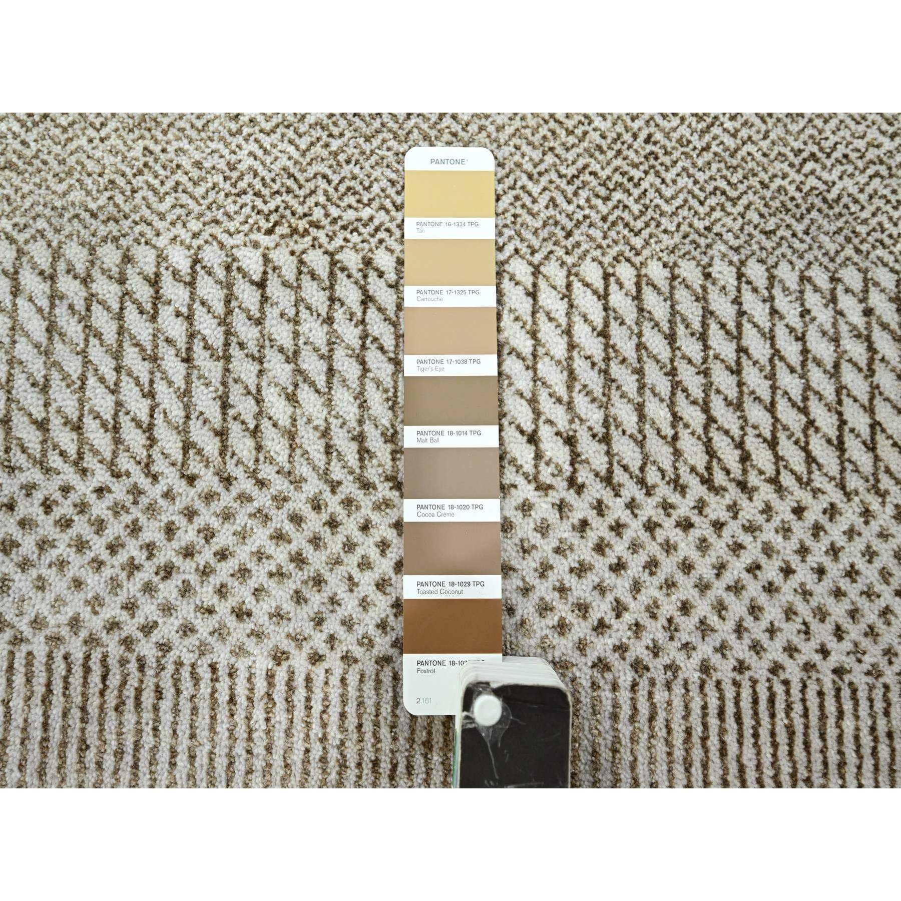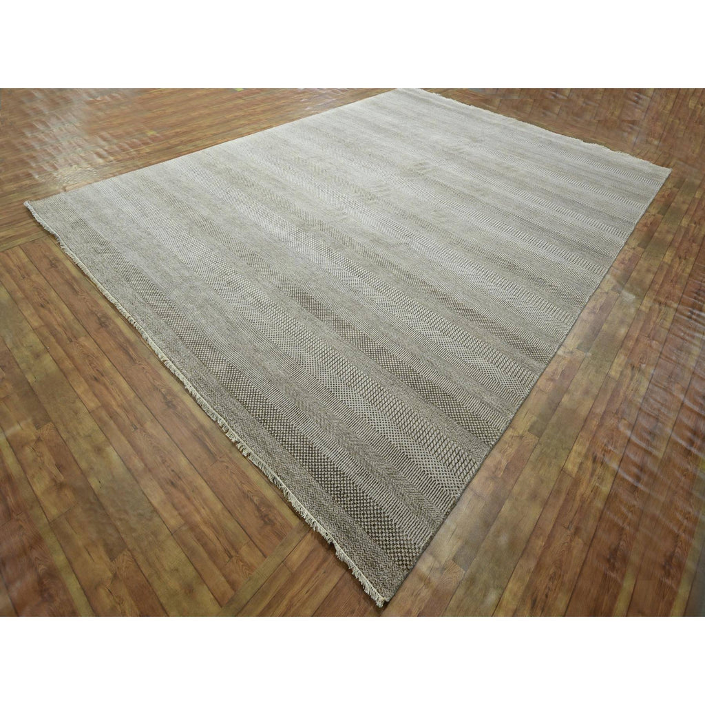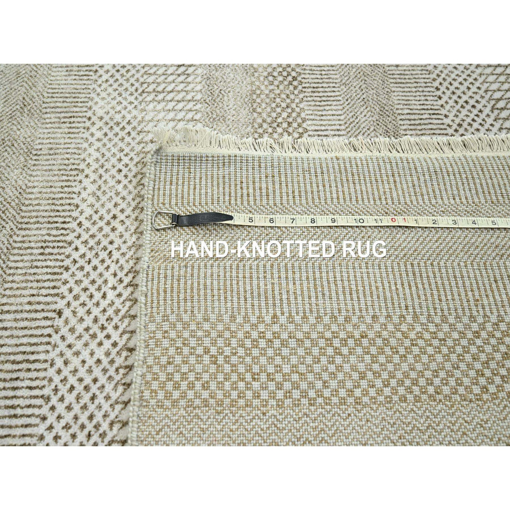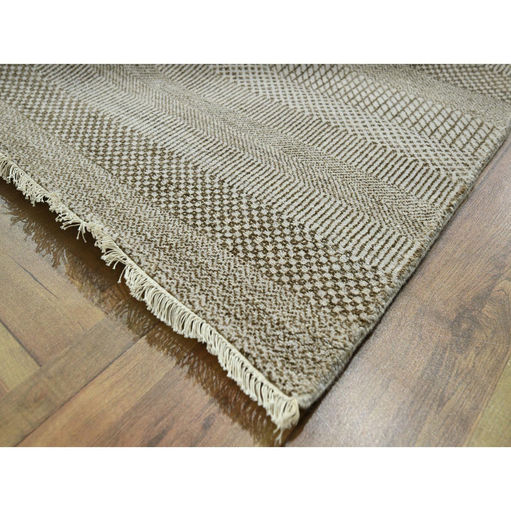 10'x14' Dark Vanilla Brown, Modern Grass Design, Wool And Silk, Hand Knotted, Borderless, Denser Weave, Tone On Tone, Lush And Plush, Oriental Rug FWR457998