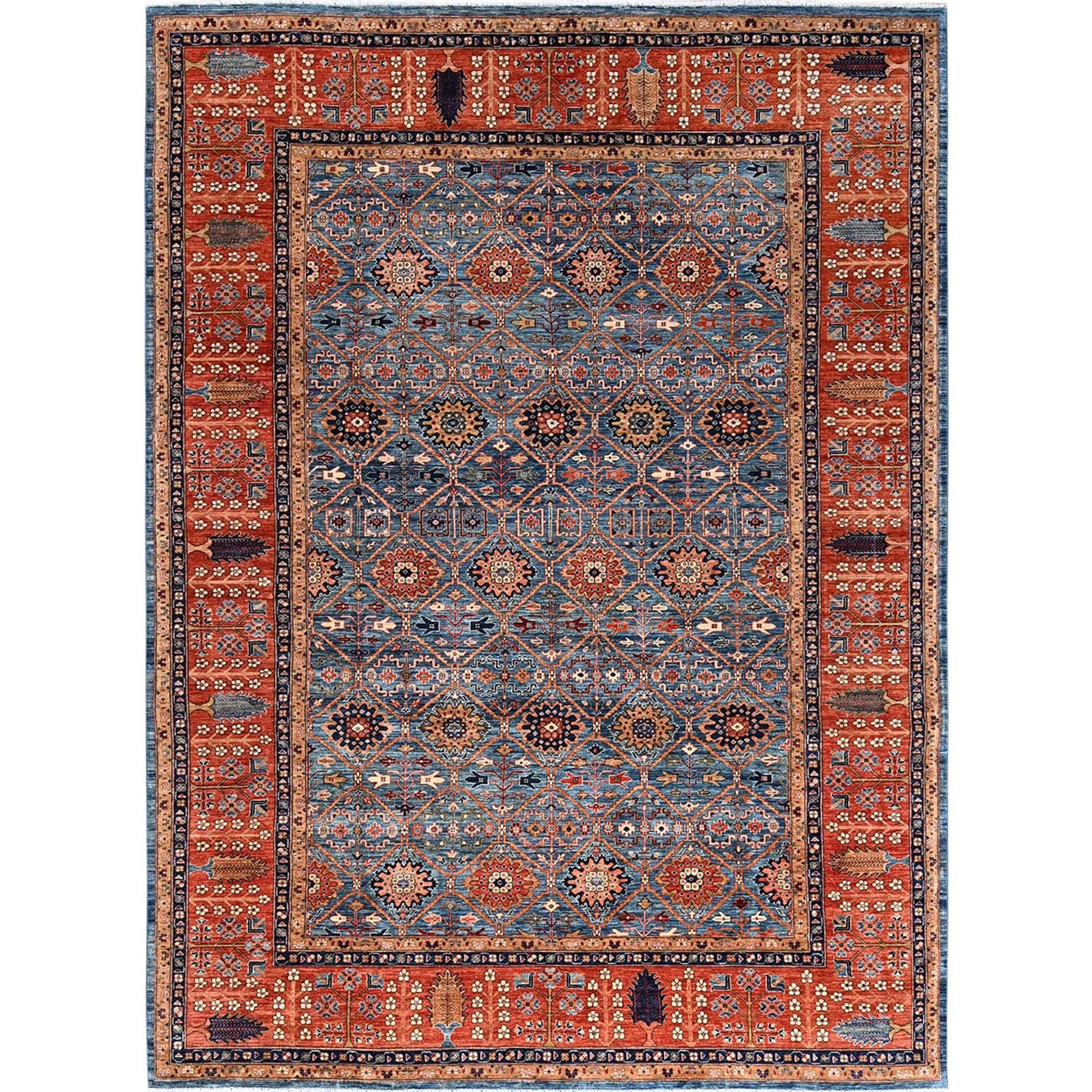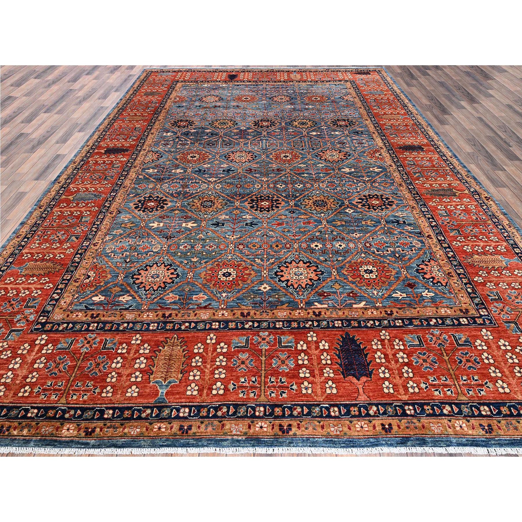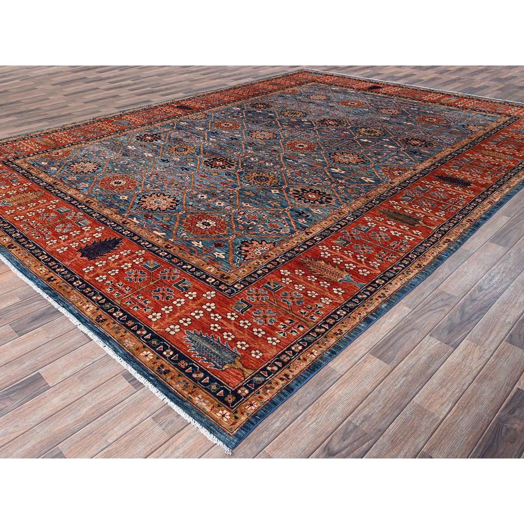 10'x14' Horizon Blue, Classic Persian Garden Trellis Design, Aryana Collection, Vegetable Dyes, Soft Pile, High Mountain Wool, Hand Knotted, Densely Woven, Oriental Rug FWR6552