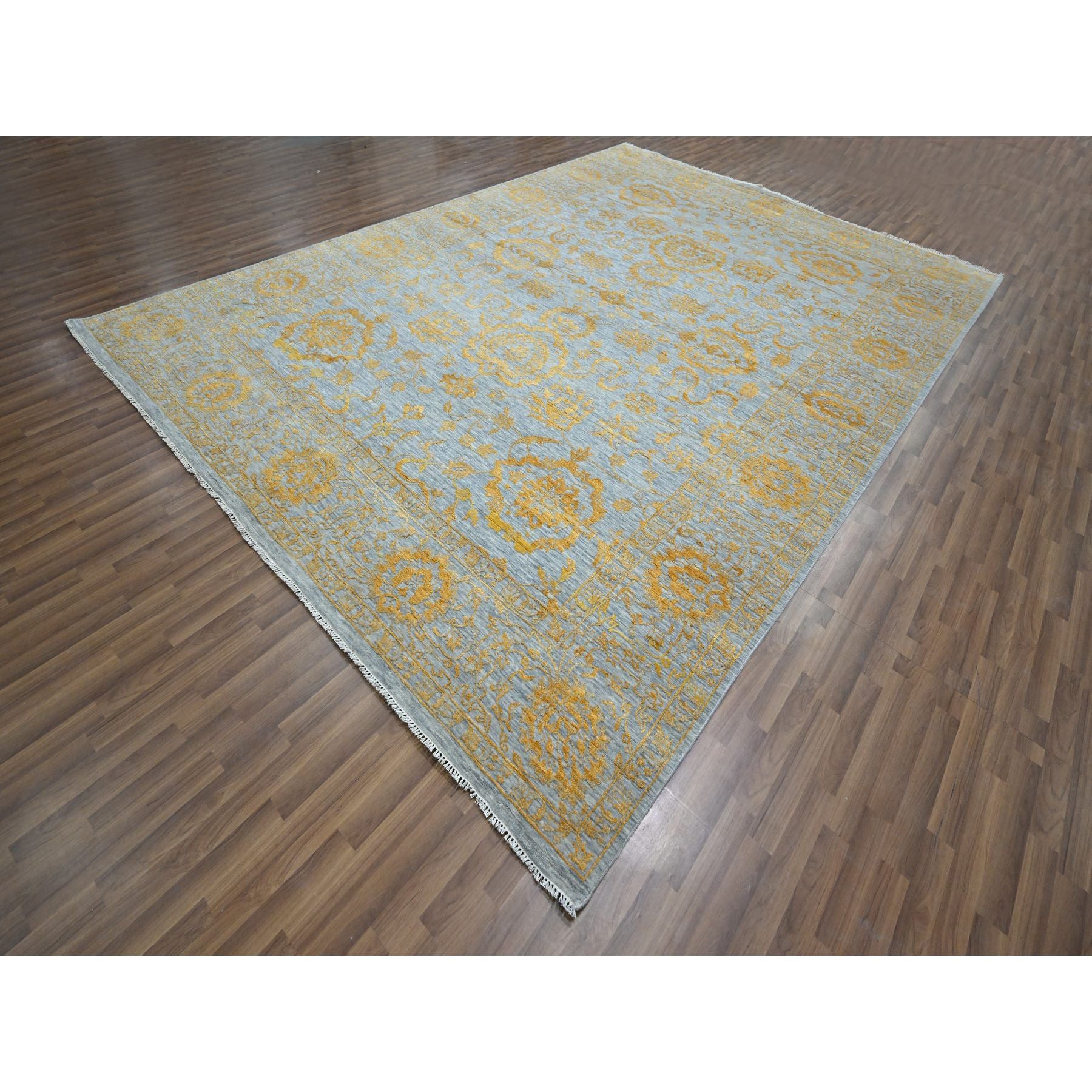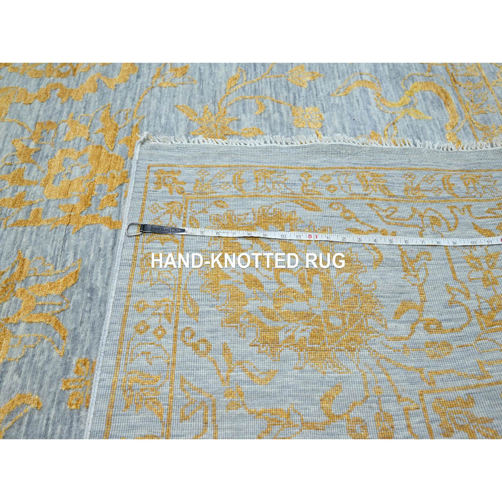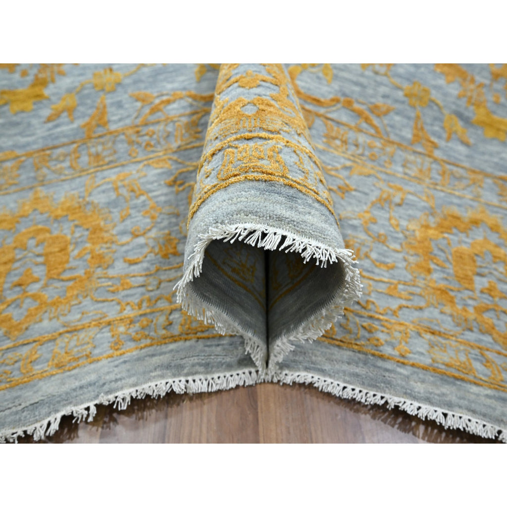 10'x14' Misty Gray With Gold, Tone On Tone, Persian Influence Design, Hand Knotted, Wool & Silk, Oriental Rug FWR457872
