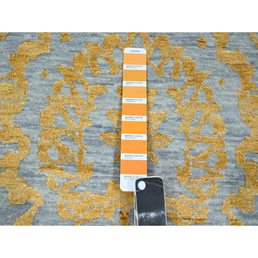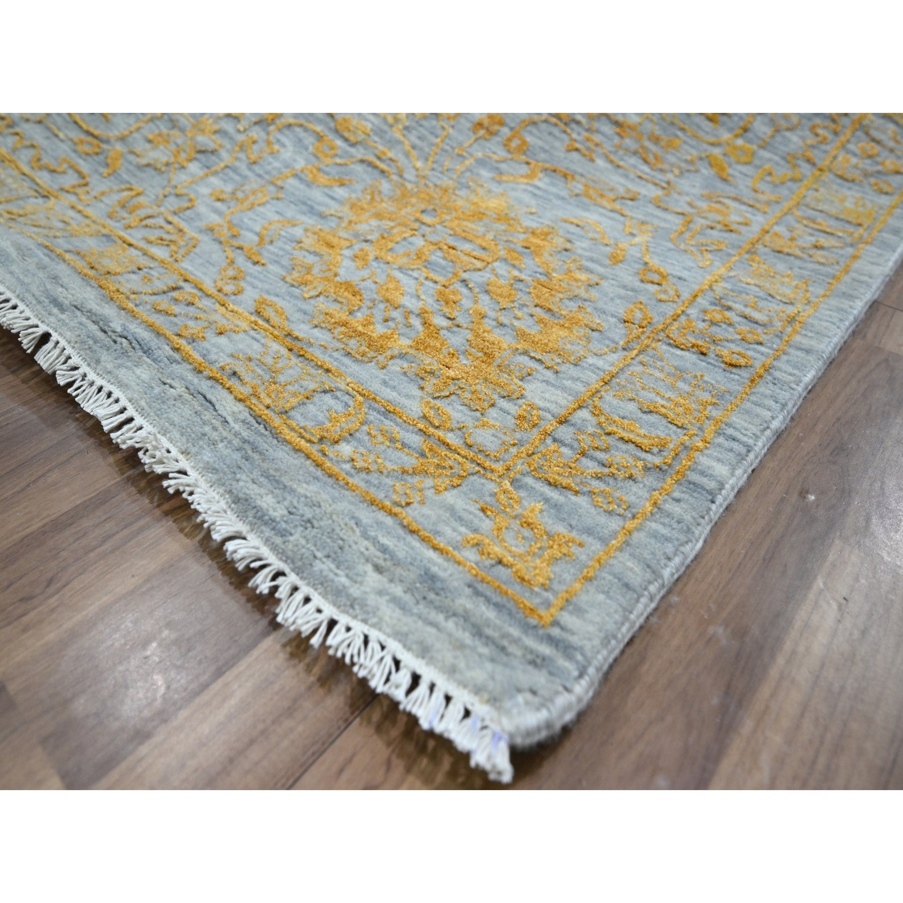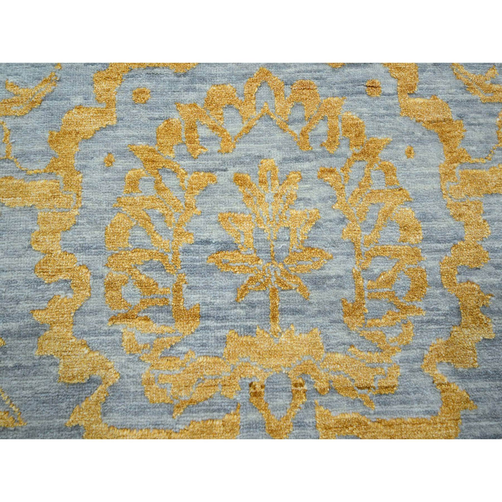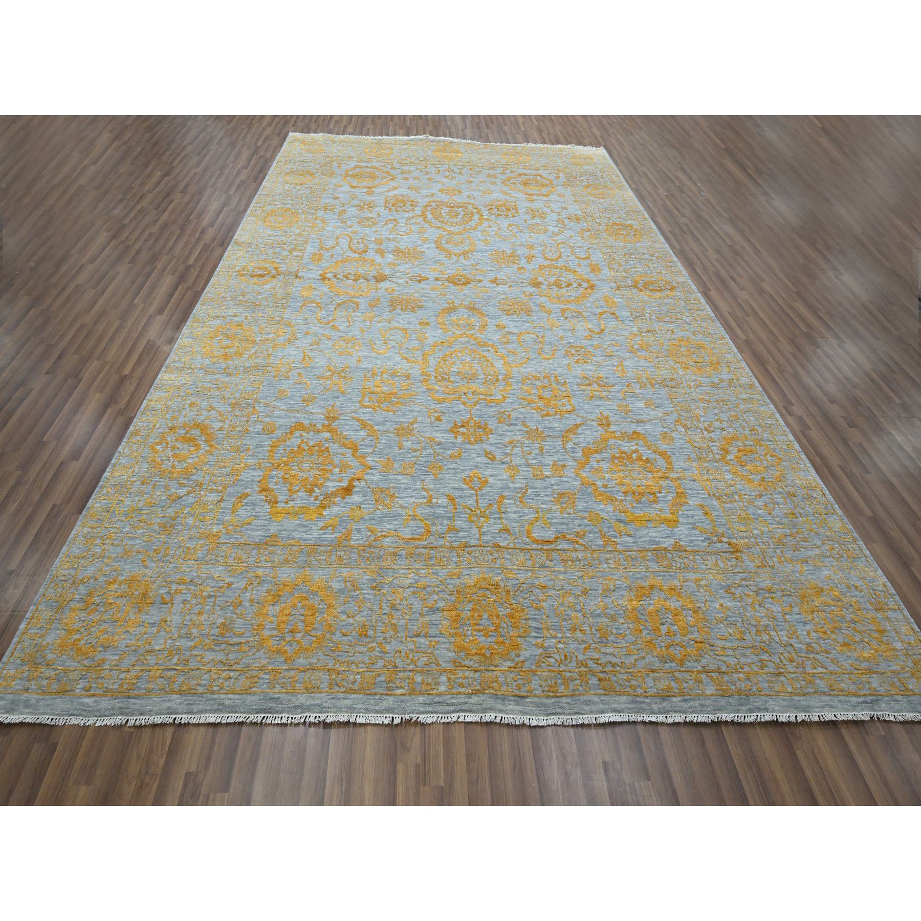 10'x14' Misty Gray With Gold, Tone On Tone, Persian Influence Design, Hand Knotted, Wool & Silk, Oriental Rug FWR457872