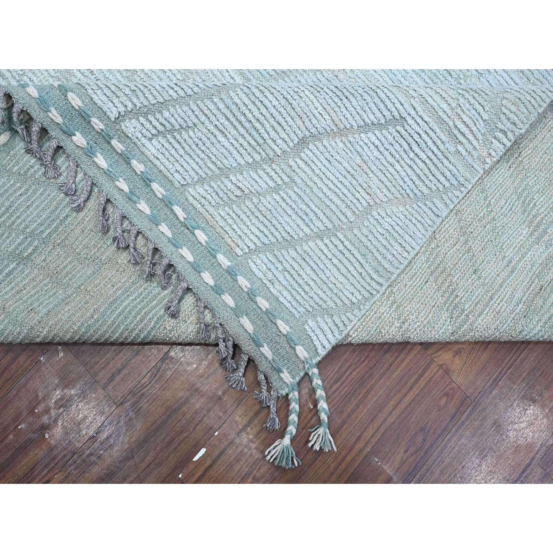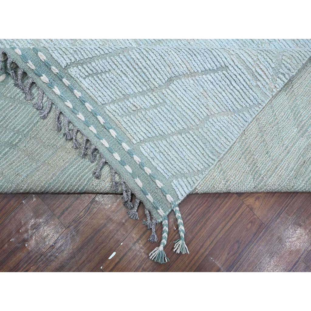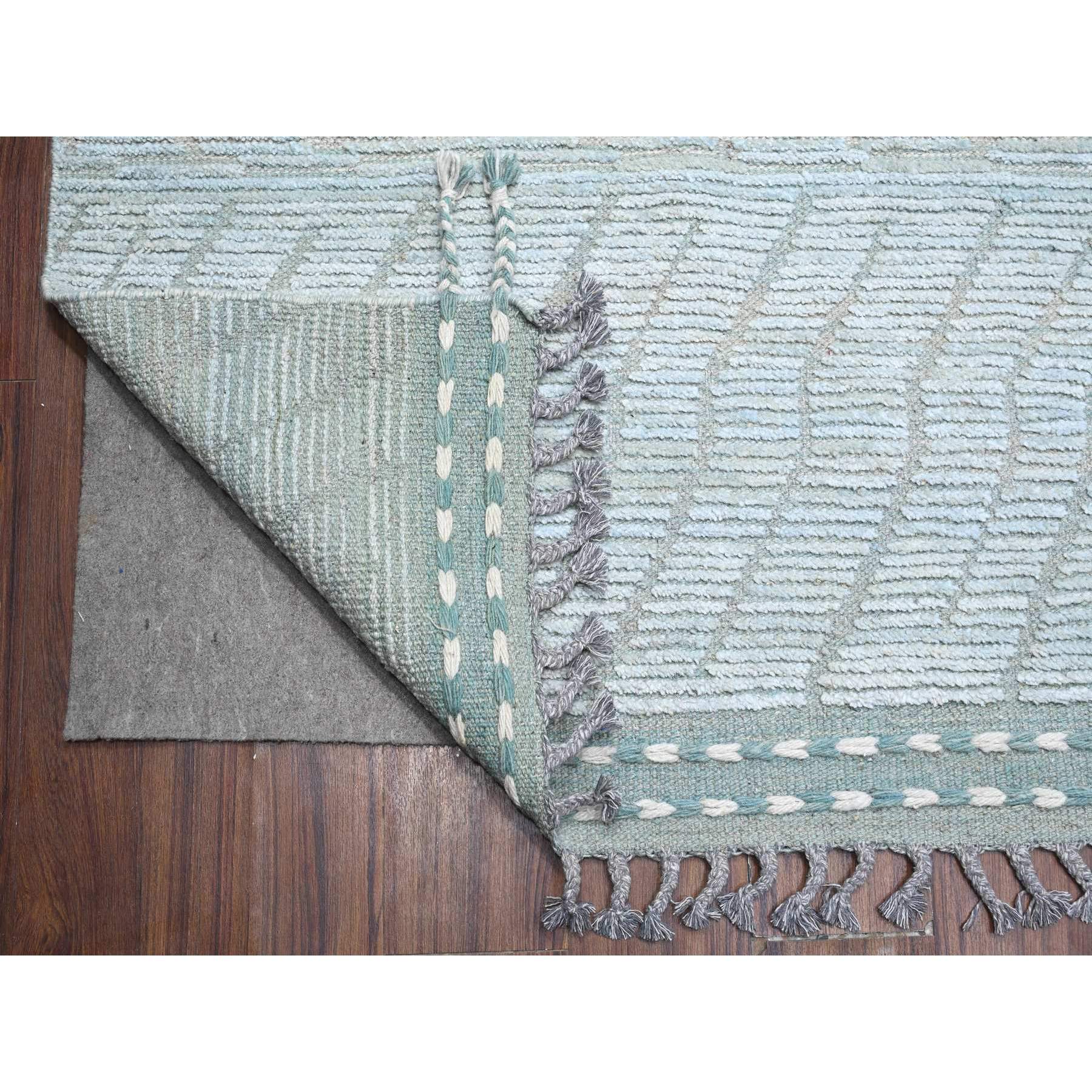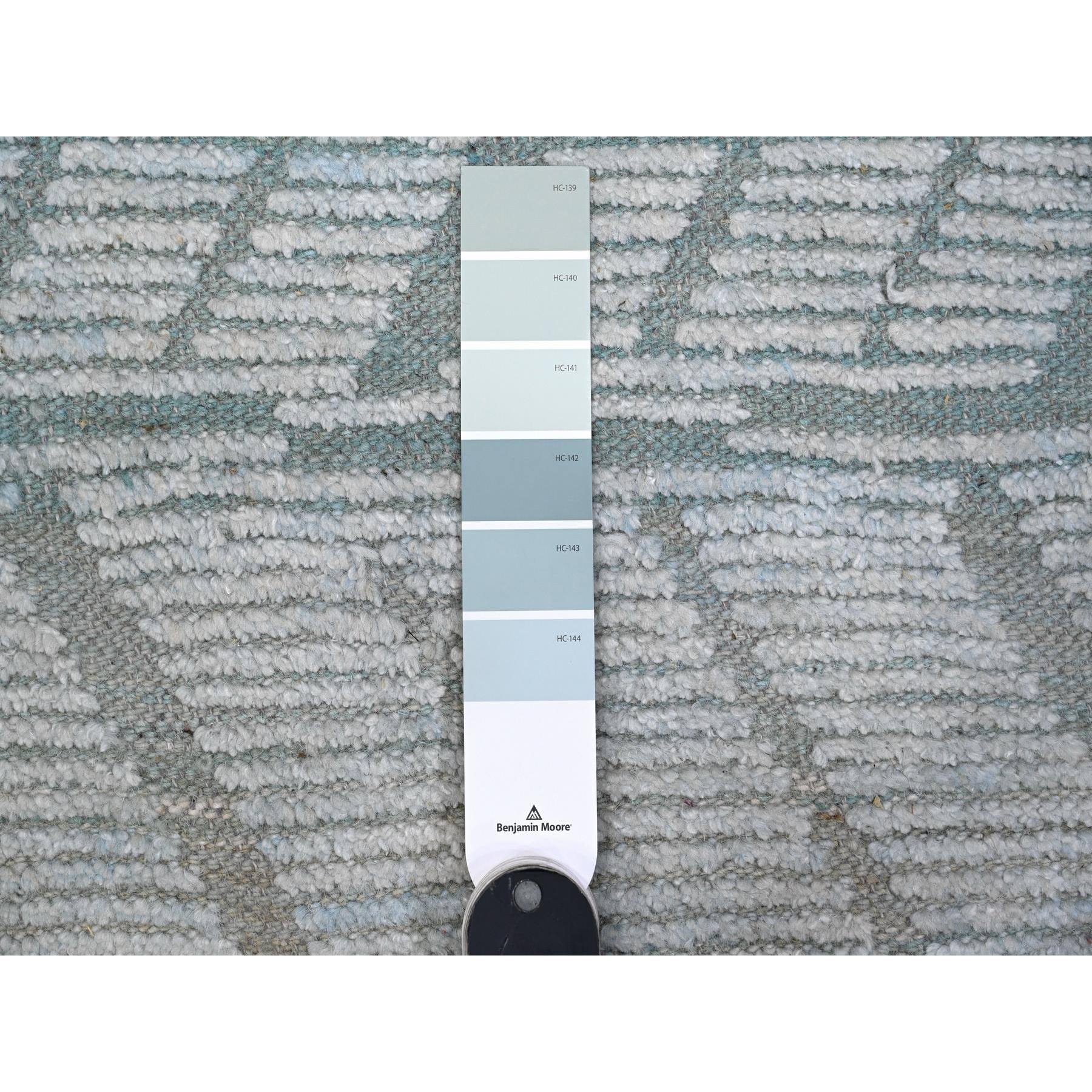 10'x14' Powder Blue, Zig Zag Design Oulad Bousbaa Leaf Influence, Moroccan Weave, 100% Wool, Hand Knotted, Wool On Wool Oriental Rug FWR535008