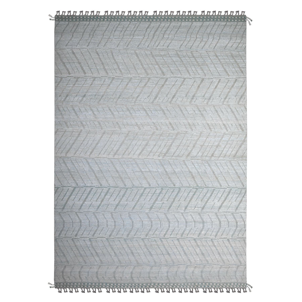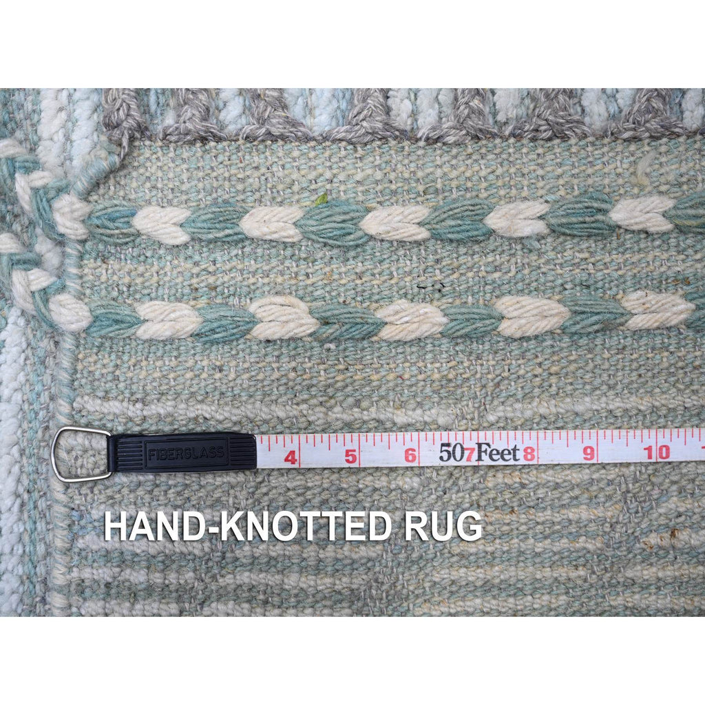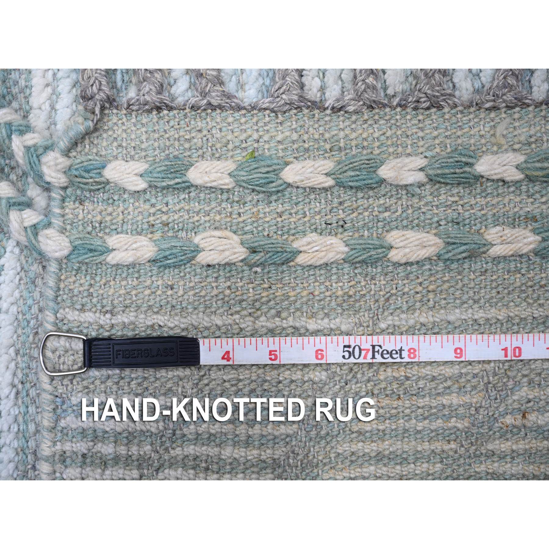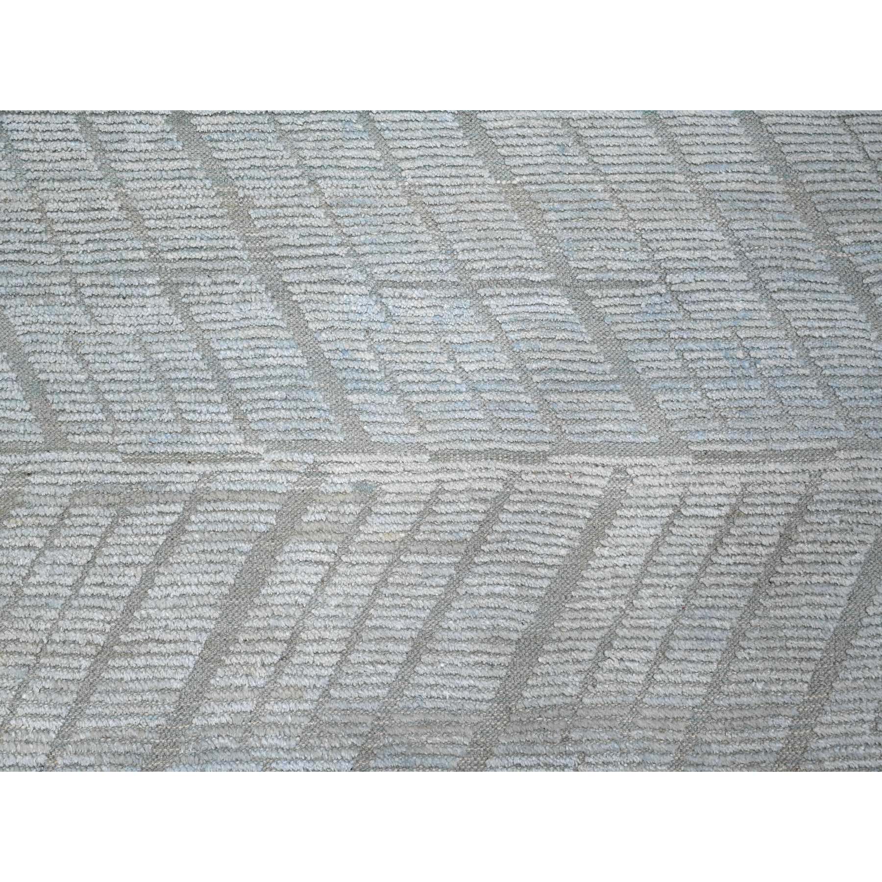 10'x14' Powder Blue, Zig Zag Design Oulad Bousbaa Leaf Influence, Moroccan Weave, 100% Wool, Hand Knotted, Wool On Wool Oriental Rug FWR535008