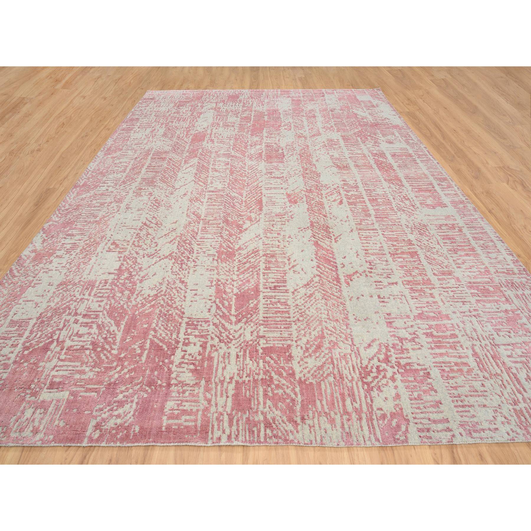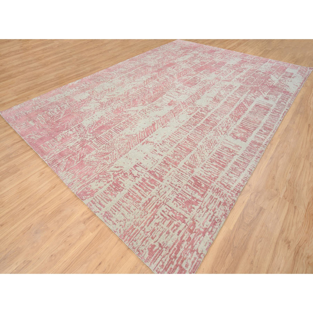 10'x14' Rose Pink, All Over Design Wool And Art Silk, Jacquard Hand Loomed, Oriental Rug FWR388902