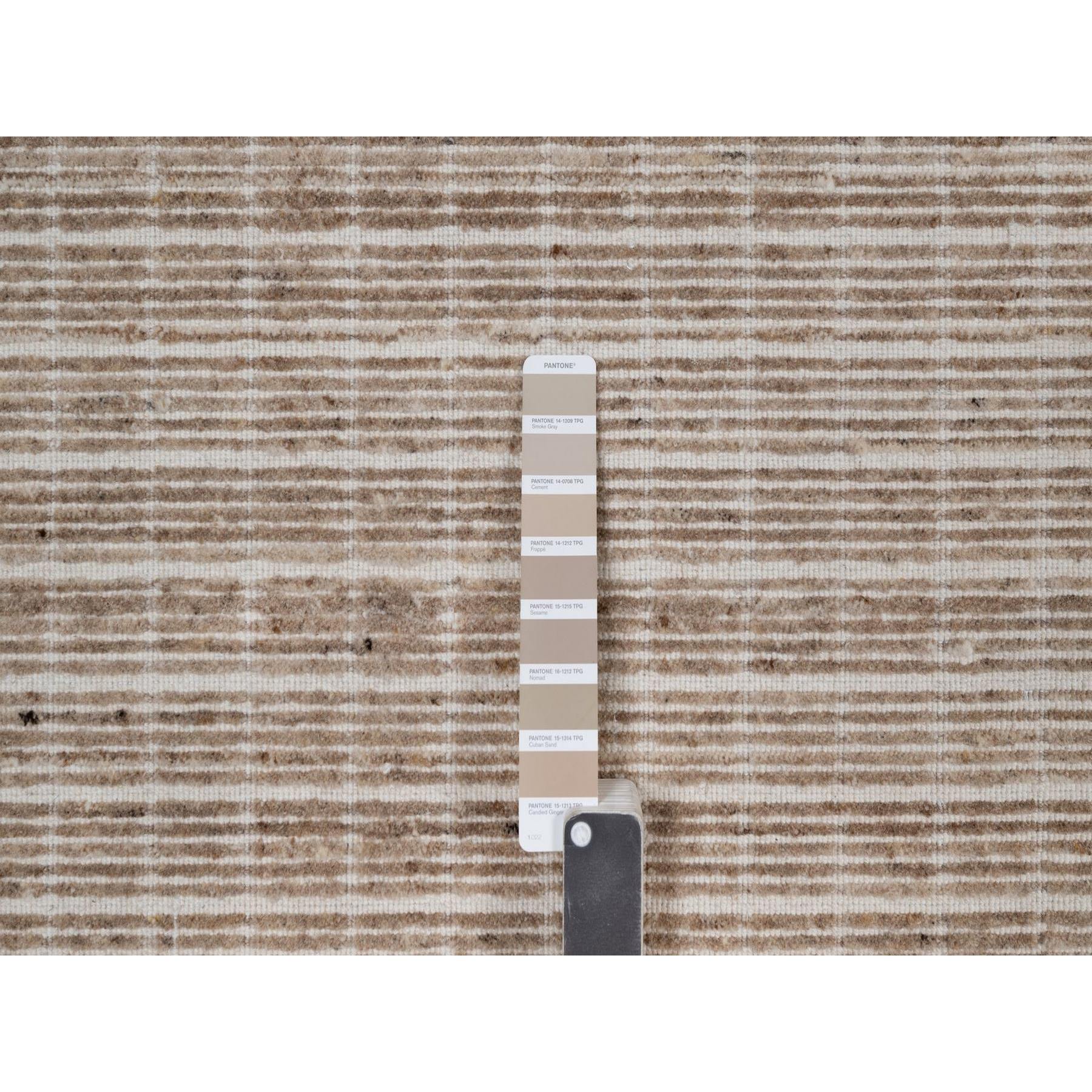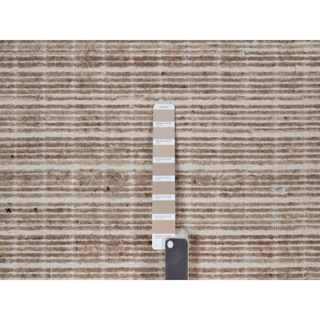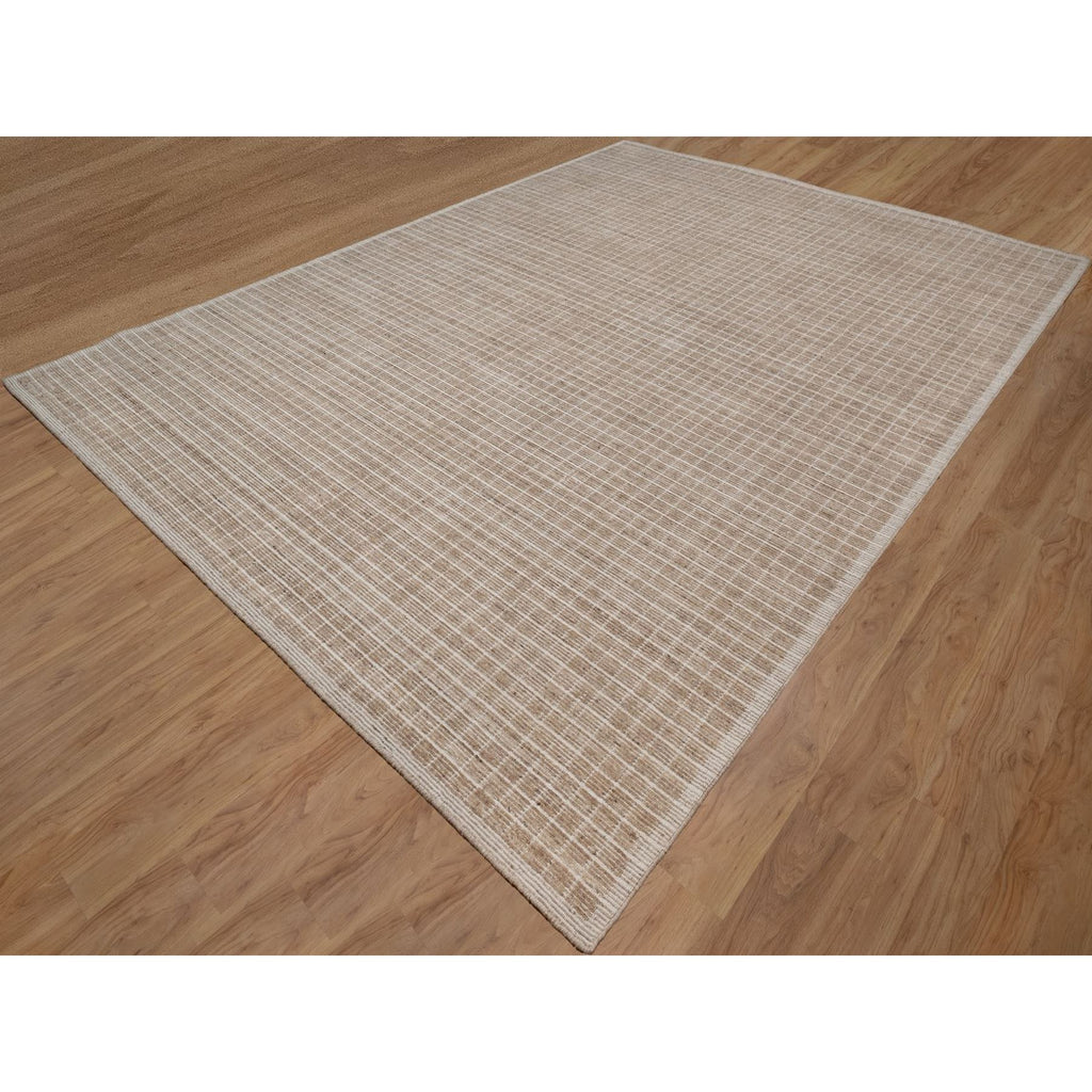 10'x14' Sand Brown, Modern Plain Decor Box Design, Soft To The Touch, Loomed Knotted, Pure Wool, Oriental Rug FWR550236