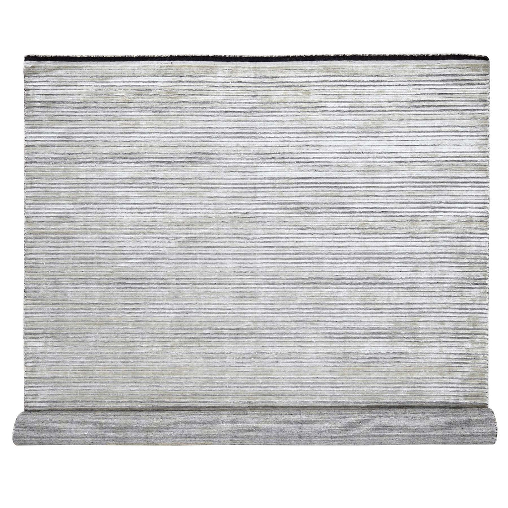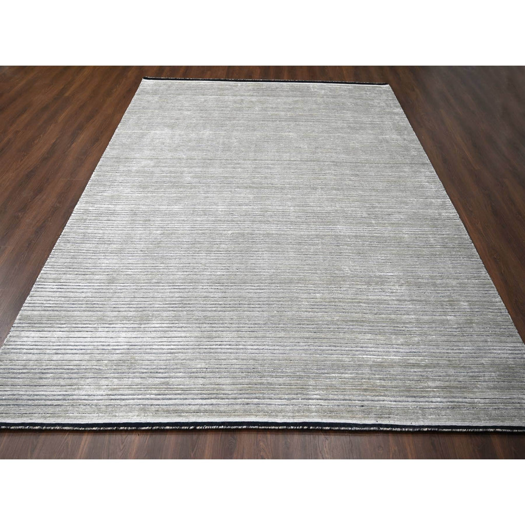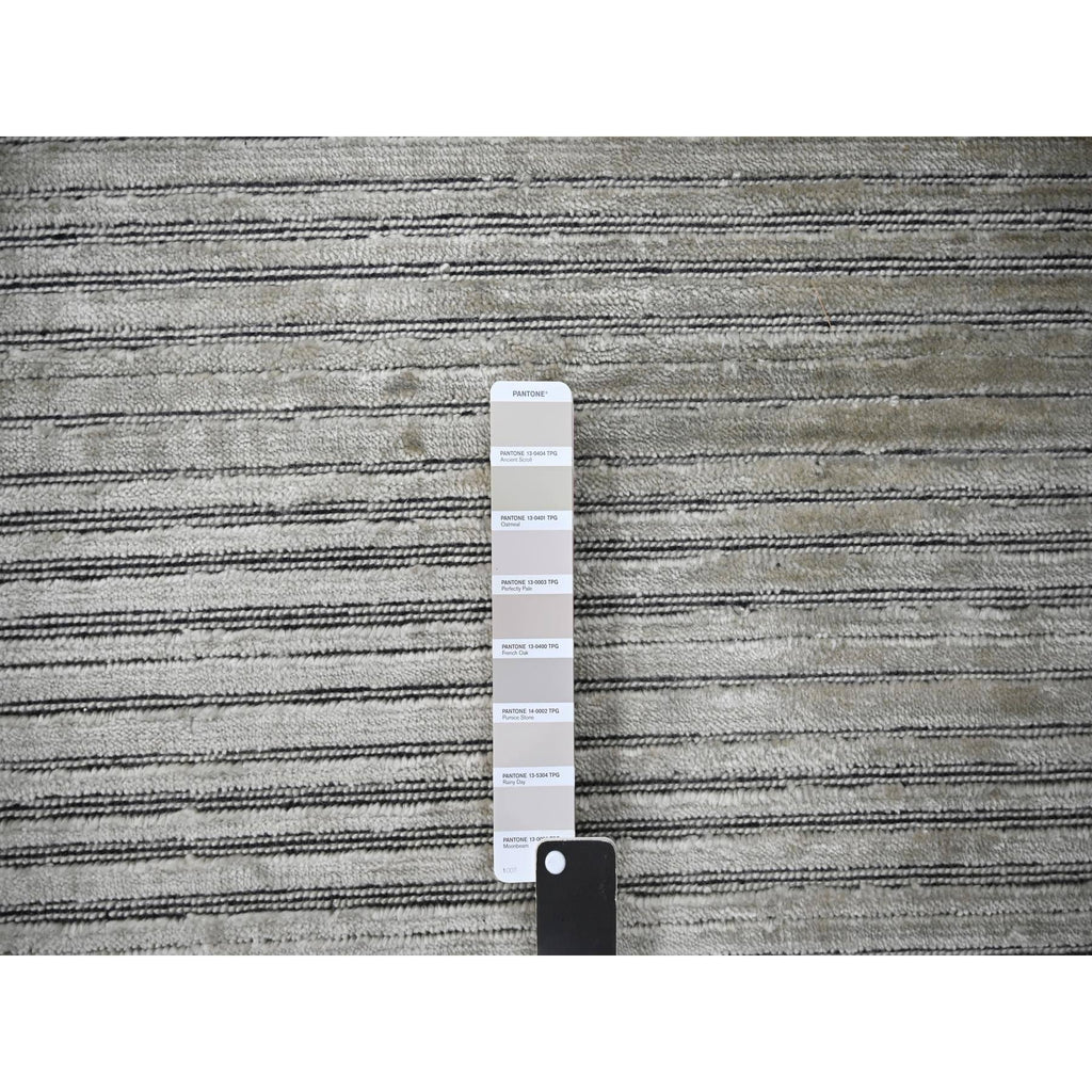 10'x14' Taupe, Modern Textured And Variegated Line Design, Wool And Plant Based Silk, Hand Loomed, Oriental Rug FWR504990