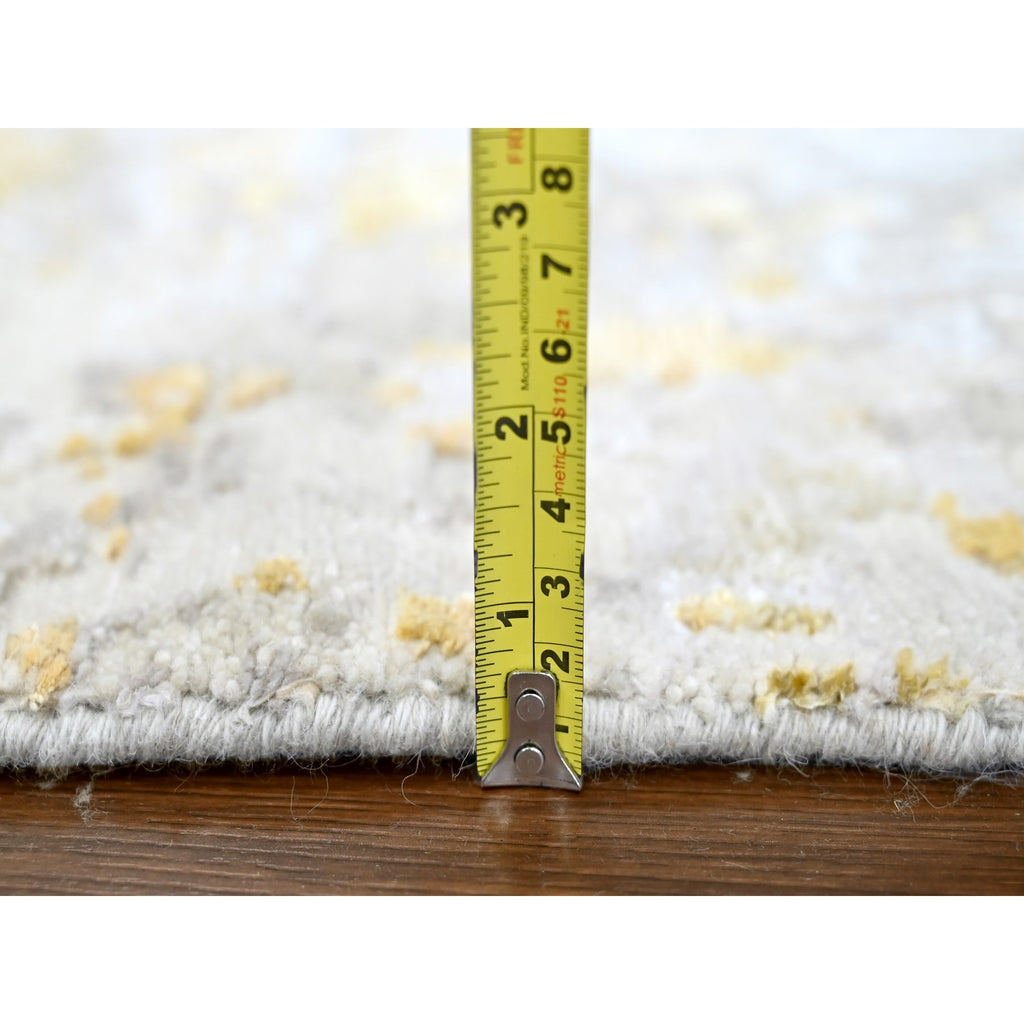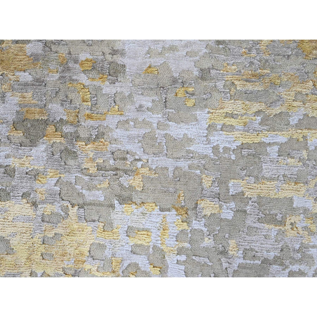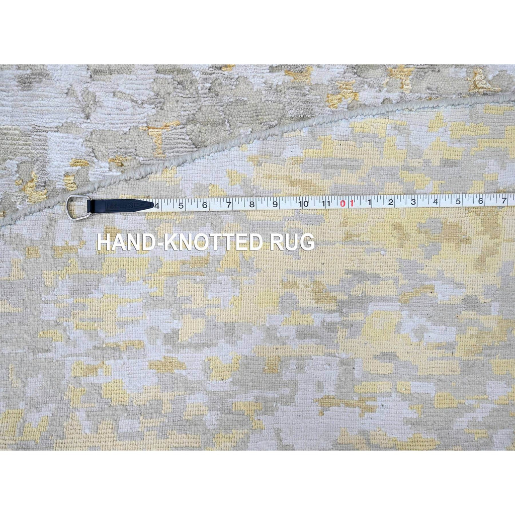 11'10"x11'10" Beige With Gold, Abstract Design, Wool And Silk, Densely Woven, Hi-low Pile, Hand Knotted, Round, Oriental Rug FWR61236