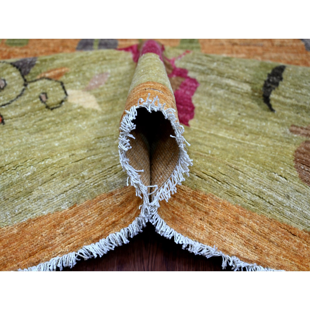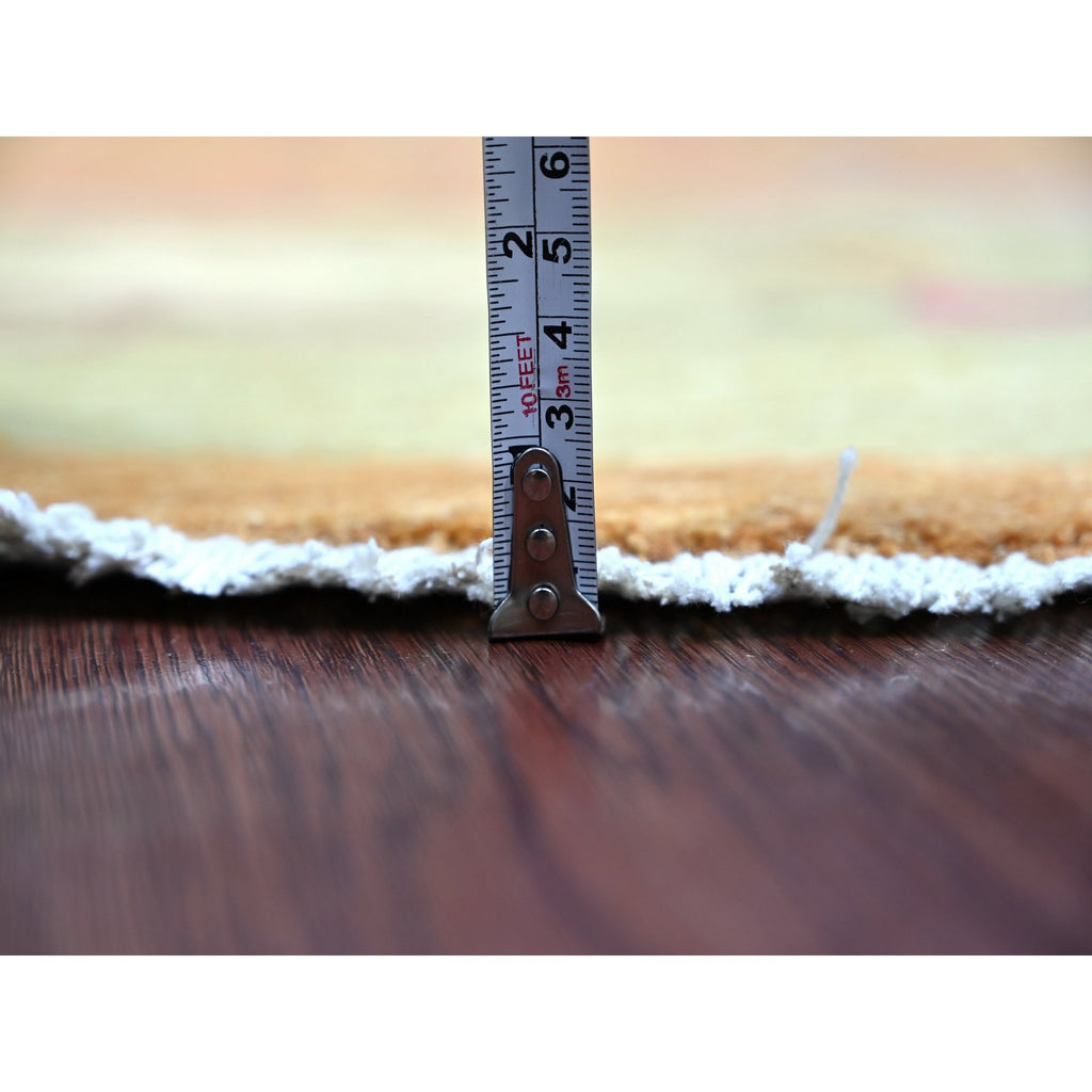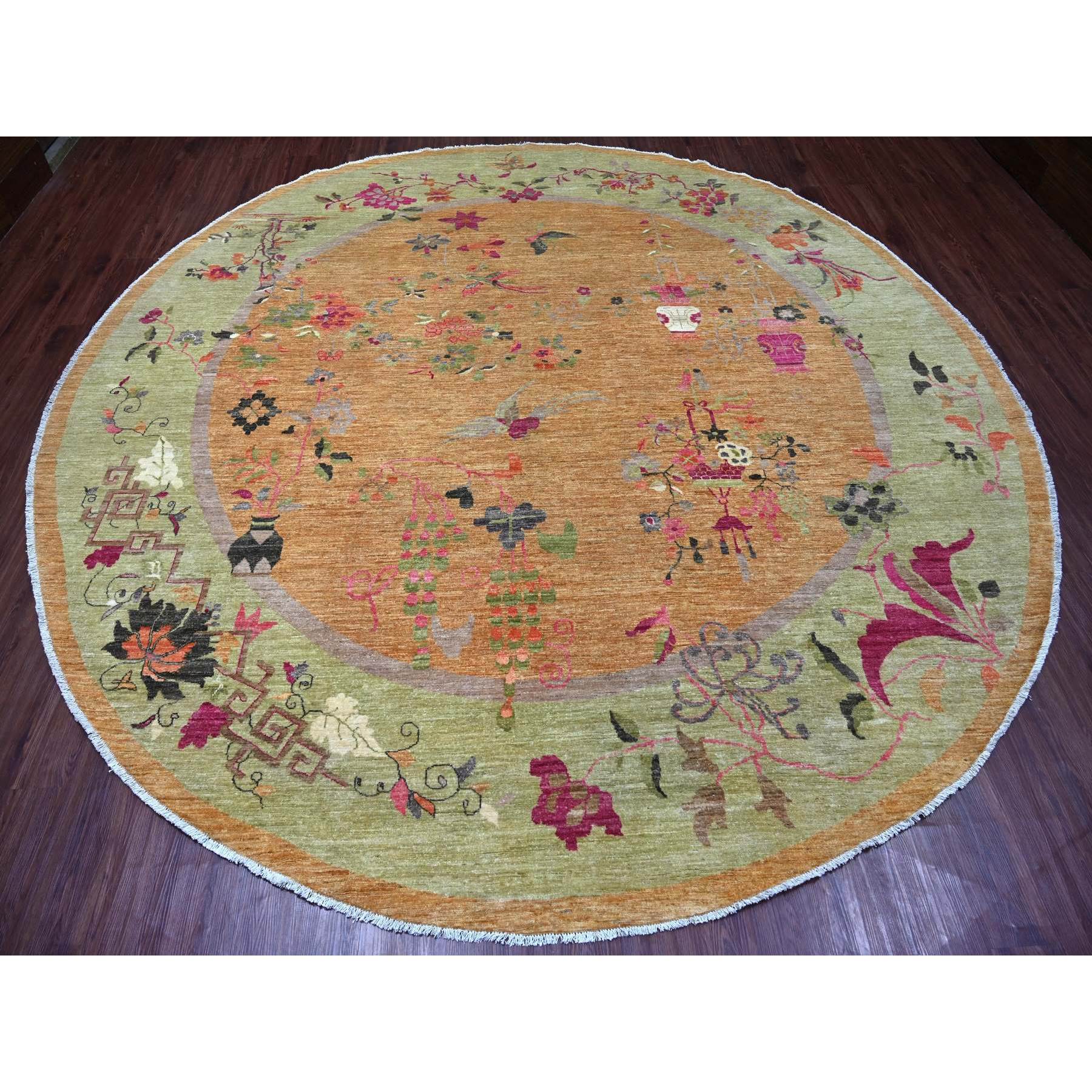 11'10"x11'10" Copper Brown, Chinese Art Deco Inspired Peshawar, 100% Wool, Vegetable Dyes, Hand Knotted, Round, Oriental Rug FWR126264