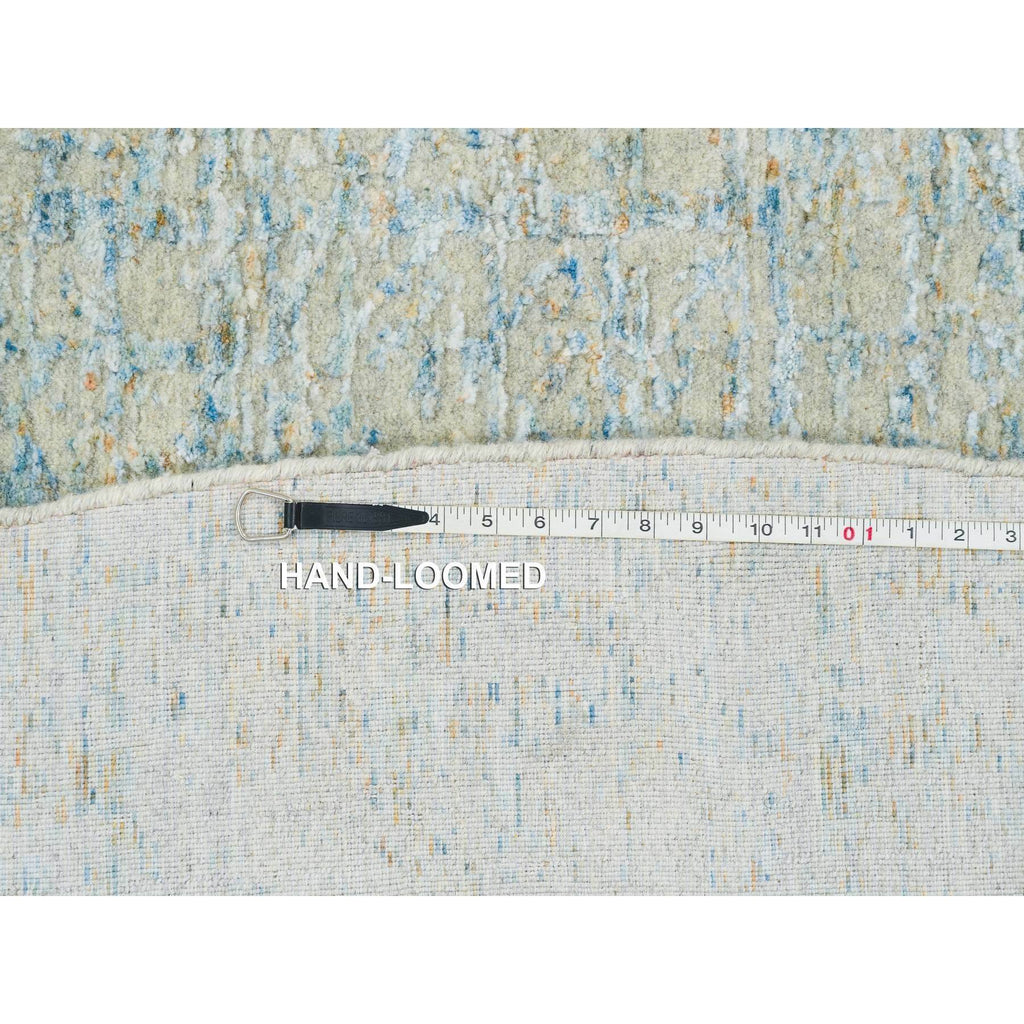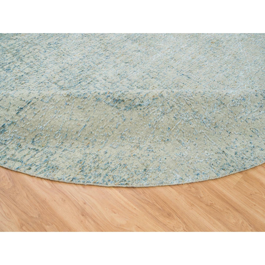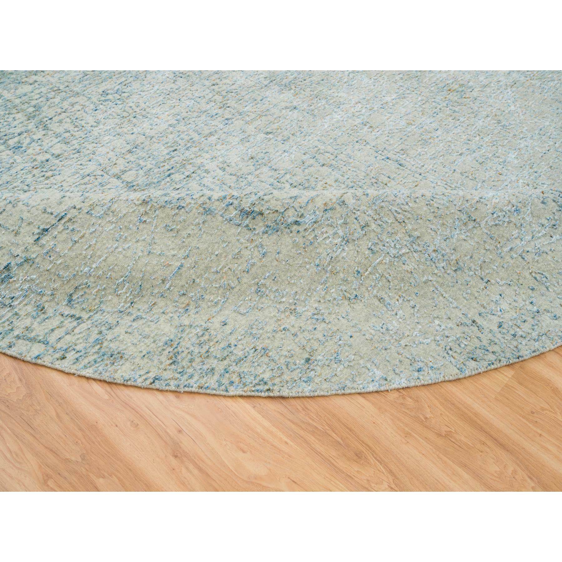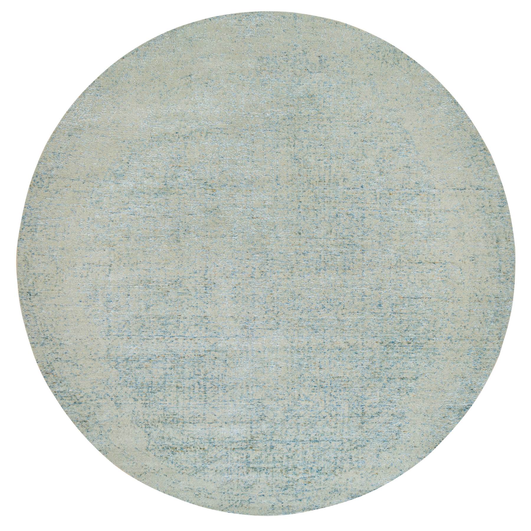 11'10"x11'10" Gray With Touches Of Blue, Wool And Plant Based Silk, Modern Jacquard Hand Loomed, Soft To The Touch, Round Oriental Rug FWR391332