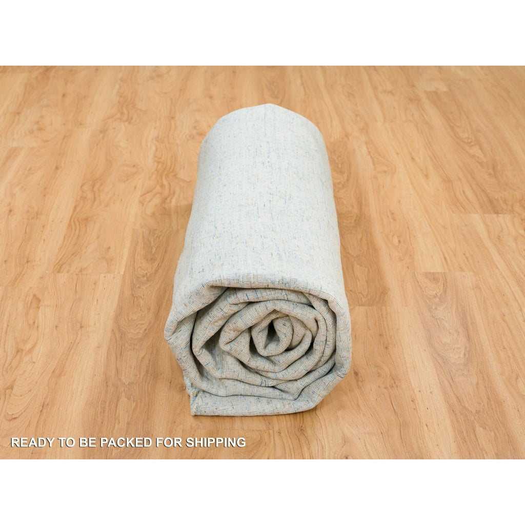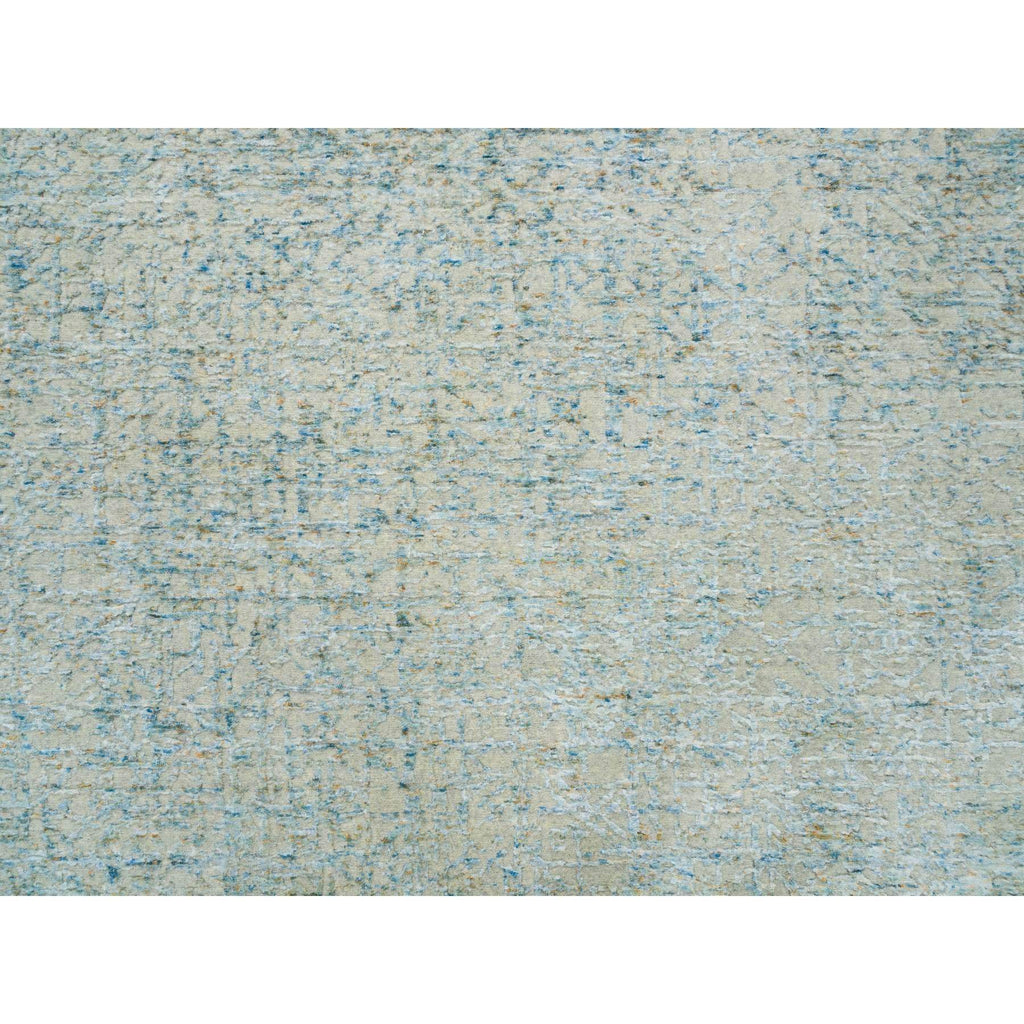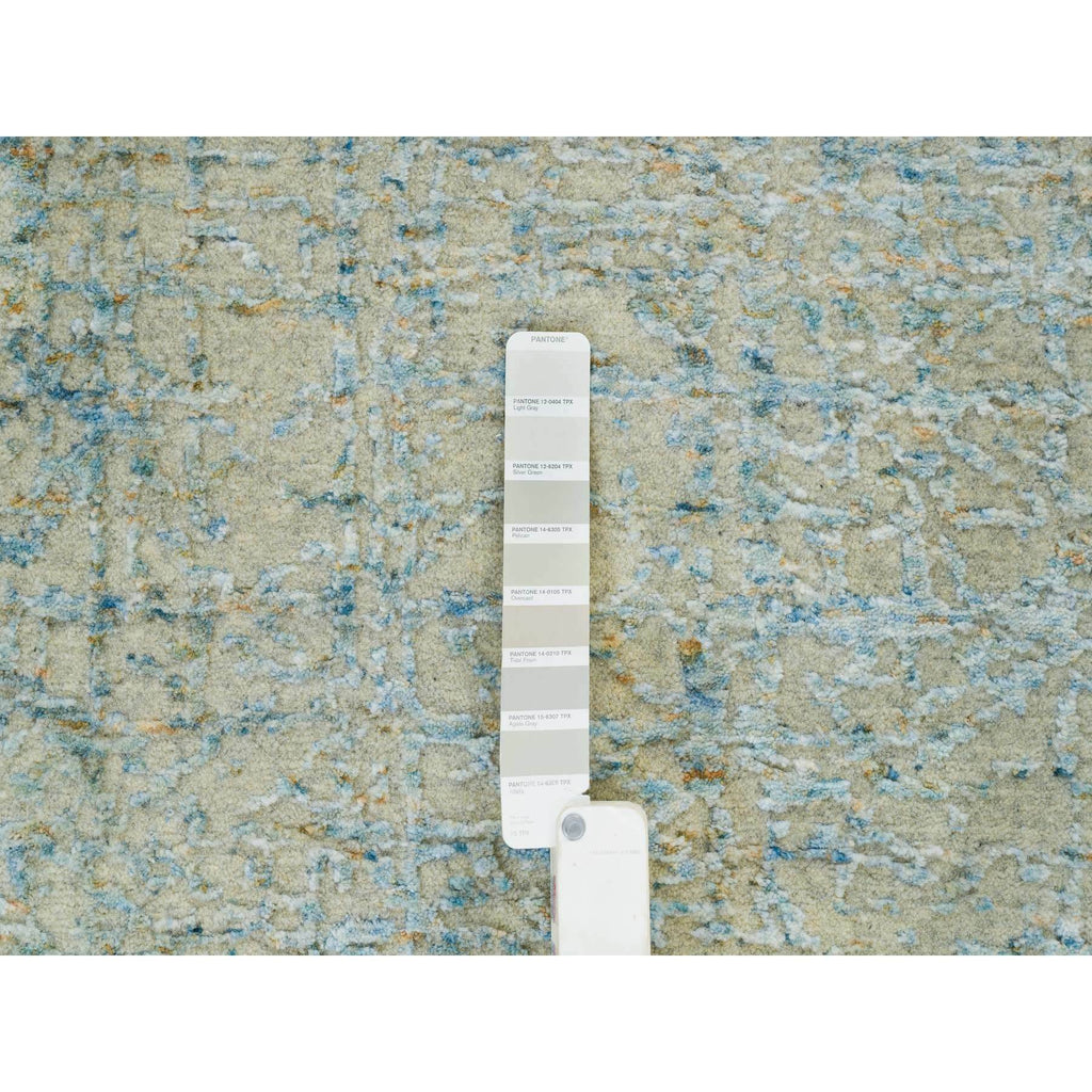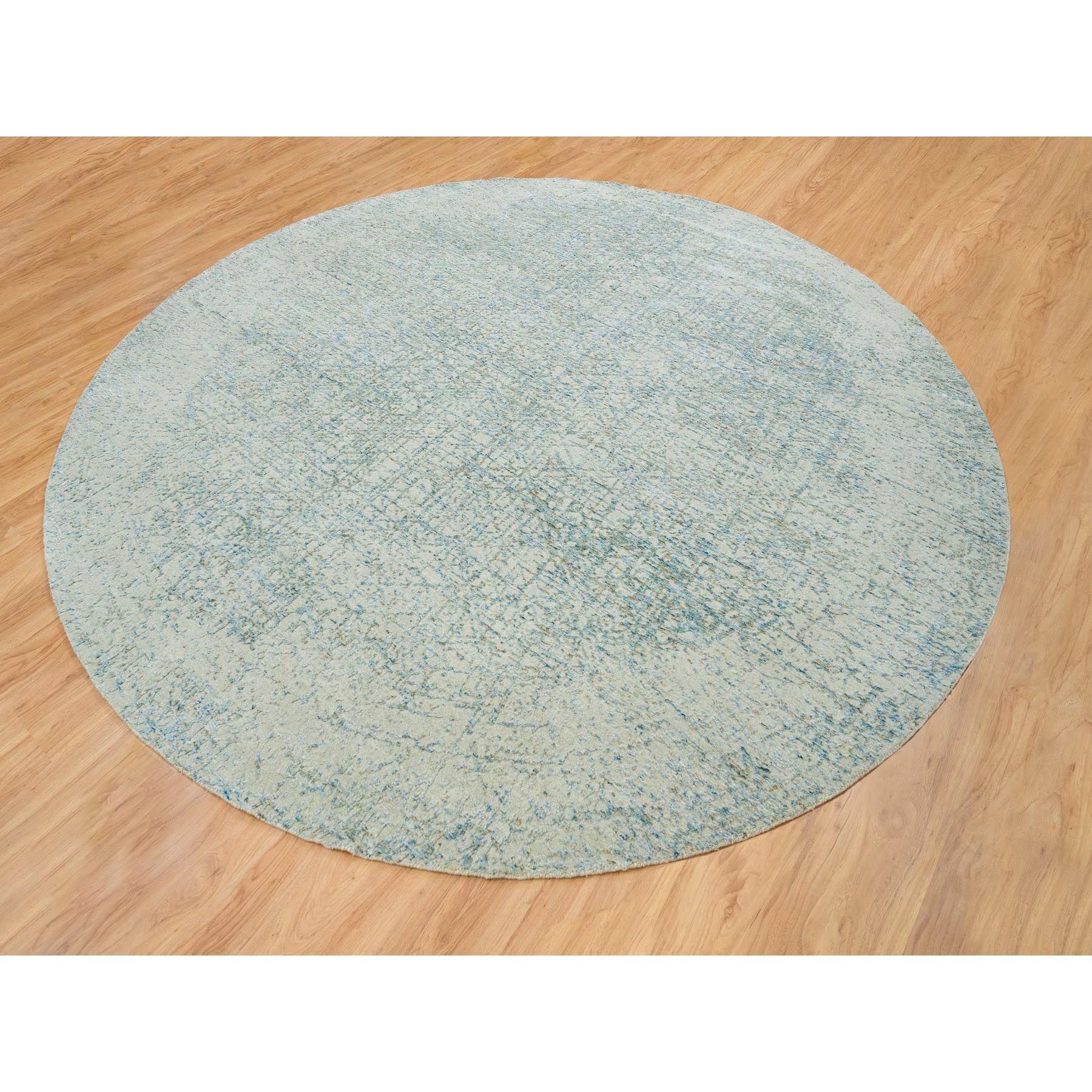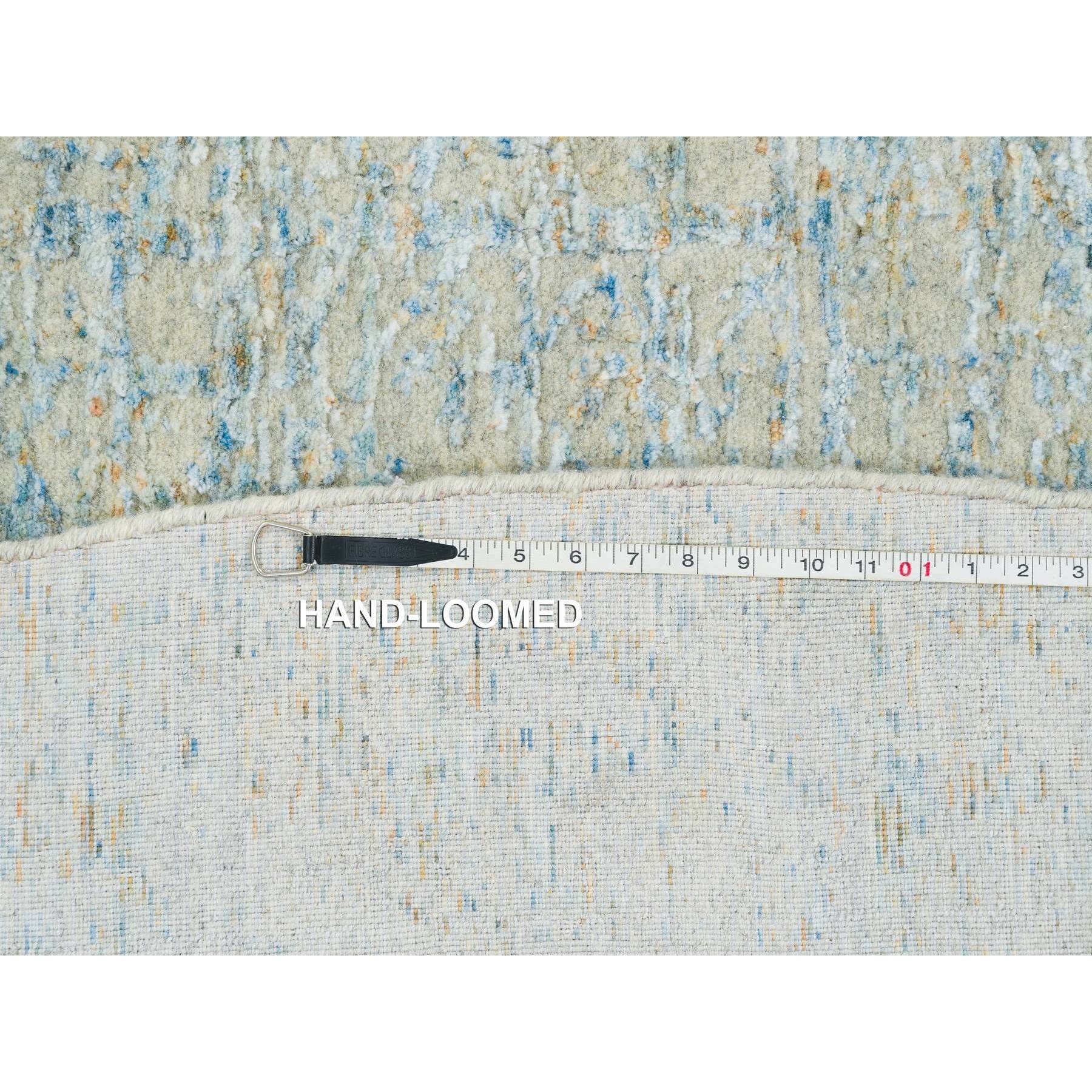11'10"x11'10" Gray With Touches Of Blue, Wool And Plant Based Silk, Modern Jacquard Hand Loomed, Soft To The Touch, Round Oriental Rug FWR391332