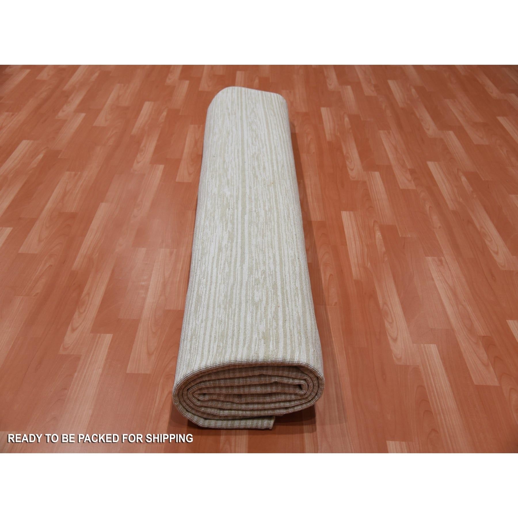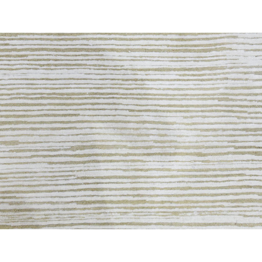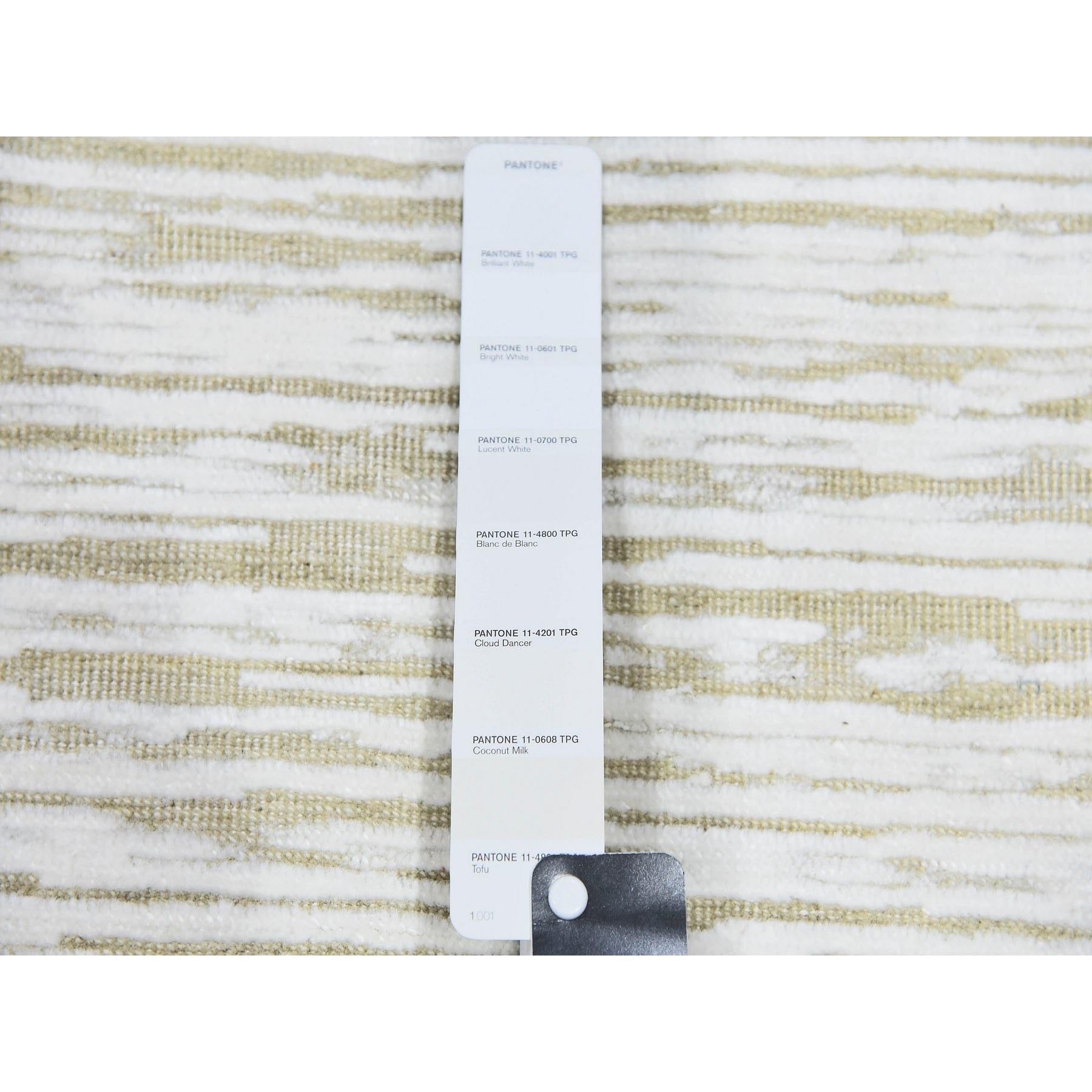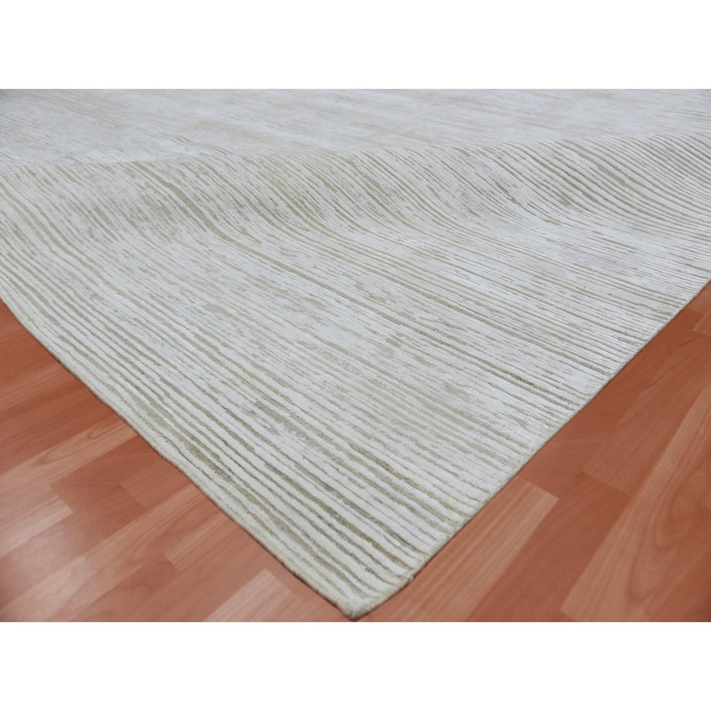 11'10"x11'10" Hand Knotted Ivory Silk With Textured Wool Tone On Tone Striae Design Hi-low Pile Oriental Square Rug FWR450096