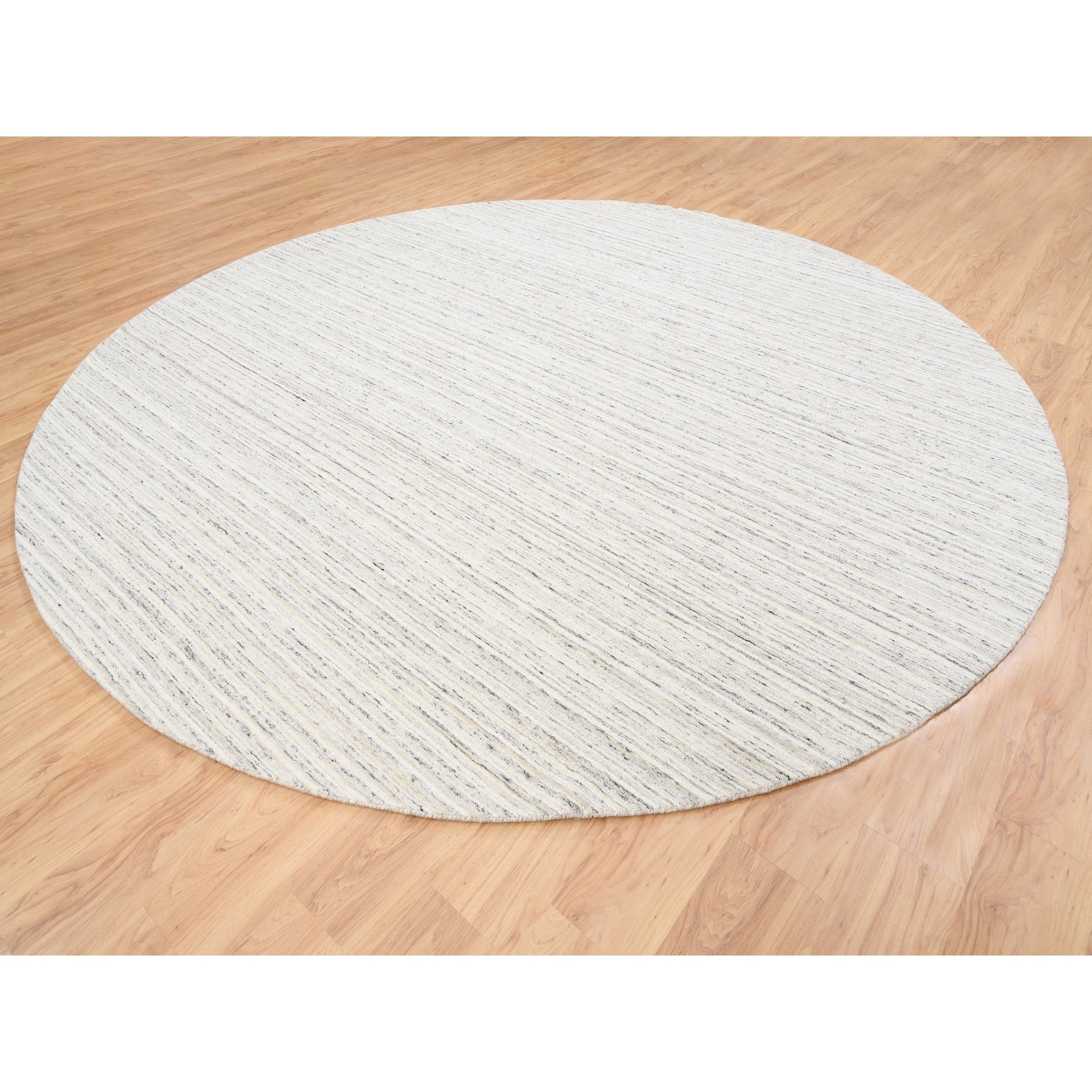 11'10"x11'10" Hand Loomed Undyed Natural Wool Plain Modern Design Light Gray Oriental Round Rug FWR378246