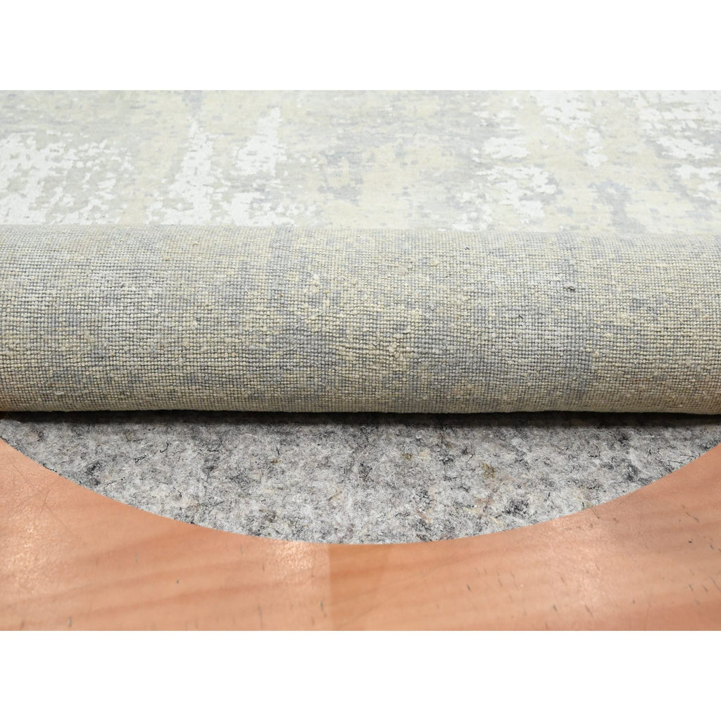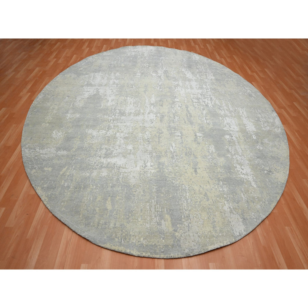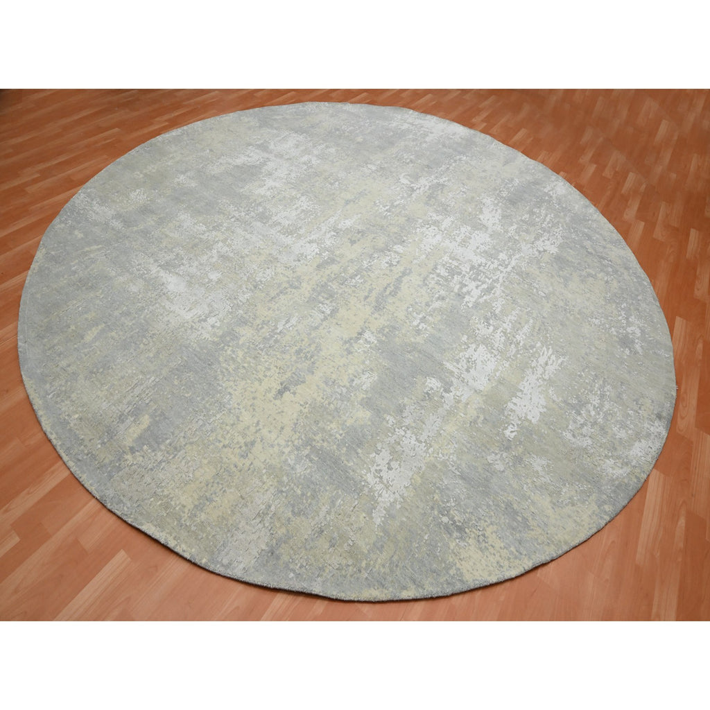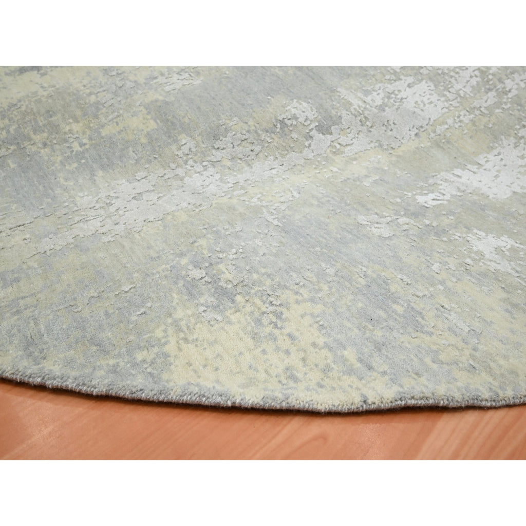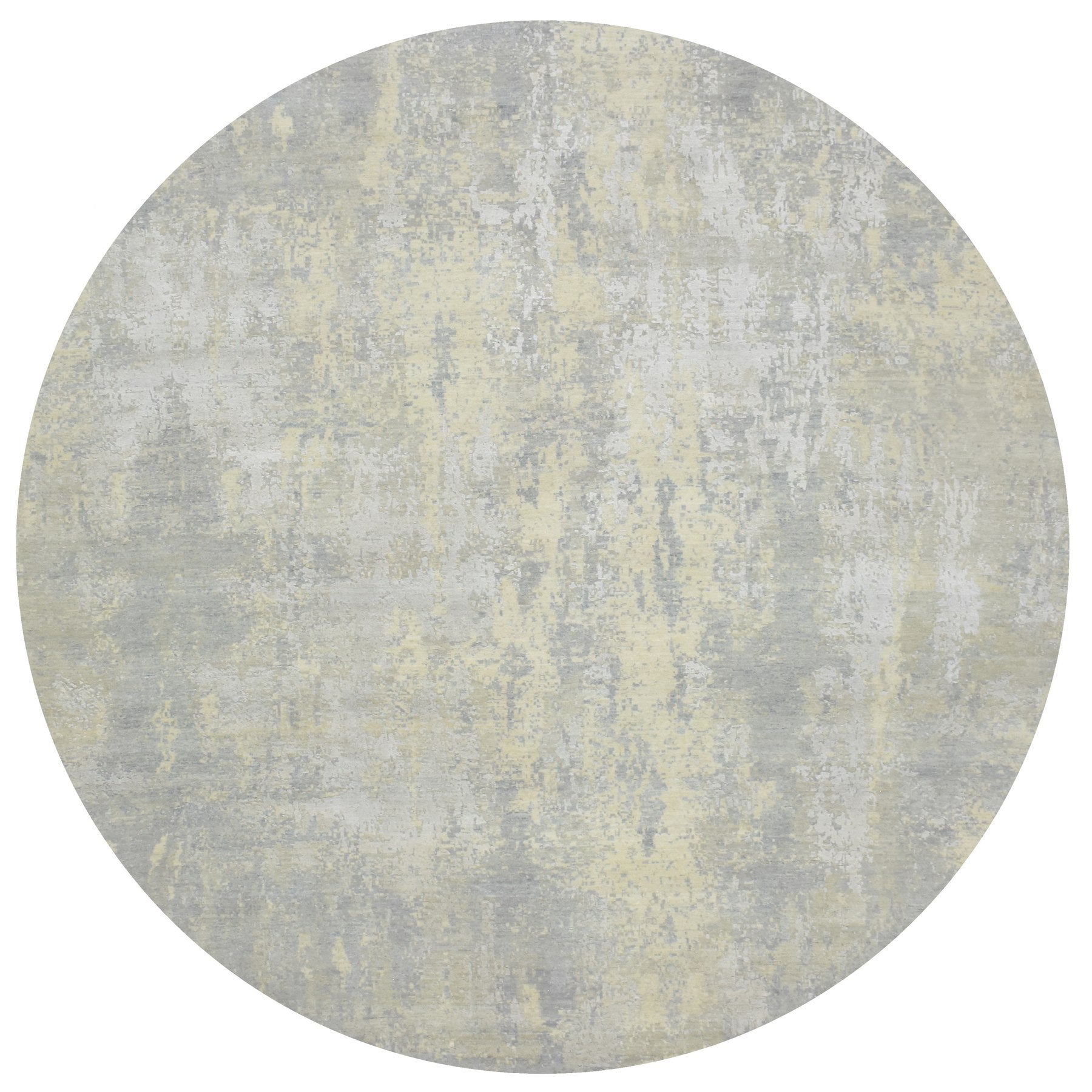11'10"x11'10" Light Gray, Modern Abstract Design With Soft Colors, Wool And Pure Silk, Hand Knotted, Round, Oriental Rug FWR454050