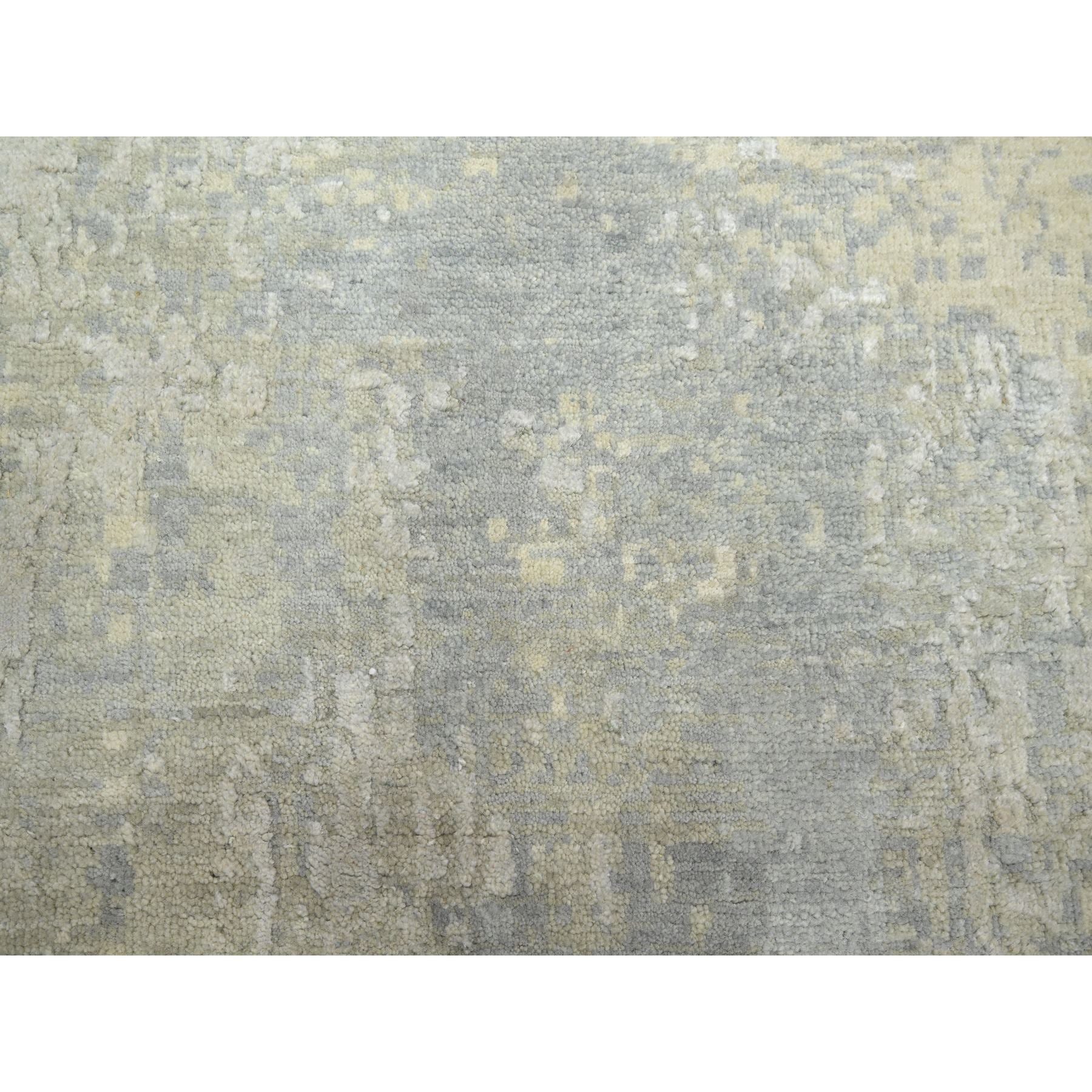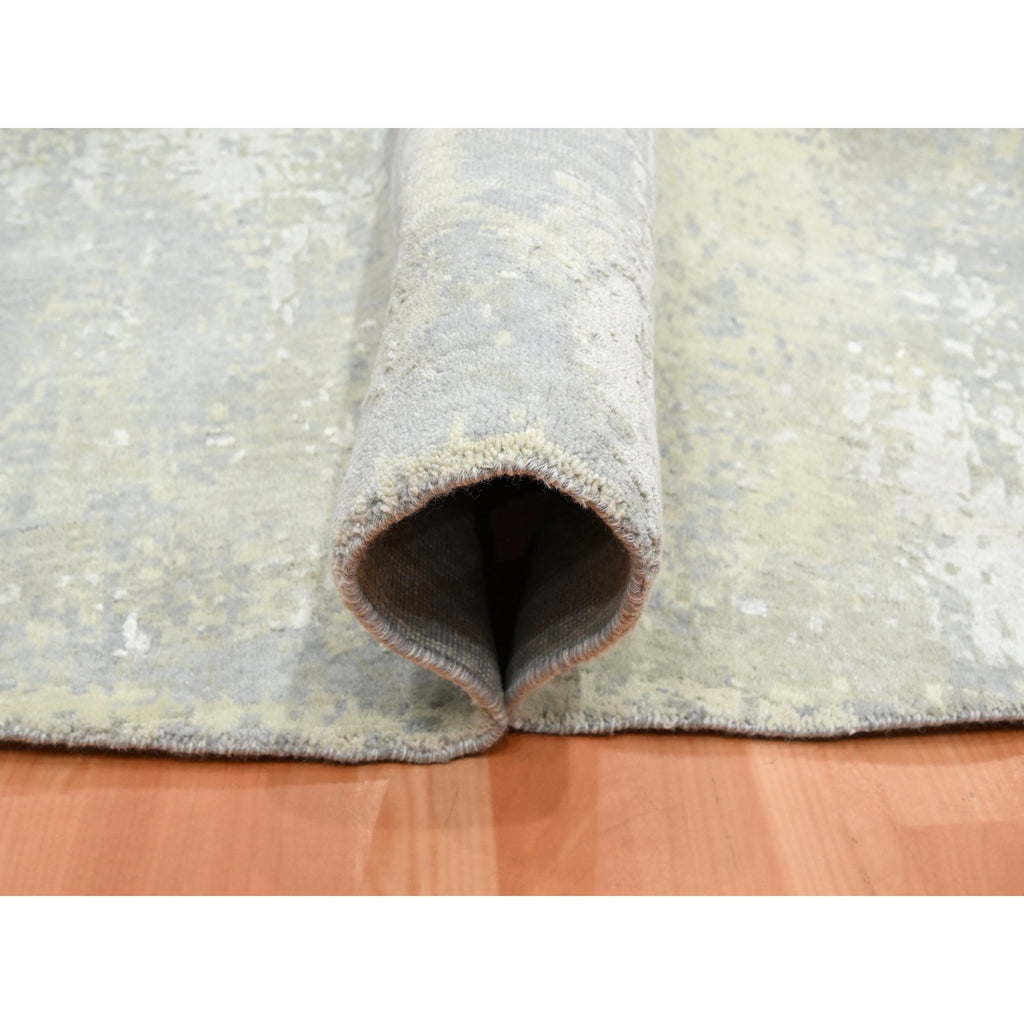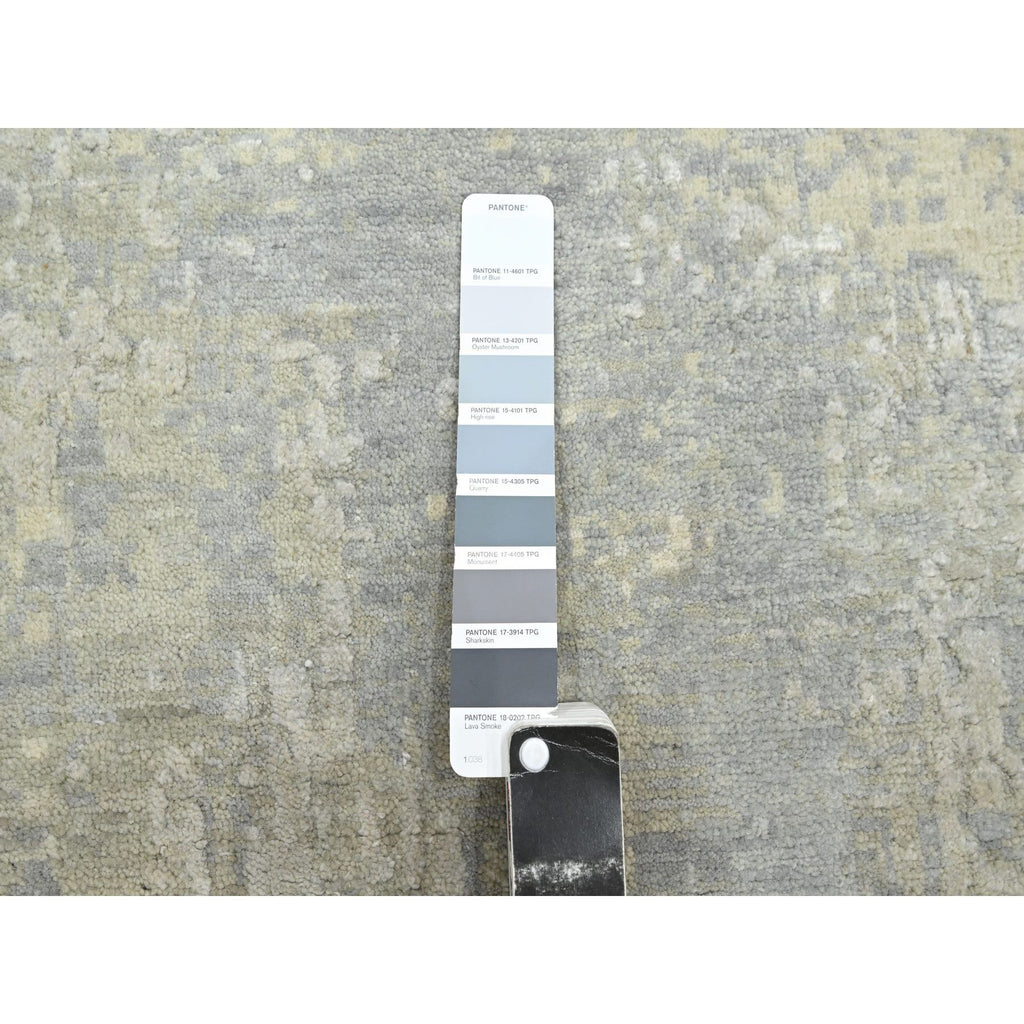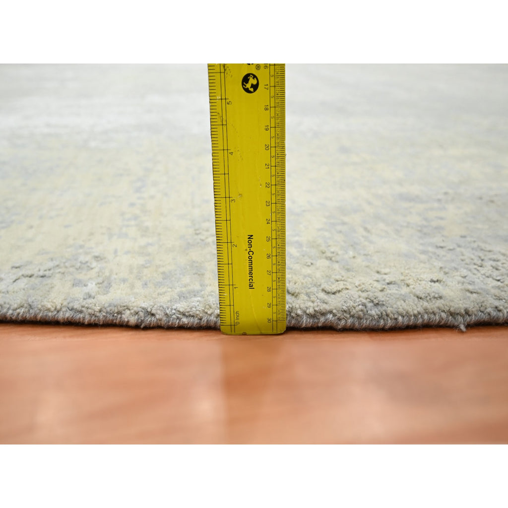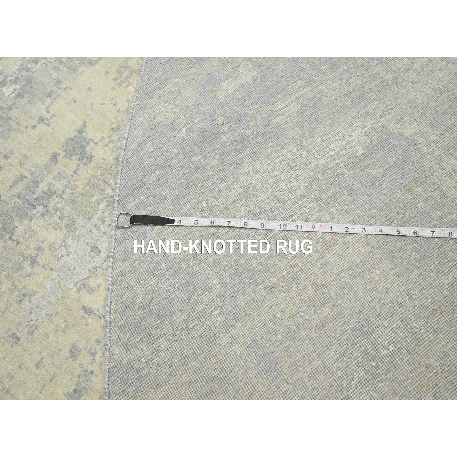 11'10"x11'10" Light Gray, Modern Abstract Design With Soft Colors, Wool And Pure Silk, Hand Knotted, Round, Oriental Rug FWR454050