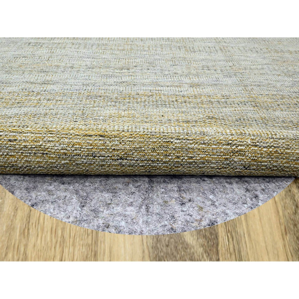 11'10"x11'10" Nugget Gold, Pure Wool, Hand Knotted, Oxidized And Distressed Grass Design With Exposed Warps, Round, Oriental Rug FWR460368