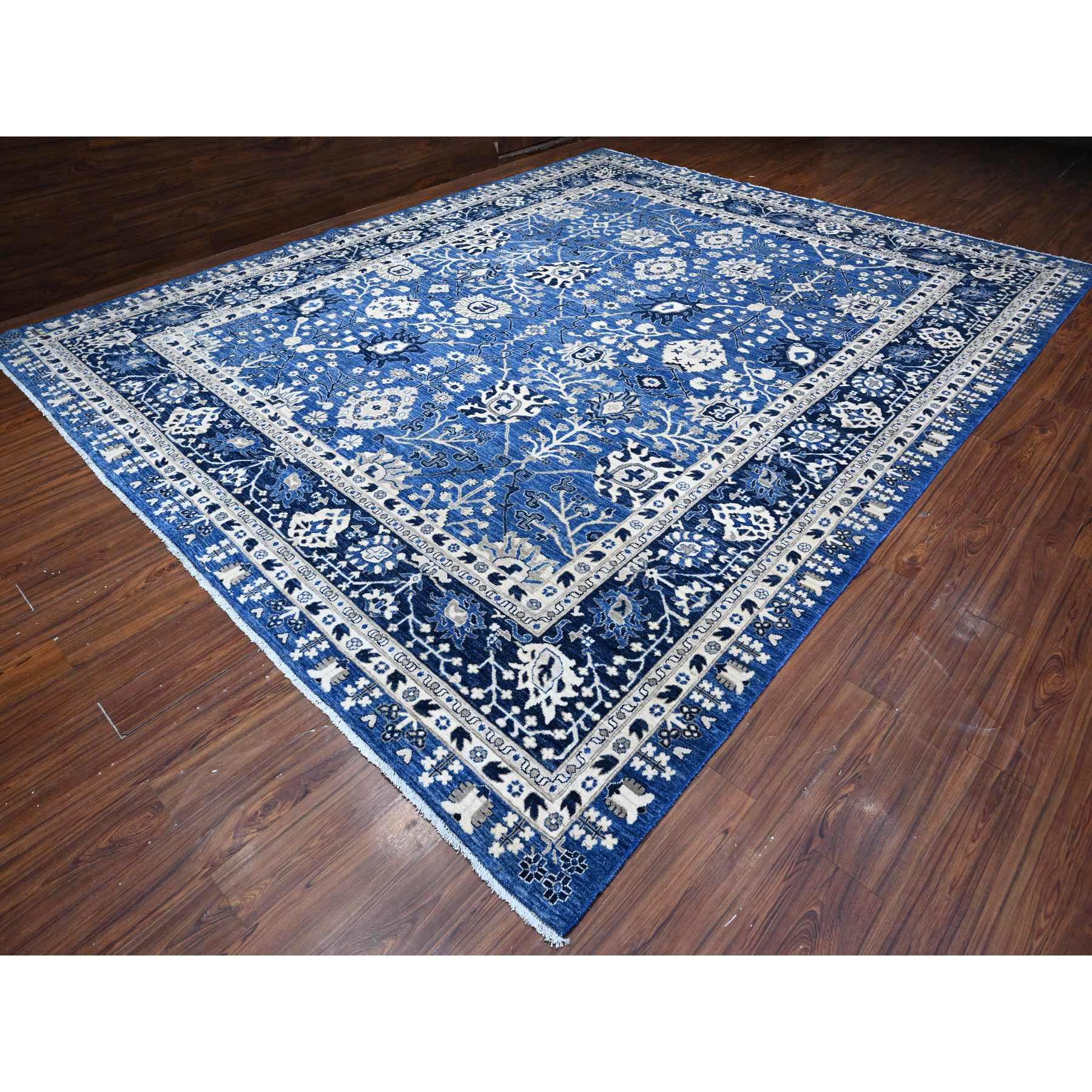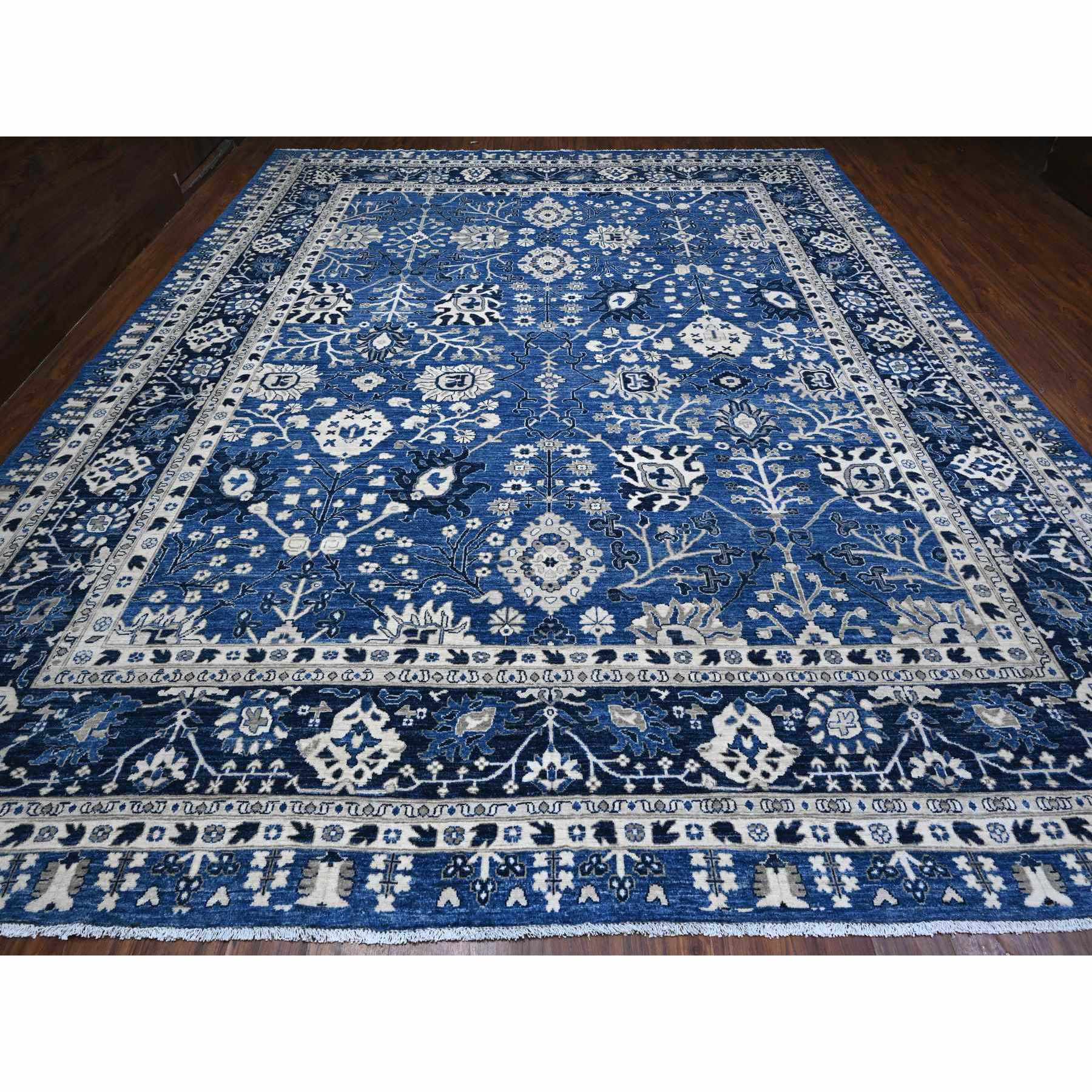 11'10"x14'5" Ultramarine Blue, Natural Dyes, Hand Knotted, Oversized Peshawar With Tabriz Vase Design, 100% Wool, Oriental Rug FWR535062
