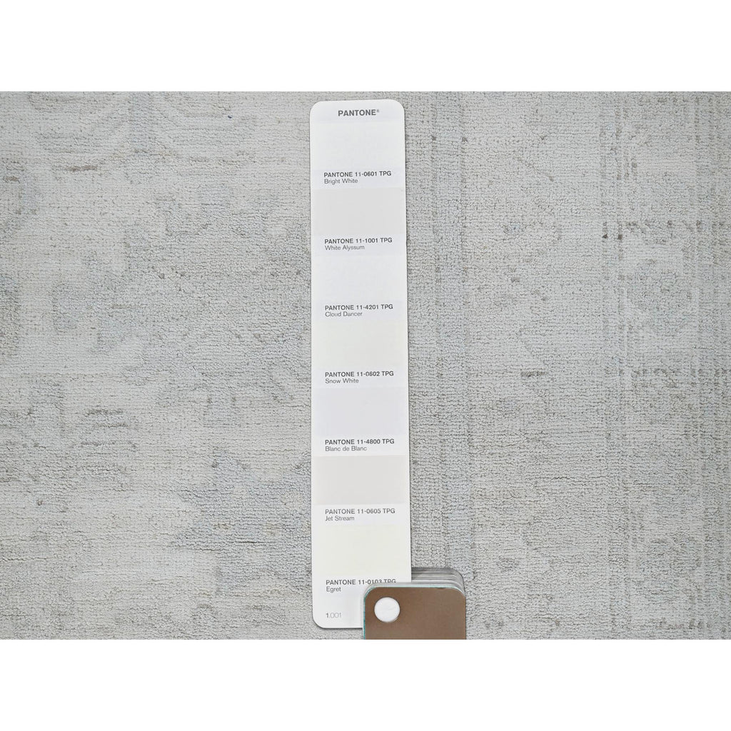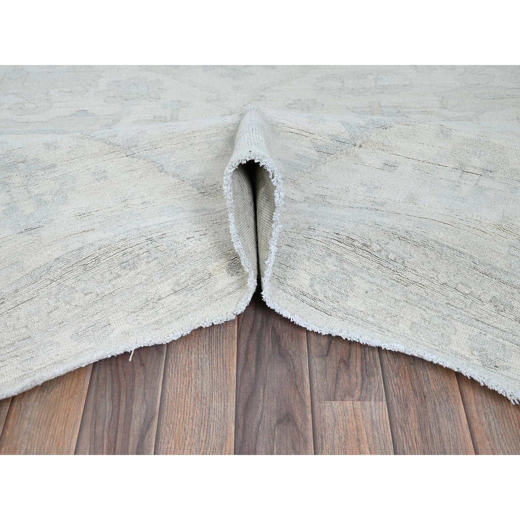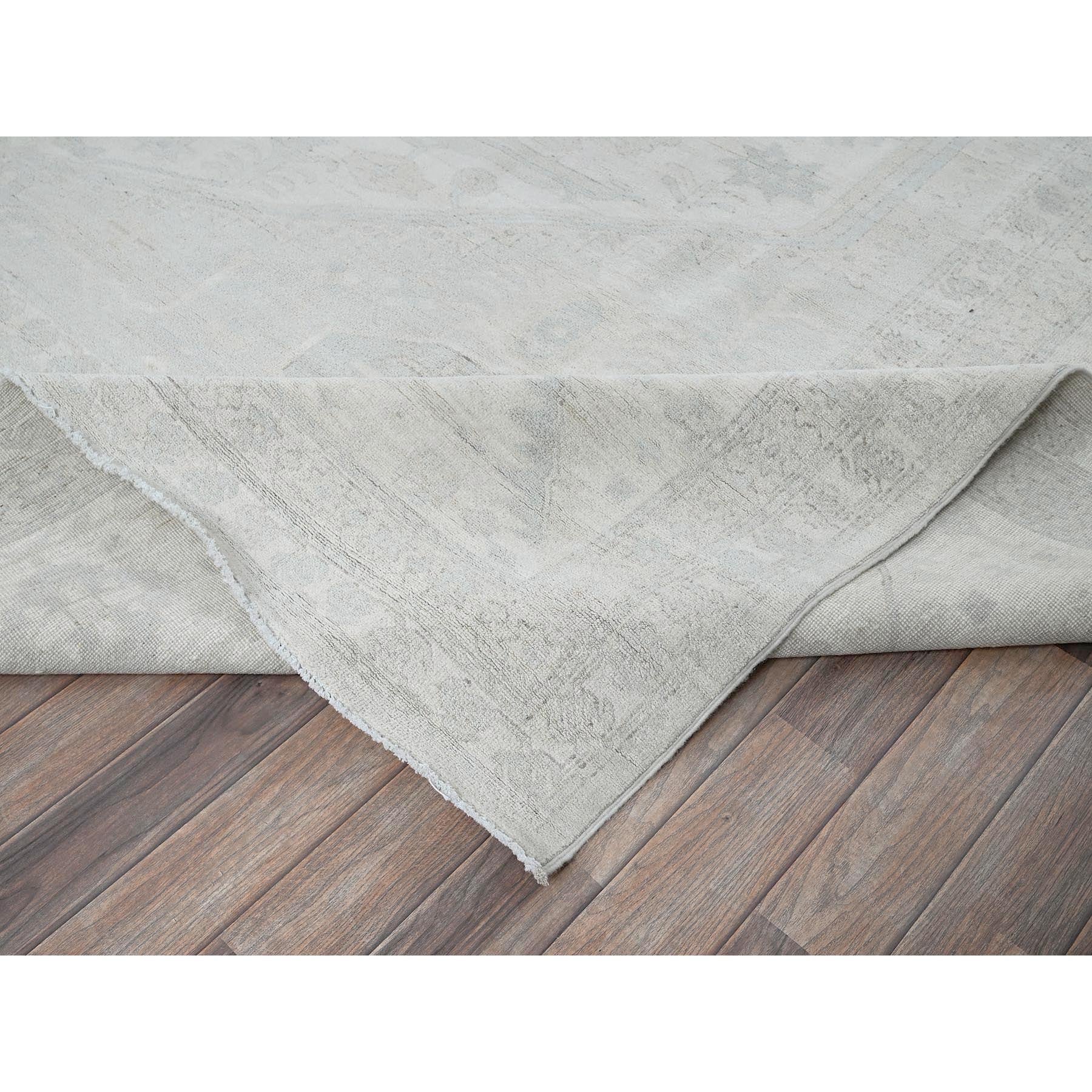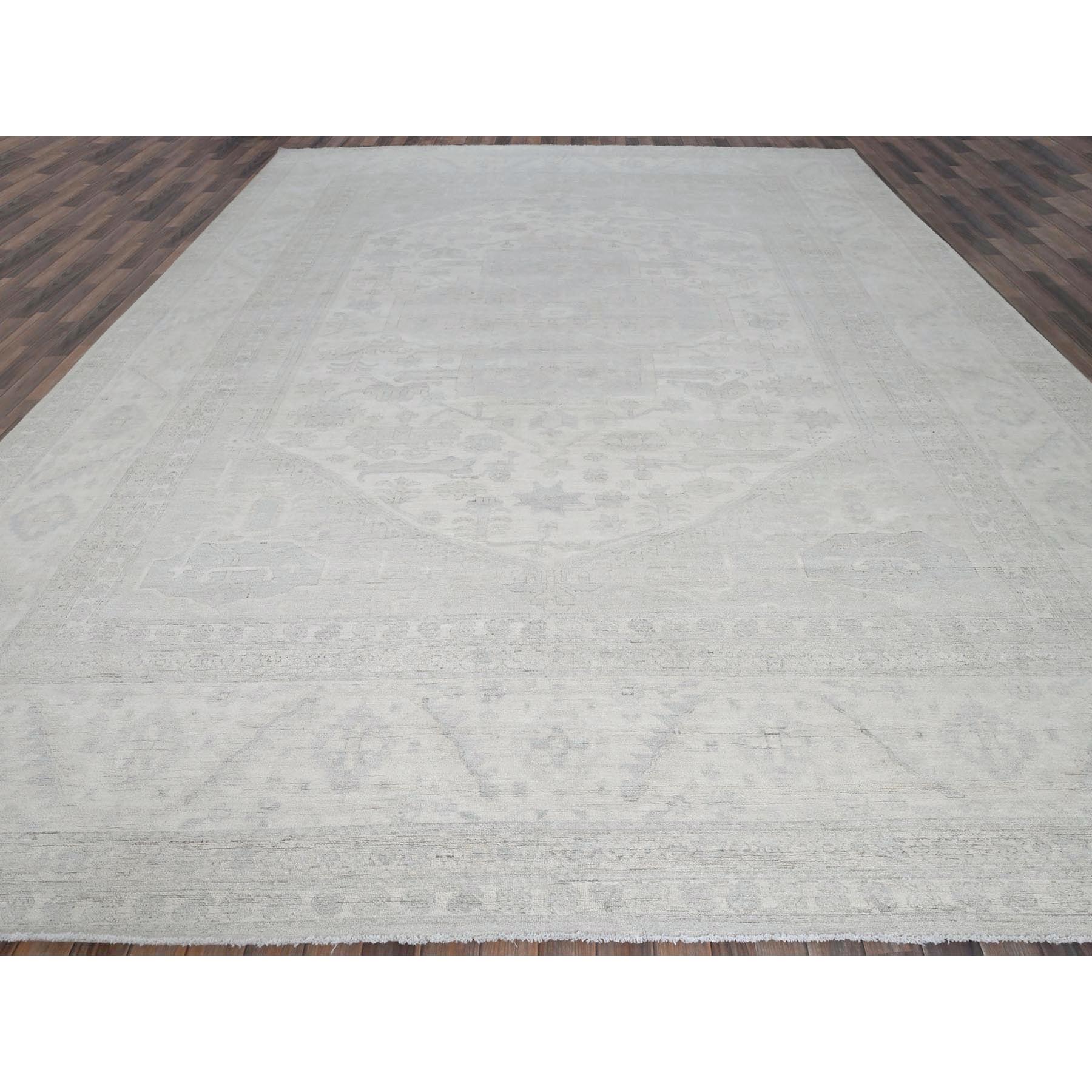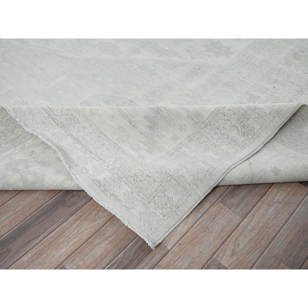 11'10"x14'7" Pearl White, Washed Out Peshawar With Heriz Design, Hand Knotted, Pure Wool, Densely Woven, Oversized, Oriental Rug FWR5586