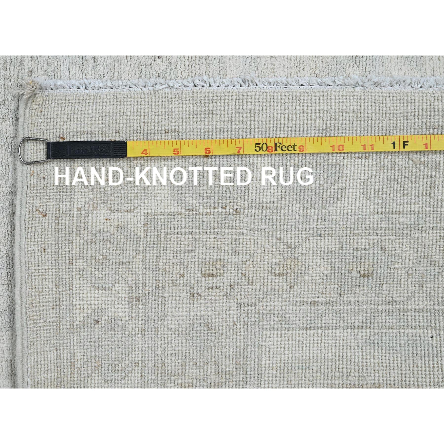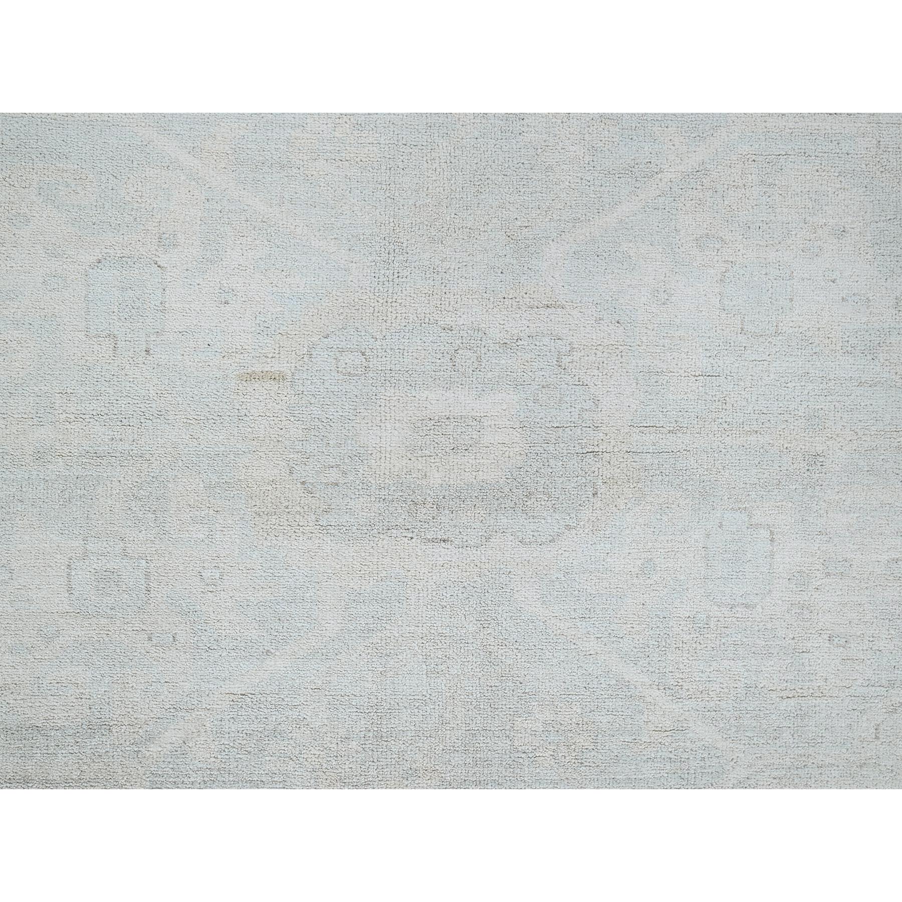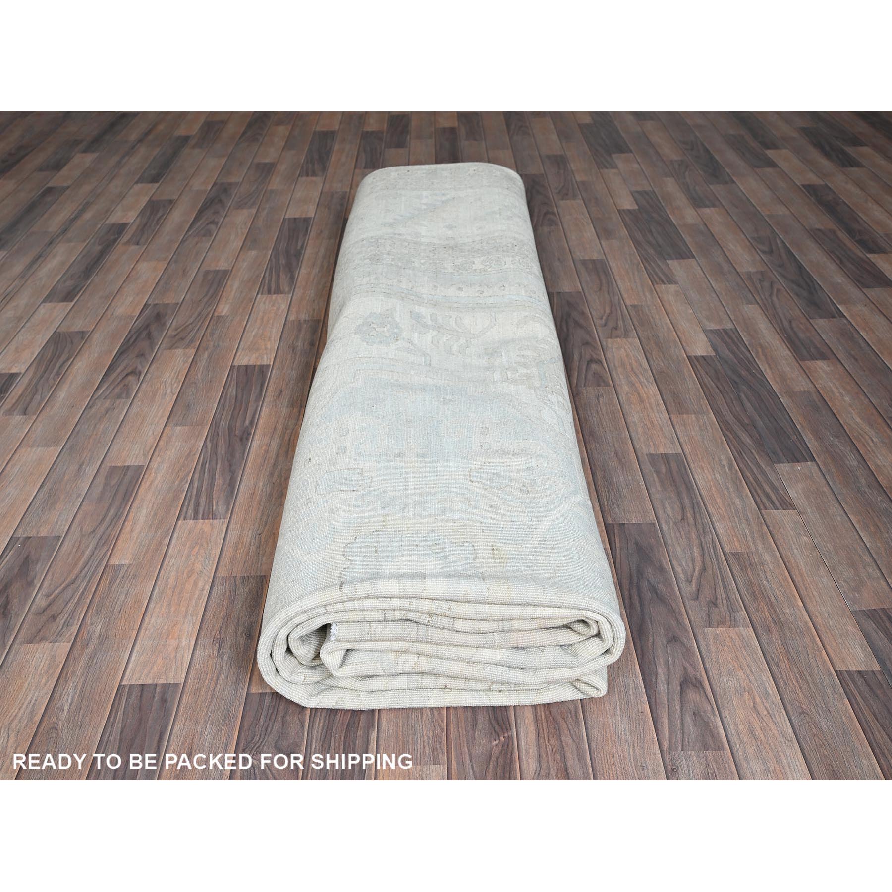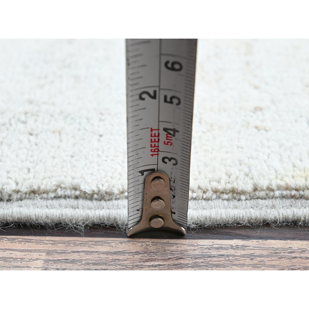 11'10"x14'7" Pearl White, Washed Out Peshawar With Heriz Design, Hand Knotted, Pure Wool, Densely Woven, Oversized, Oriental Rug FWR5586