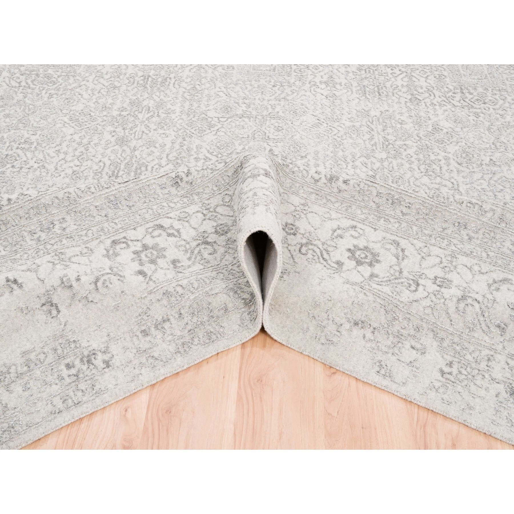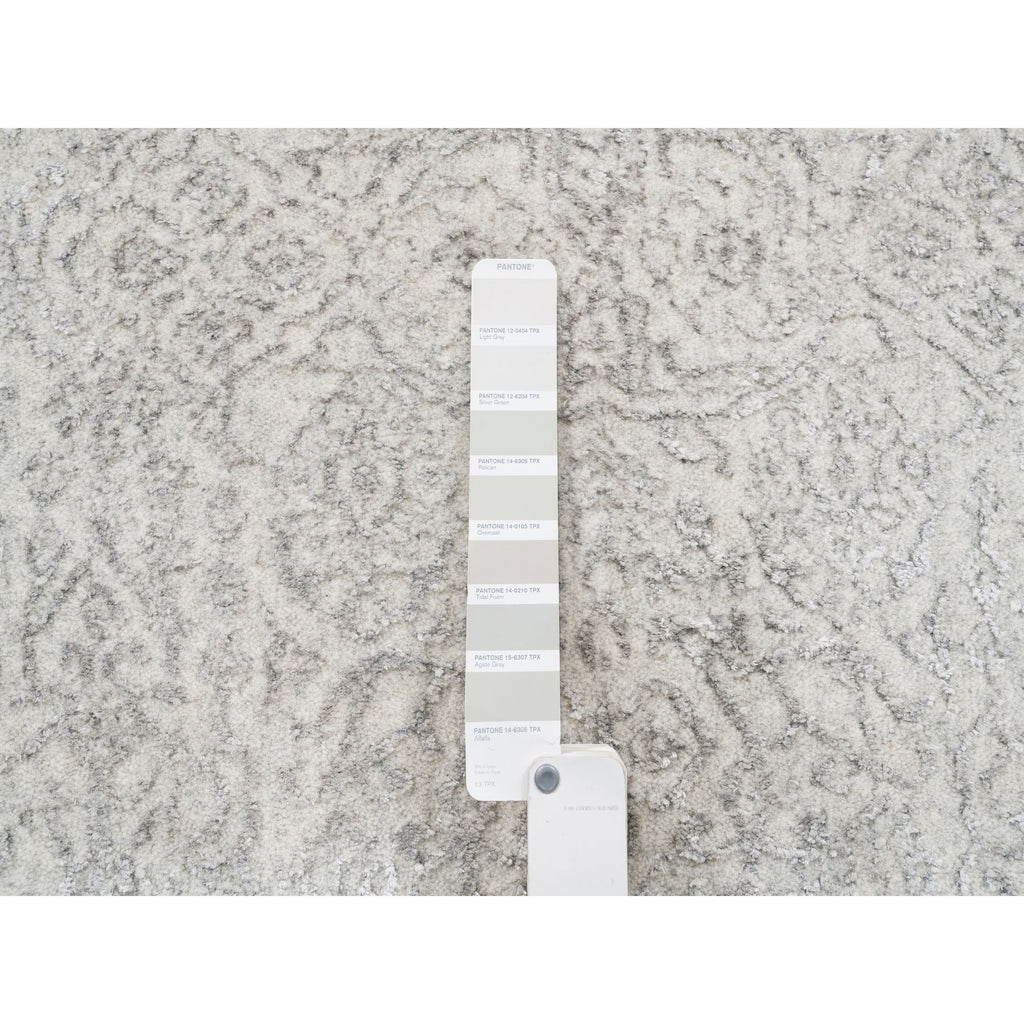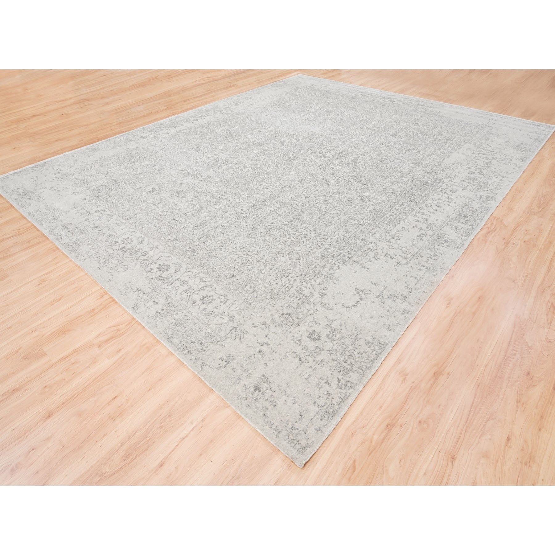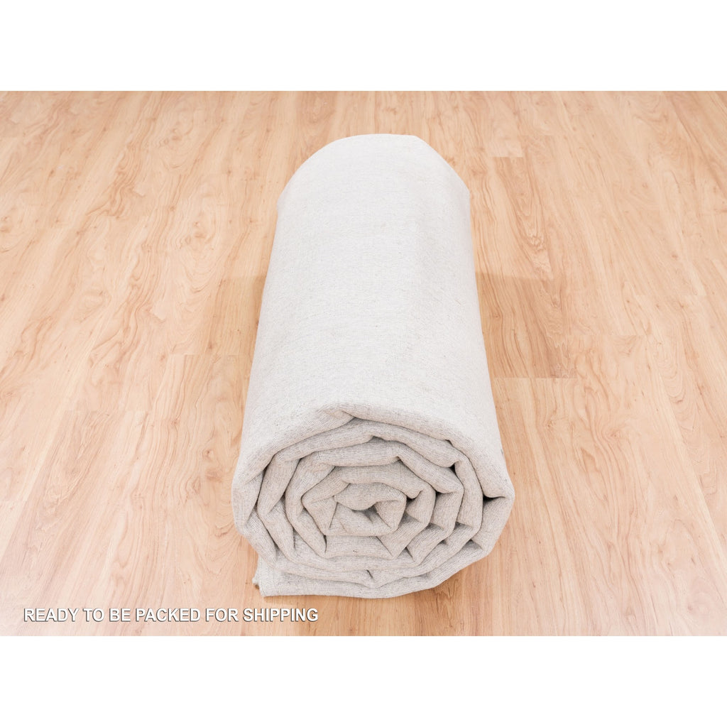 11'10"x14'9" Beige Wool And Art Silk Fine Jacquard Hand Loomed Modern Oversized Oriental Rug FWR377016