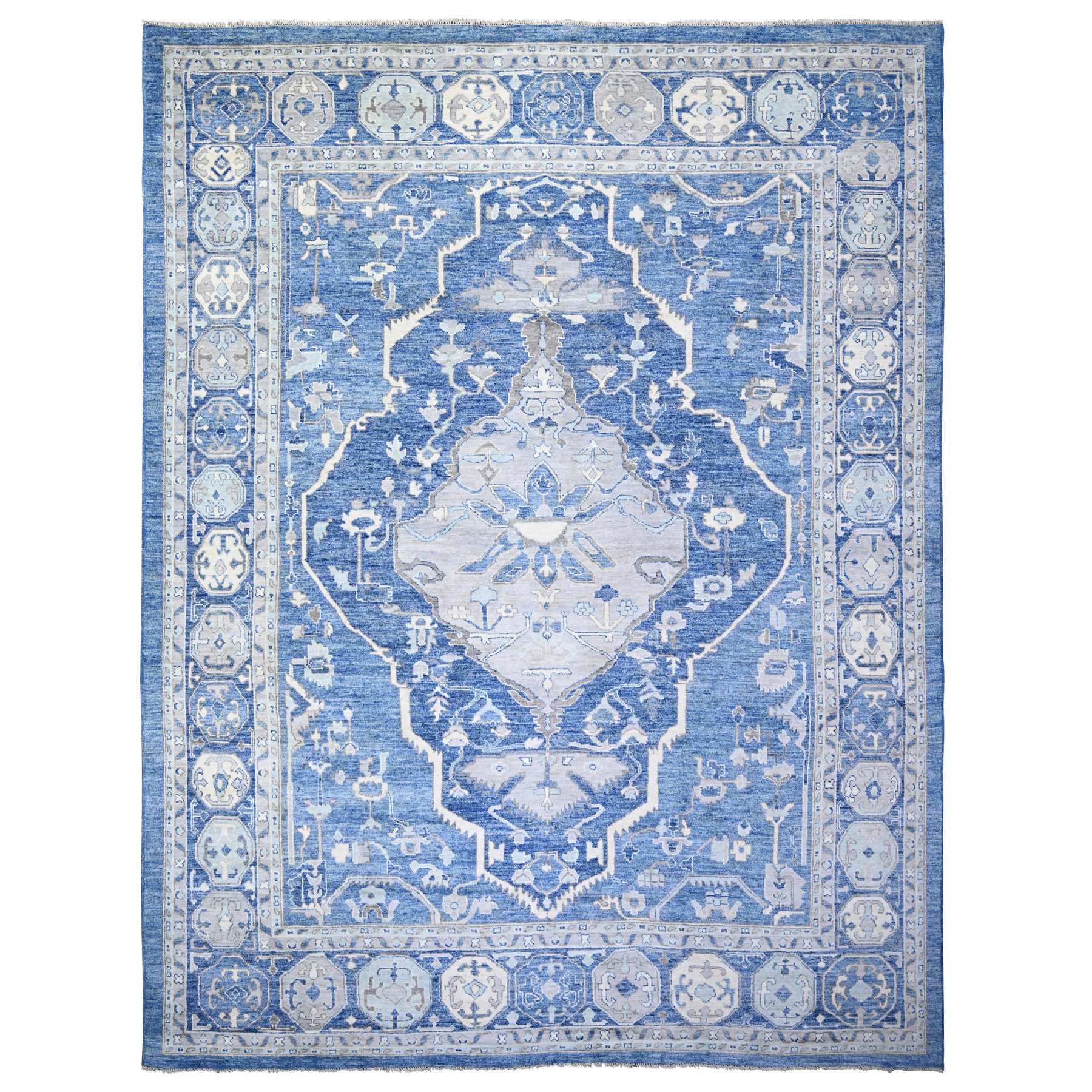 11'10"x15'1" Steel Blue, Anatolian Village Inspired With Large Medallions Vegetable Dyes, 100% Wool Hand Knotted, Oversized Oriental Rug FWR442248