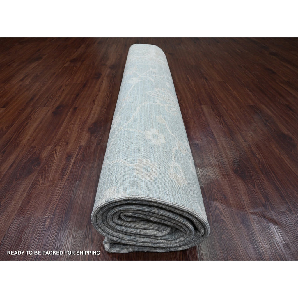 11'10"x15'3" Misty Gray, White Wash Peshawar With All Over Leaf Design, Natural Dyes, 100% Wool, Hand Knotted, Oversized, Oriental Rug FWR122196