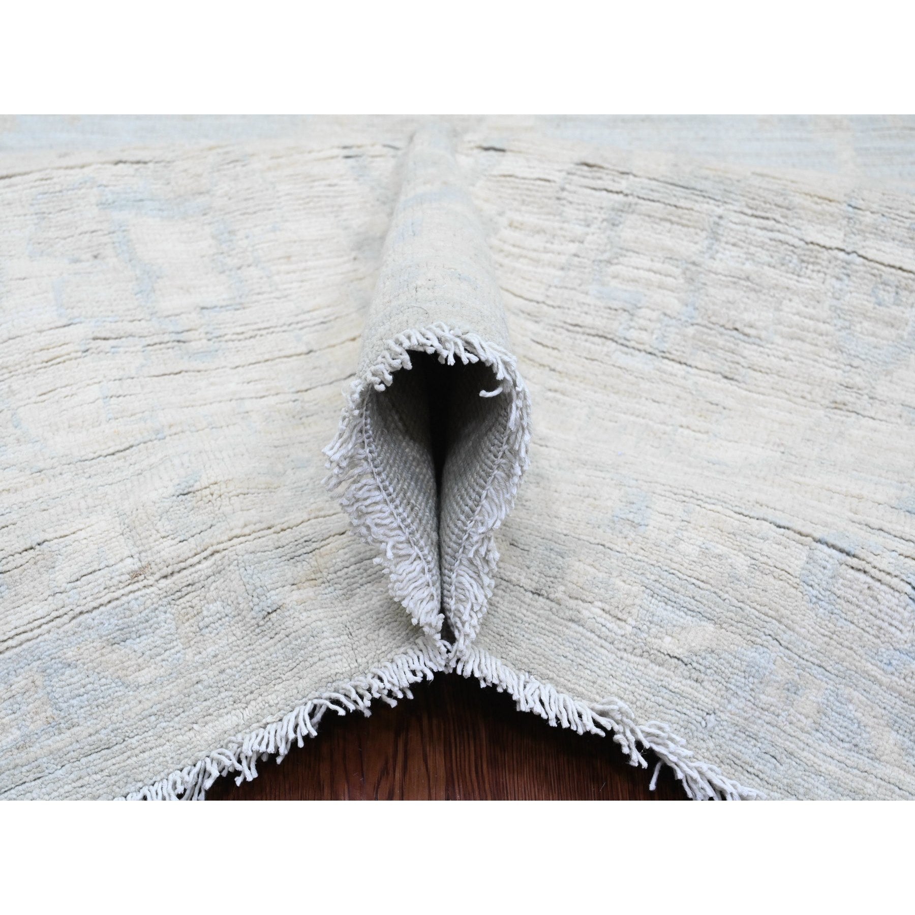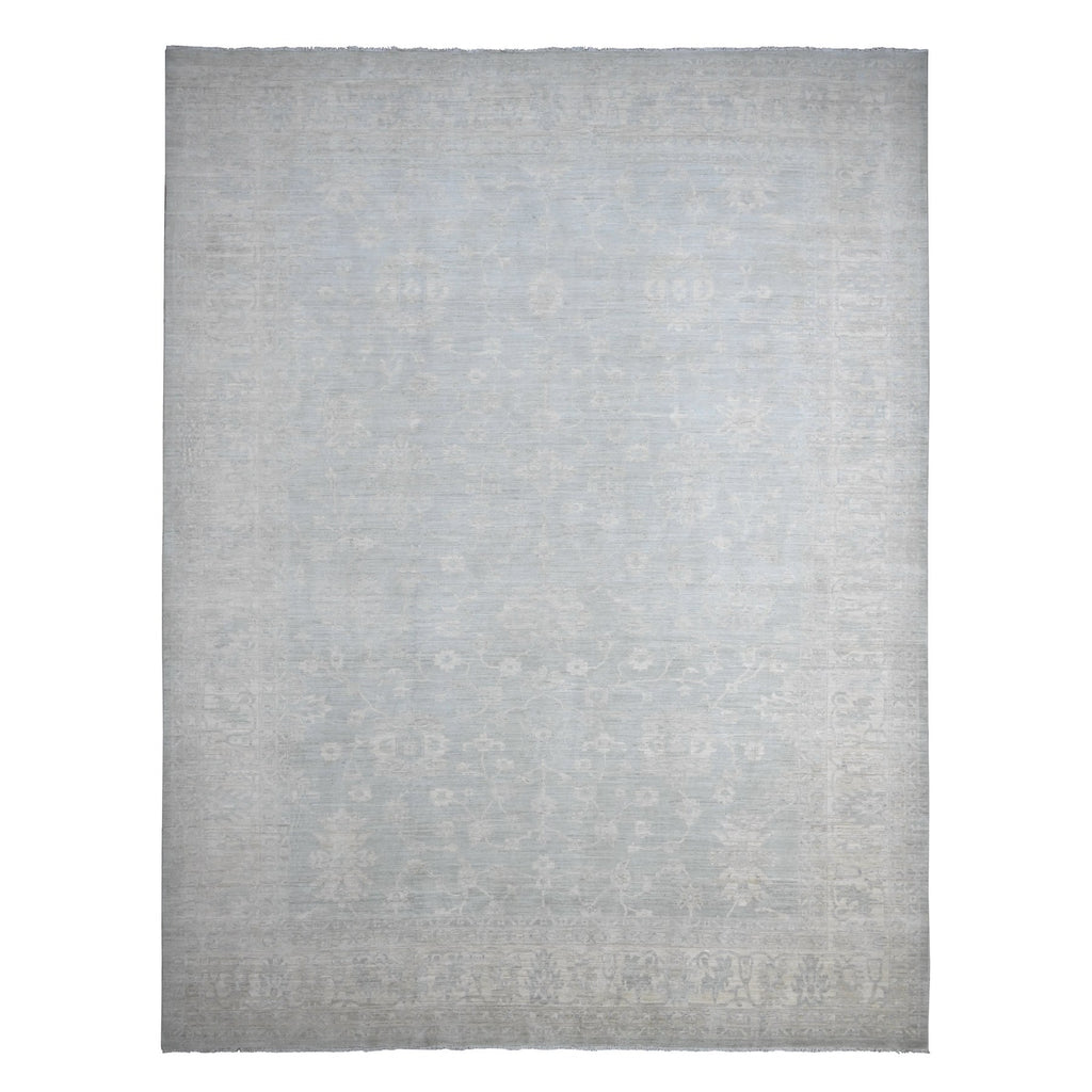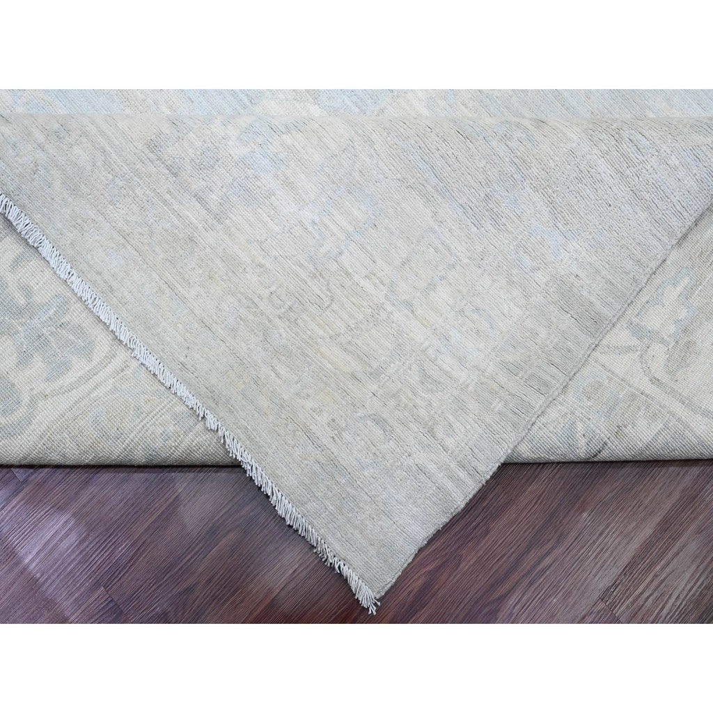 11'10"x15'3" Misty Gray, White Wash Peshawar With All Over Leaf Design, Natural Dyes, 100% Wool, Hand Knotted, Oversized, Oriental Rug FWR122196