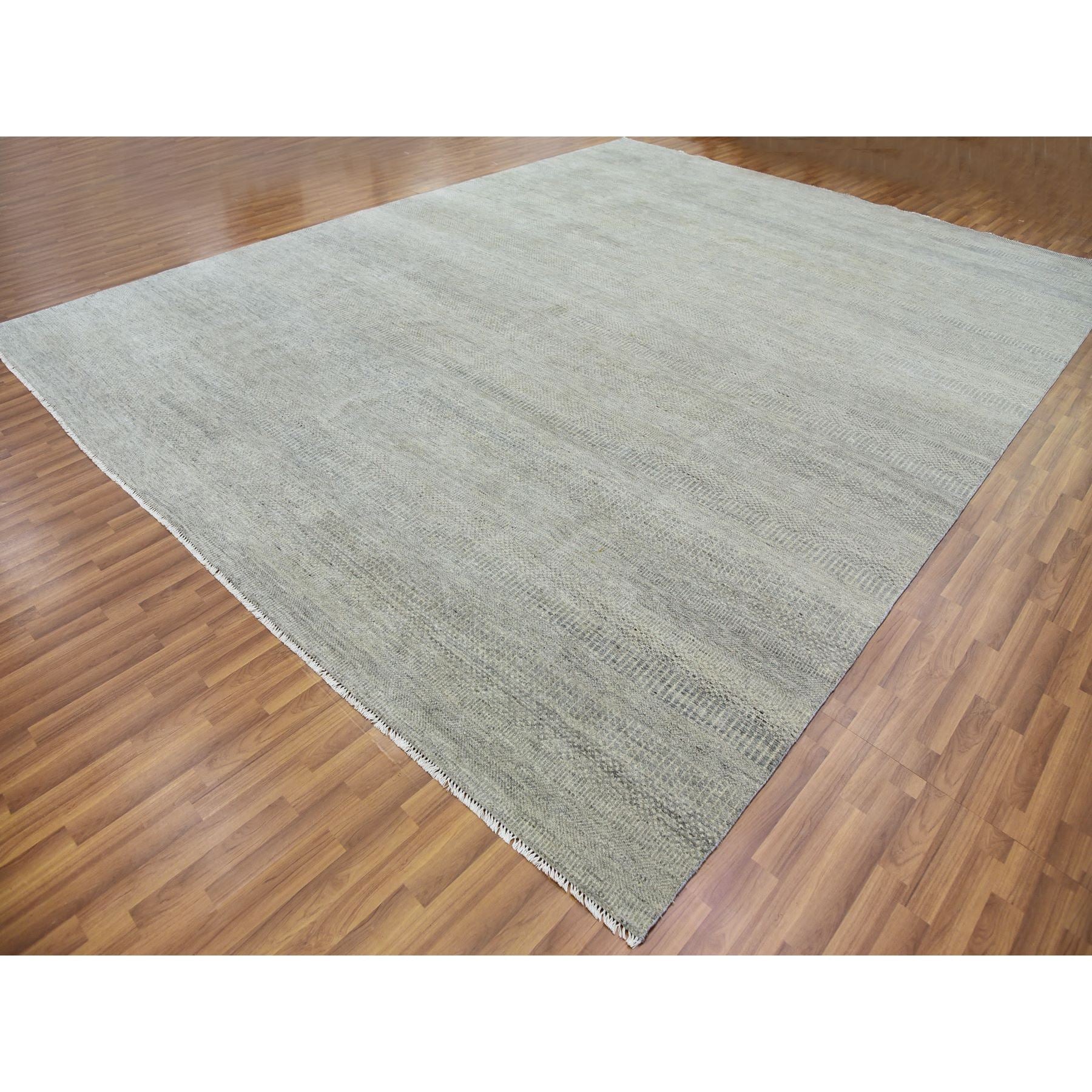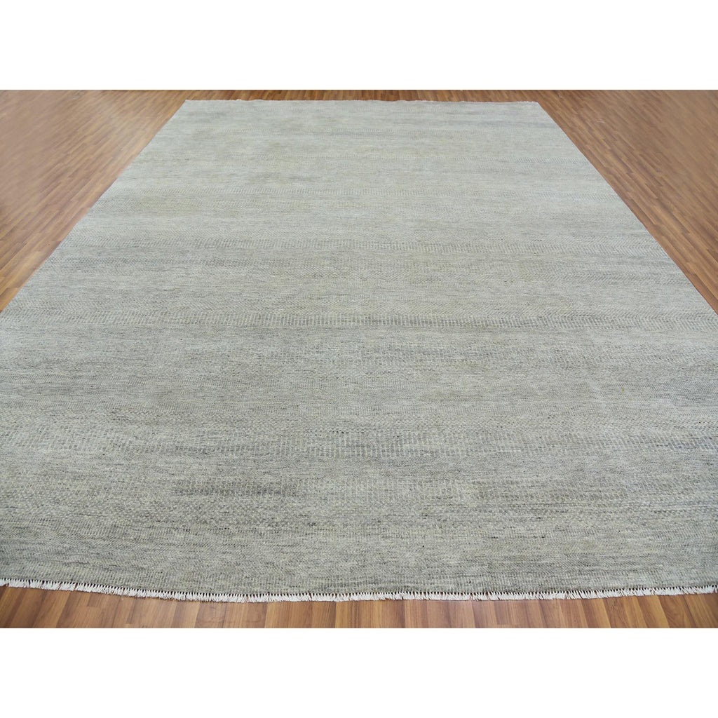 11'10"x15'4" Templeton Gray, Natural Undyed Wool, Modern Hand Knotted Grass Design, Tone On Tone Oriental Oversized Rug FWR478560