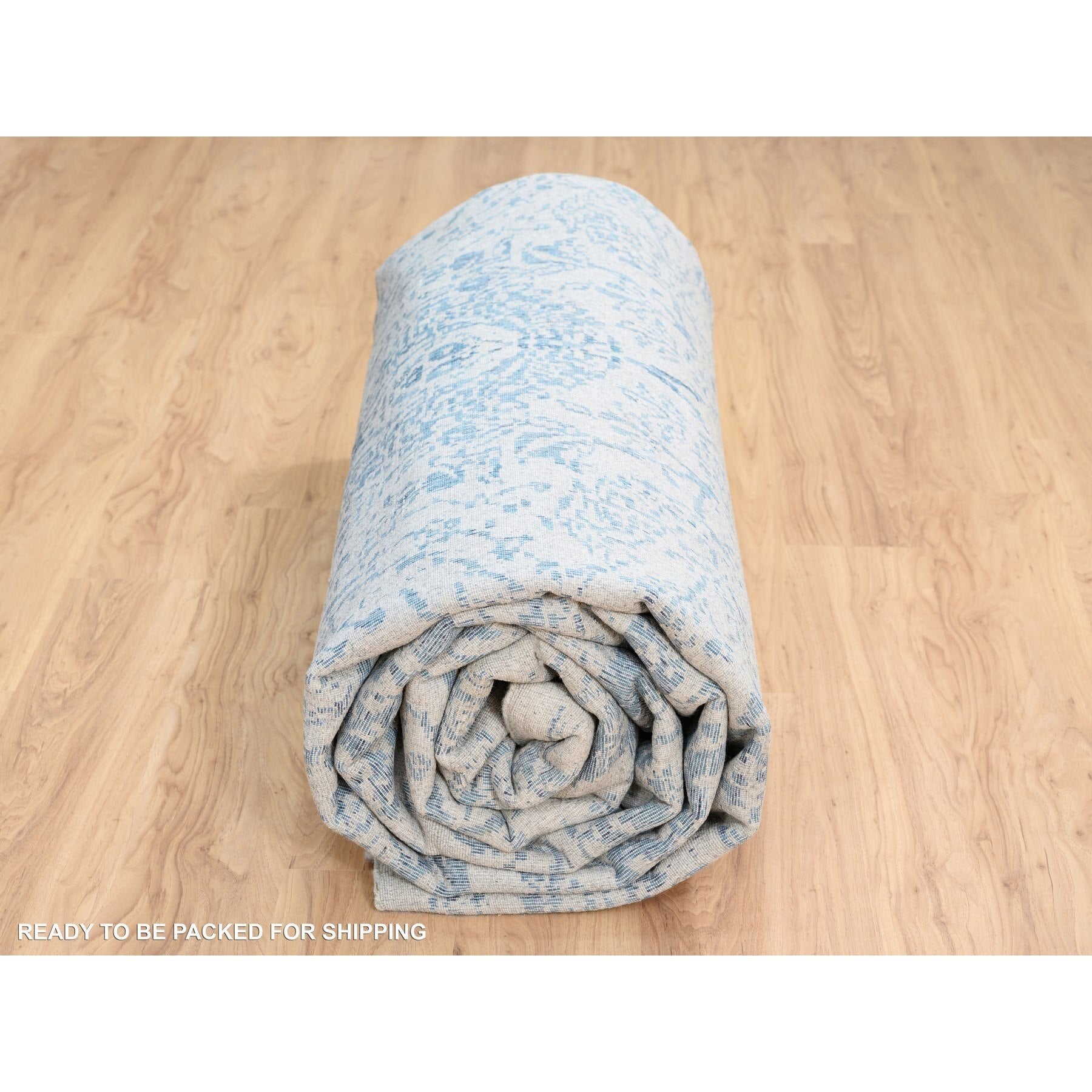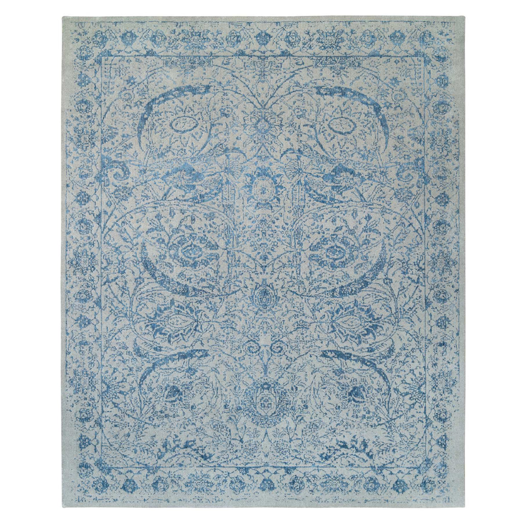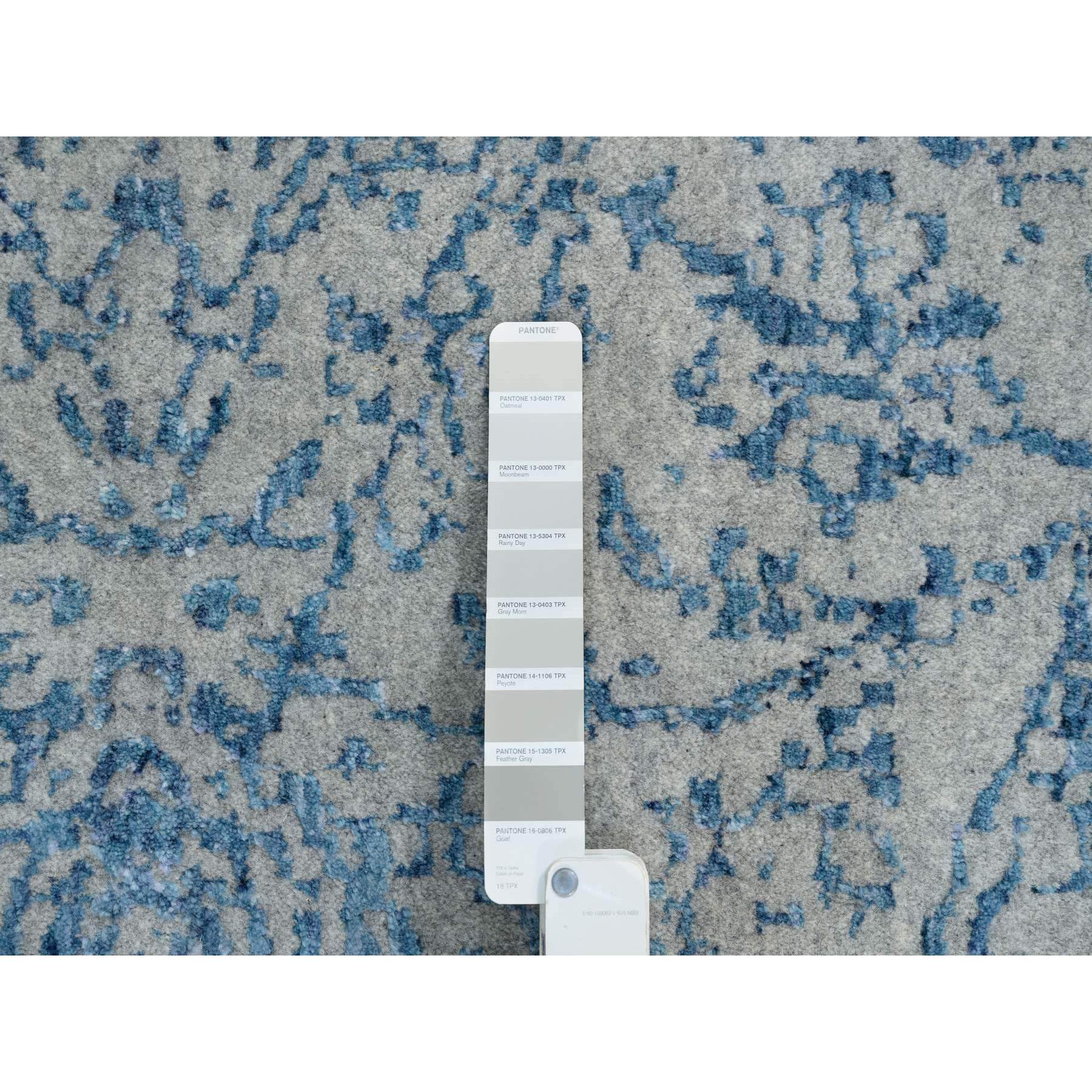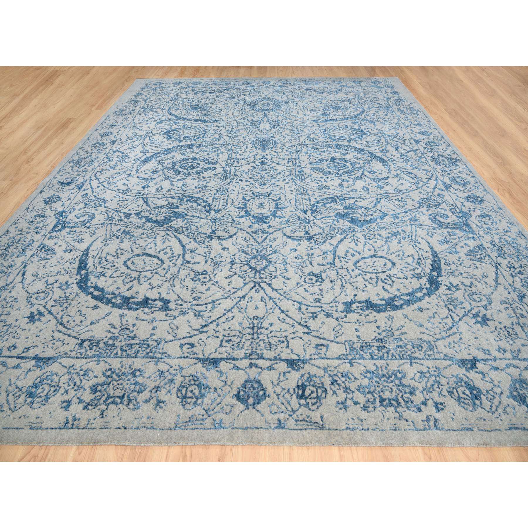 11'10"x15' Hand Loomed Gray Fine Jacquard With Sickle Leaf Design Wool And Plant Based Silk Oriental Oversized Rug FWR380880