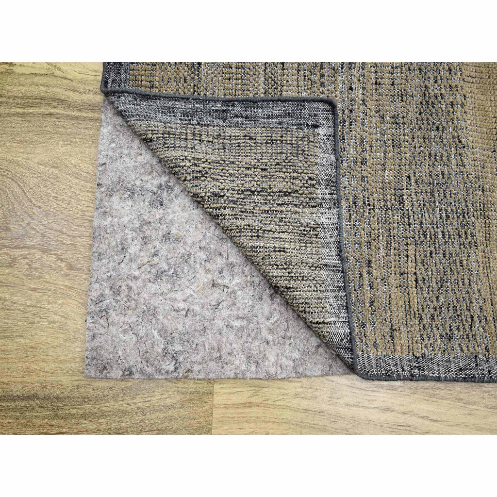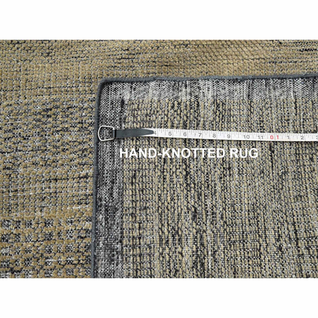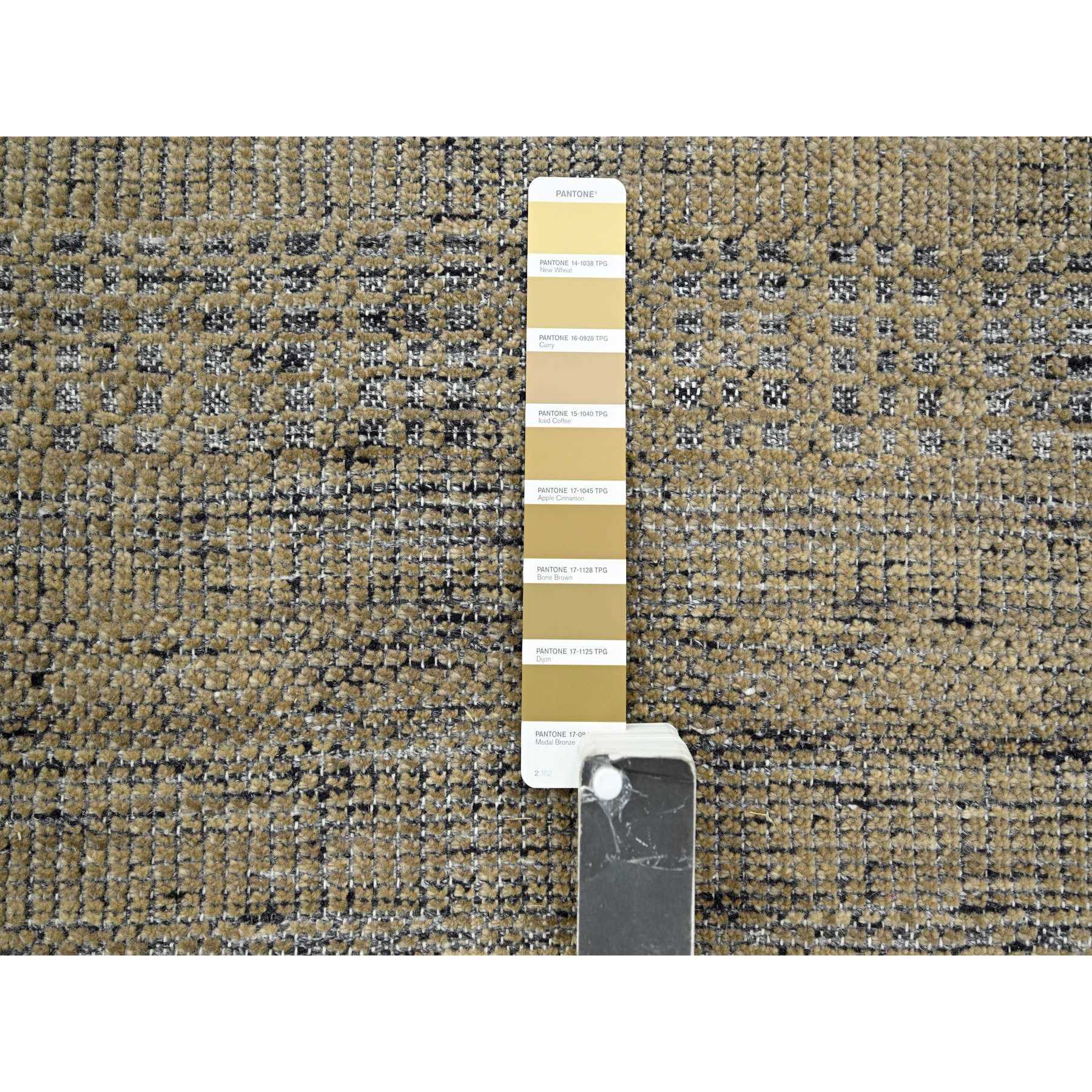 11'10"x15' Latte Brown With Charcoal Black, Oxidized And Distressed Grass Design With Exposed Warps, 100% Wool, Hand Knotted, Oversized, Oriental Rug FWR457728