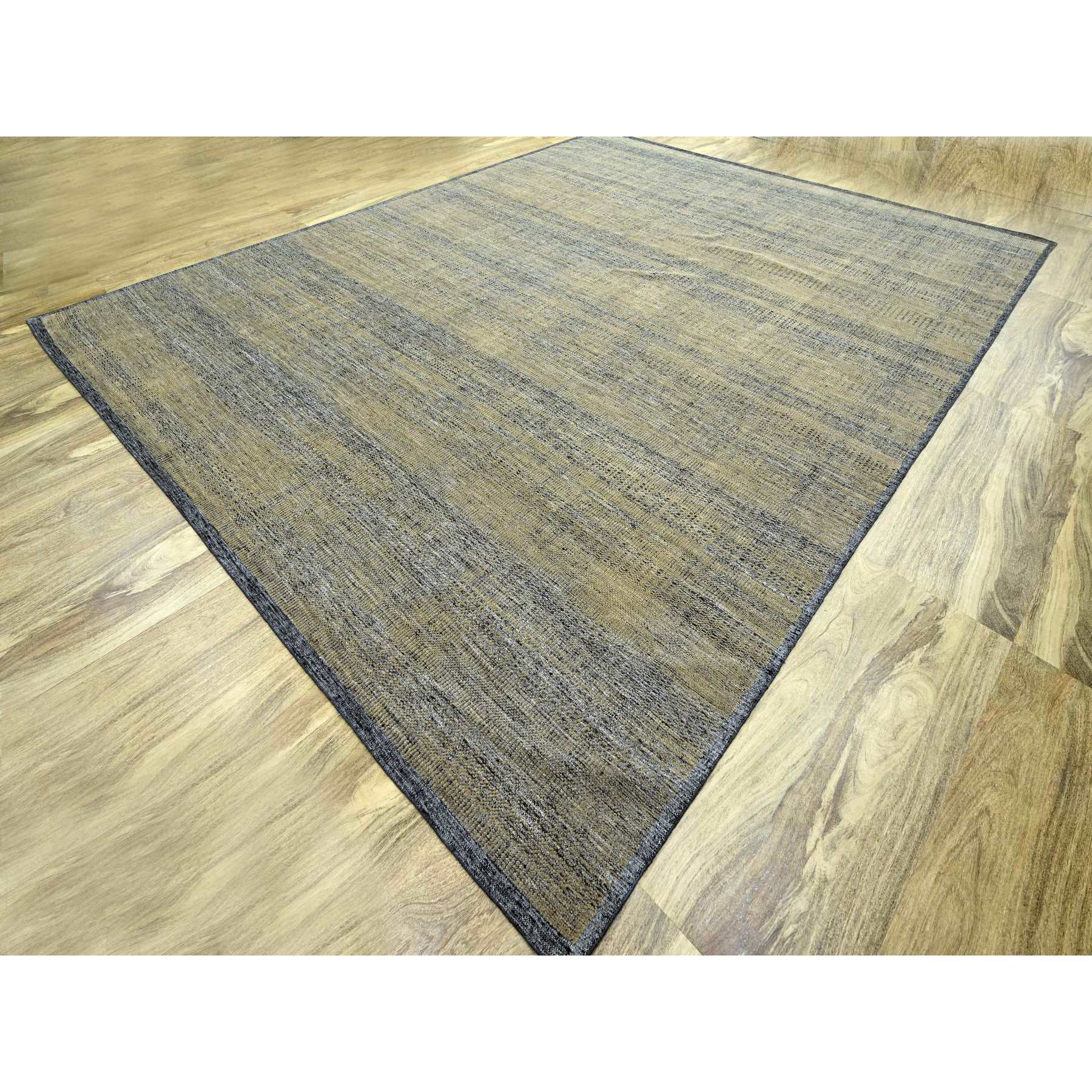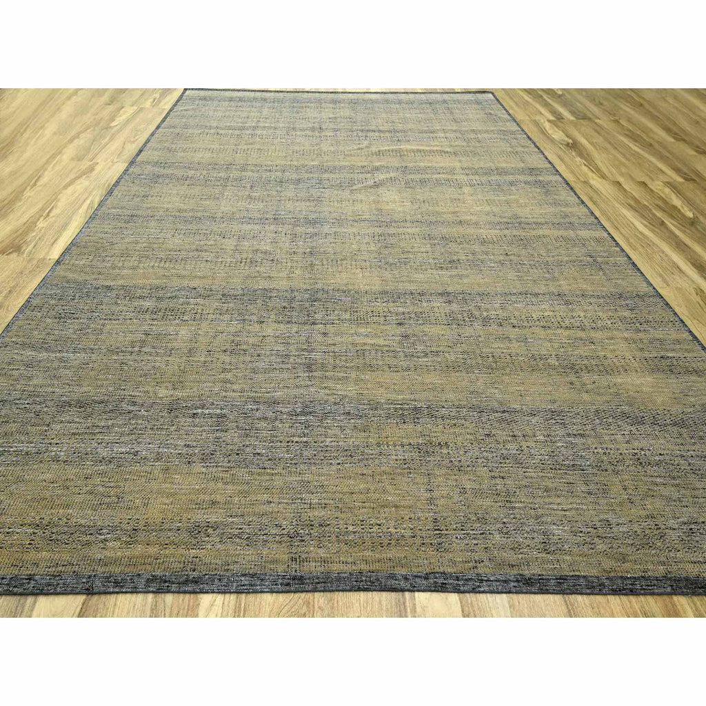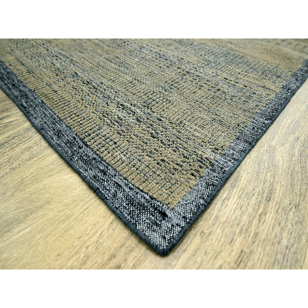 11'10"x15' Latte Brown With Charcoal Black, Oxidized And Distressed Grass Design With Exposed Warps, 100% Wool, Hand Knotted, Oversized, Oriental Rug FWR457728