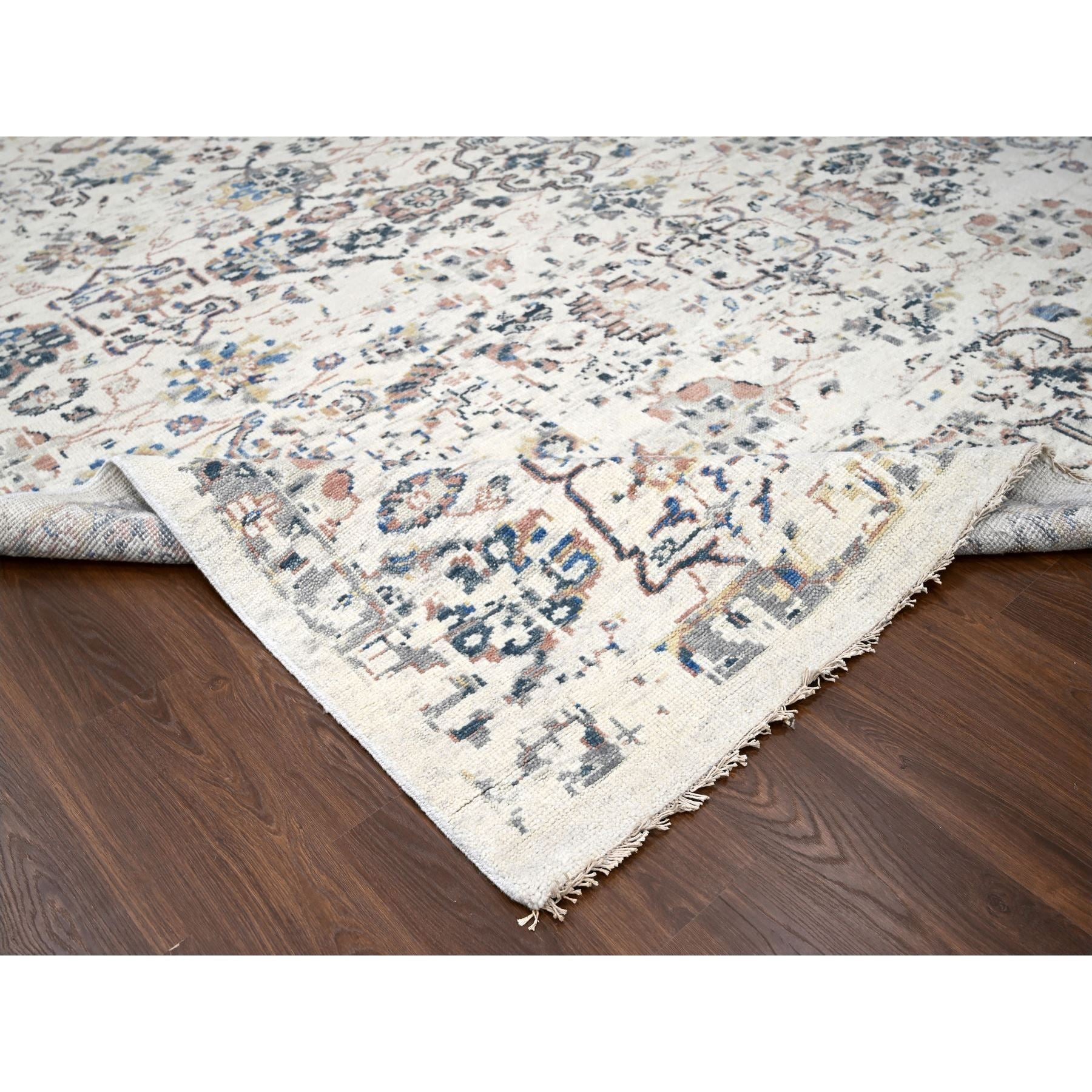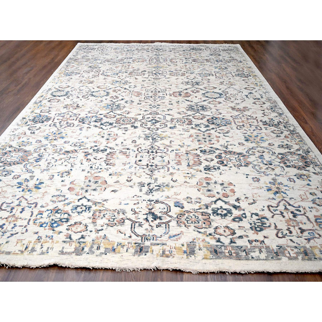 11'10"x17'8" Ivory, Supple Collection, Mahal Design, 100% Wool, Plush And Lush, Transitional Natural Dyes, Hand Knotted, Oriental Rug FWR506184