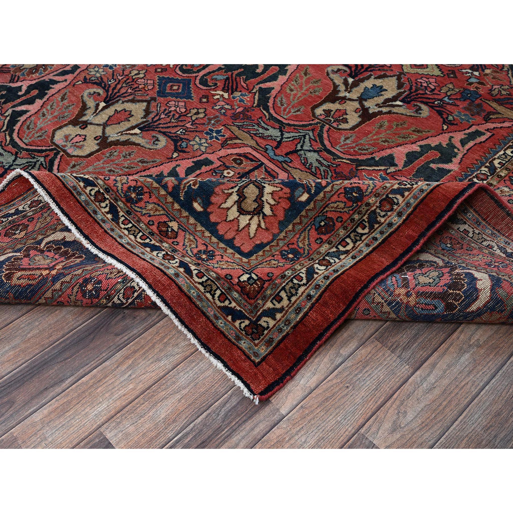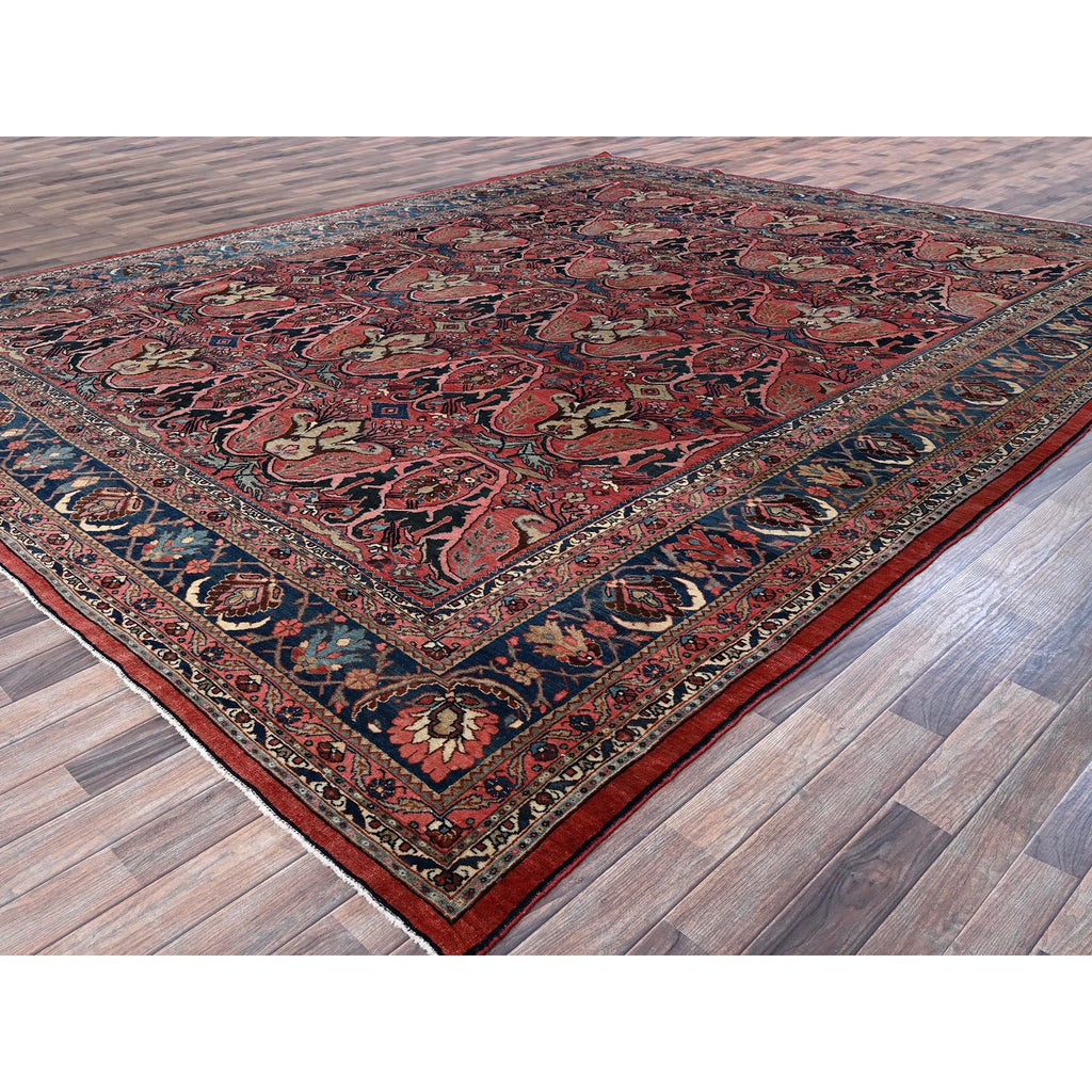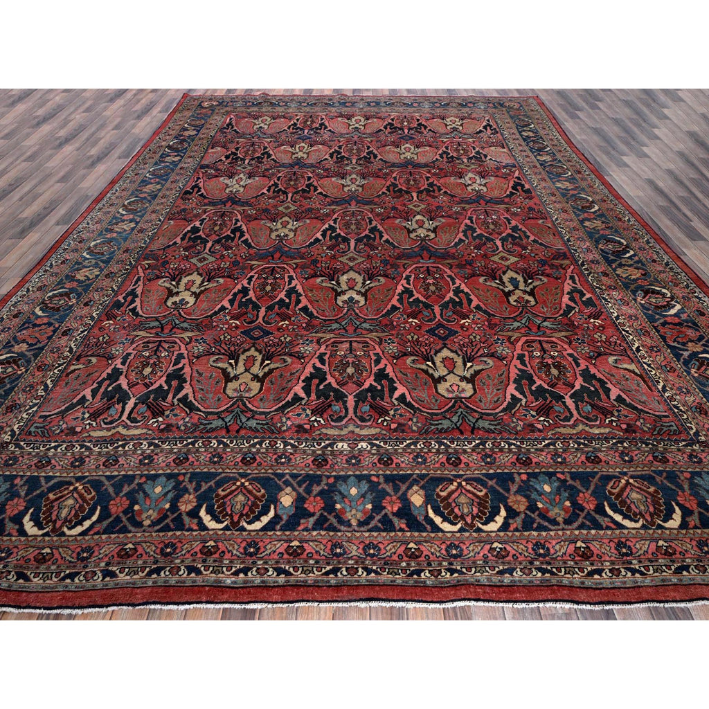 11'3"x14'5" Crimson Red, Antique Persian Bijar Garus, Even Wear, Clean, Sides And Ends Professionally Secured, Hand Knotted, 100% Wool, Oriental Rug FWR8238