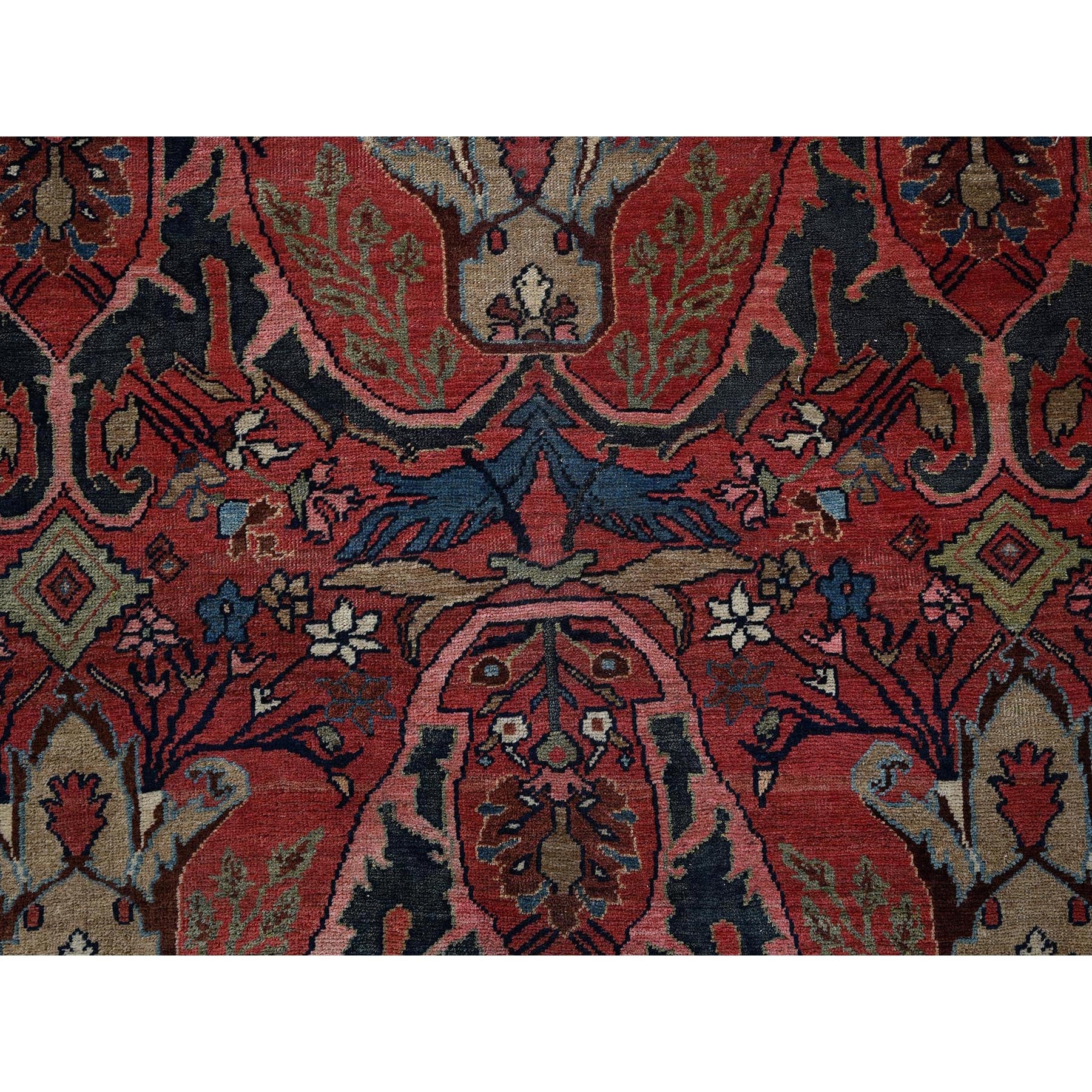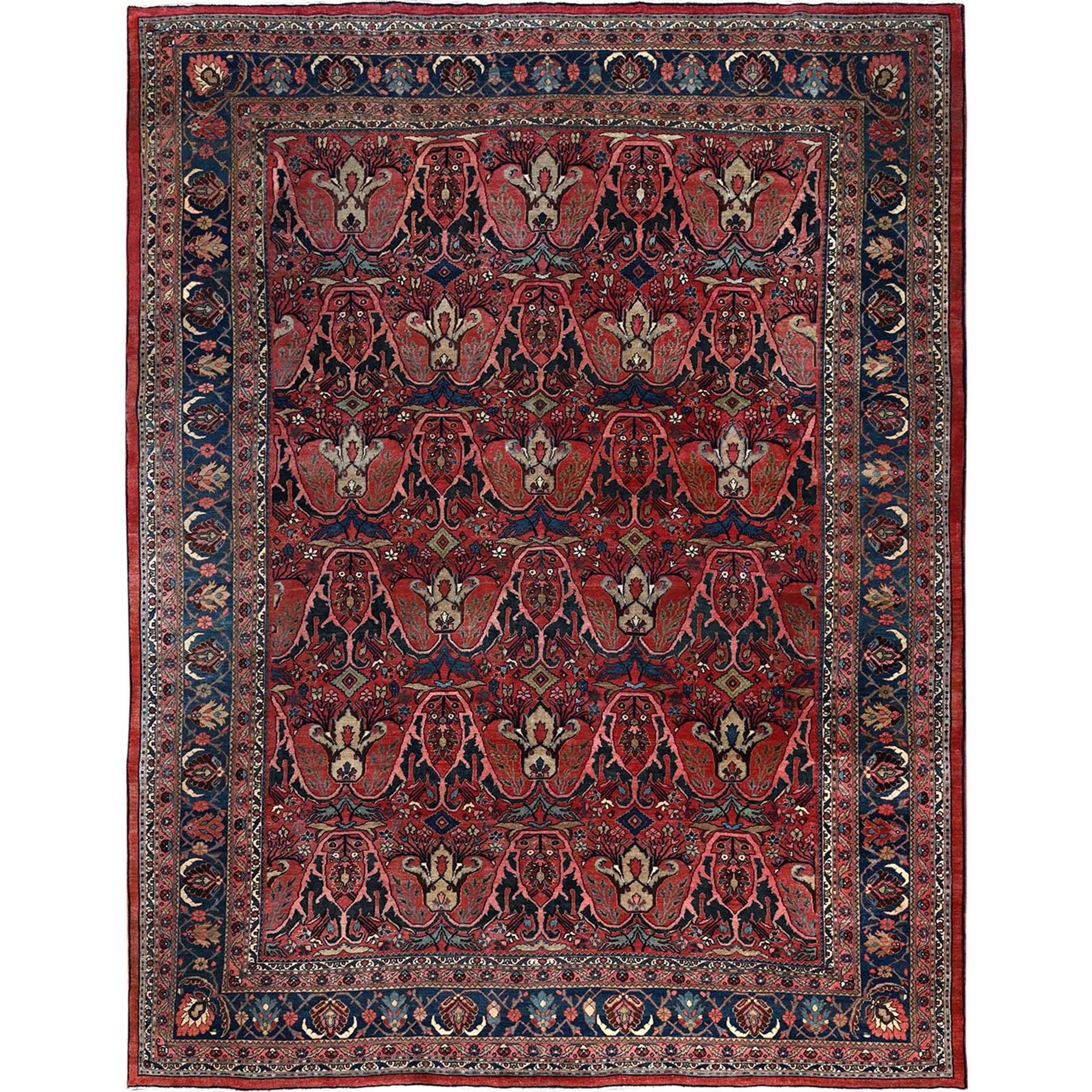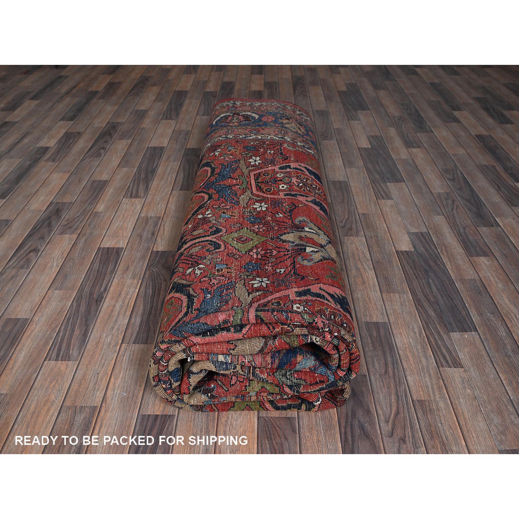 11'3"x14'5" Crimson Red, Antique Persian Bijar Garus, Even Wear, Clean, Sides And Ends Professionally Secured, Hand Knotted, 100% Wool, Oriental Rug FWR8238