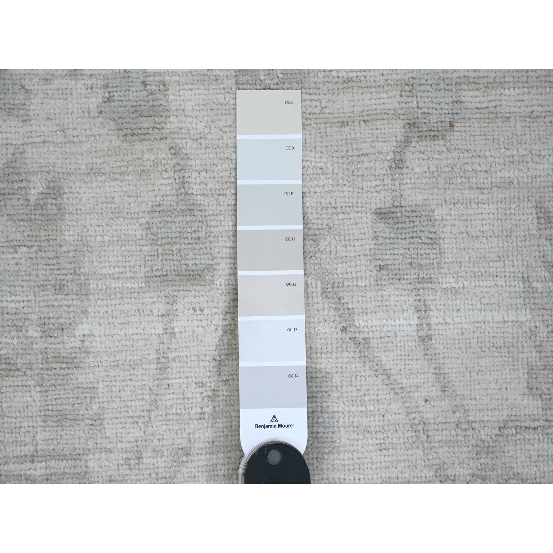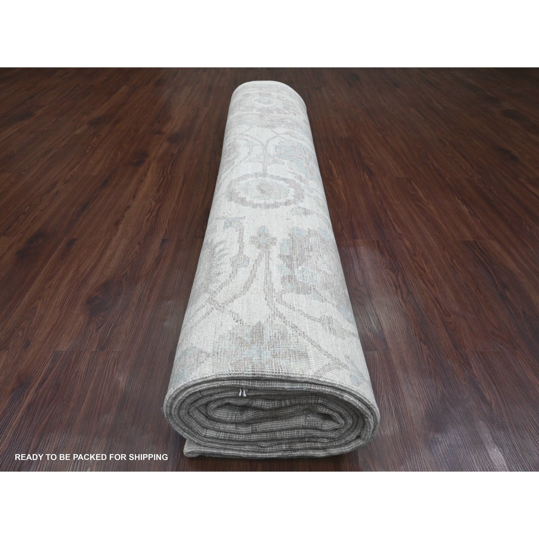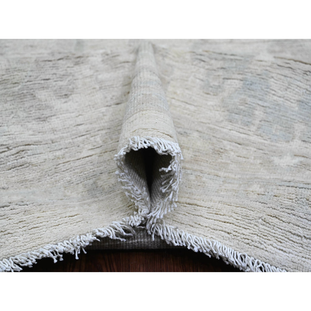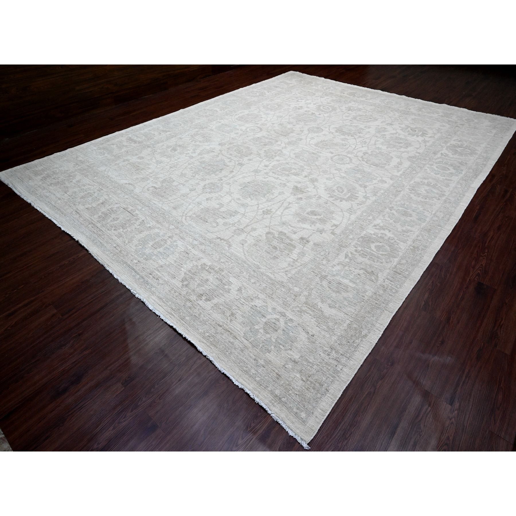 11'5"x15'1" Cascading White, 100% Wool, Washed Out Peshawar With All Over Leaf Design, Hand Knotted, Natural Dyes, Oversized, Oriental Rug FWR120684