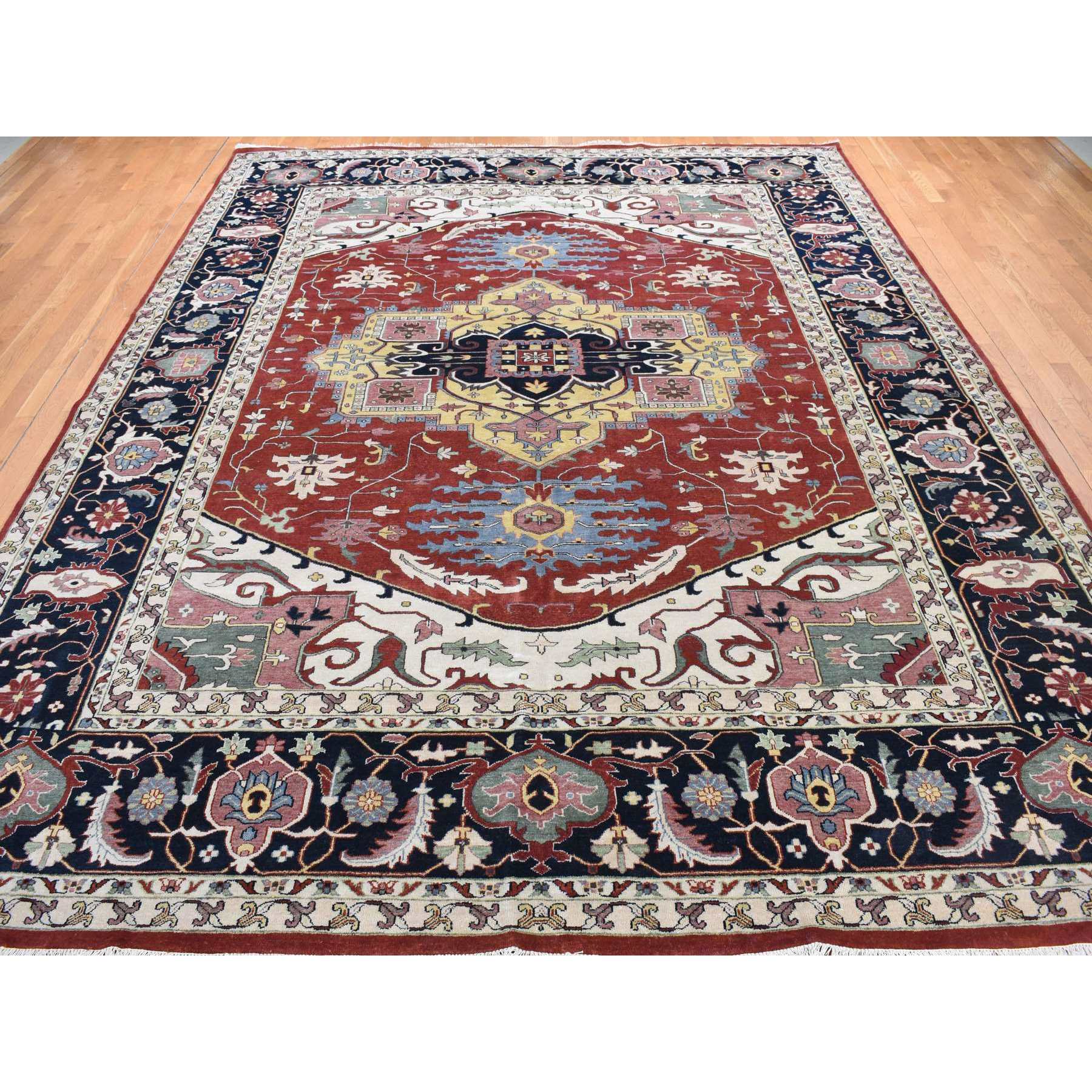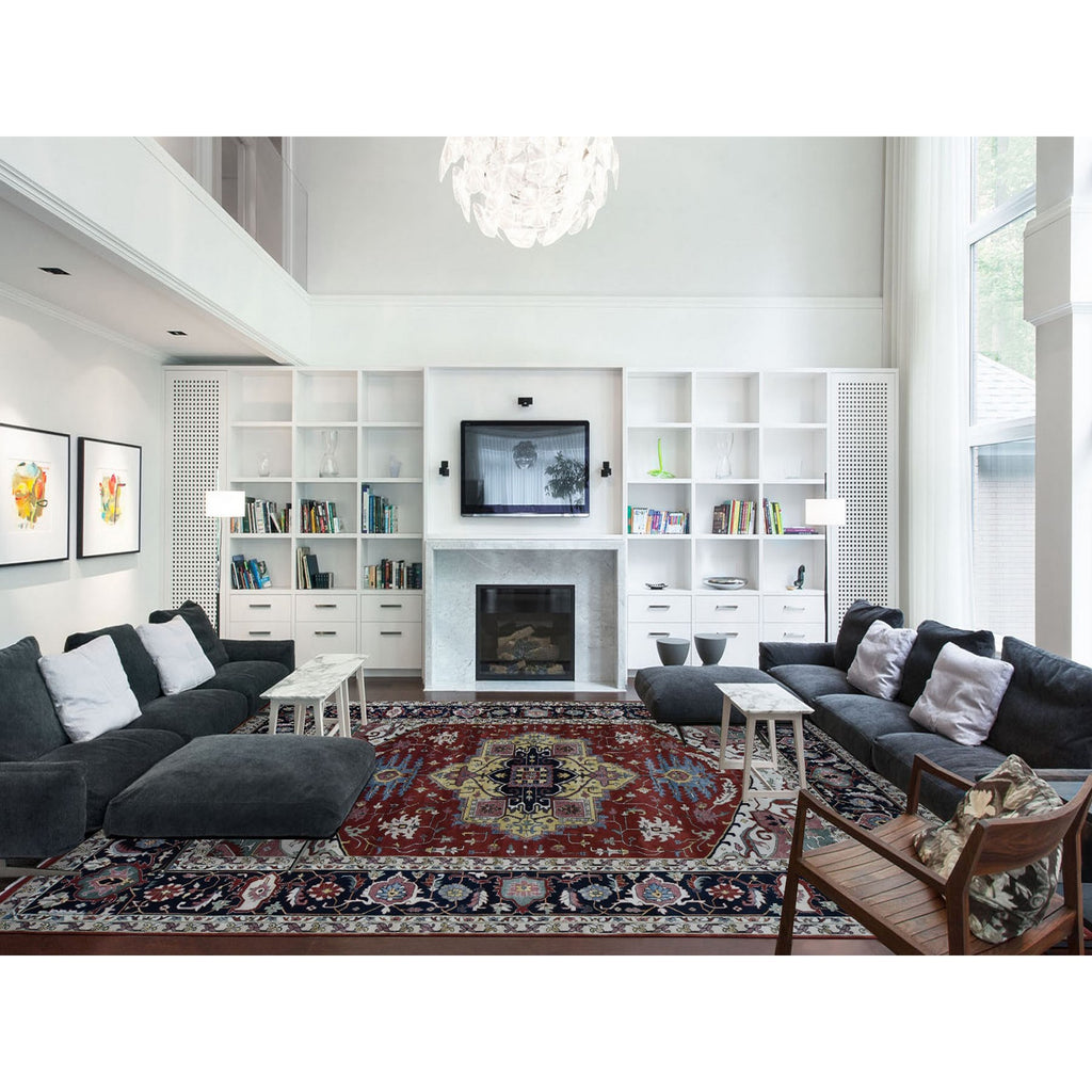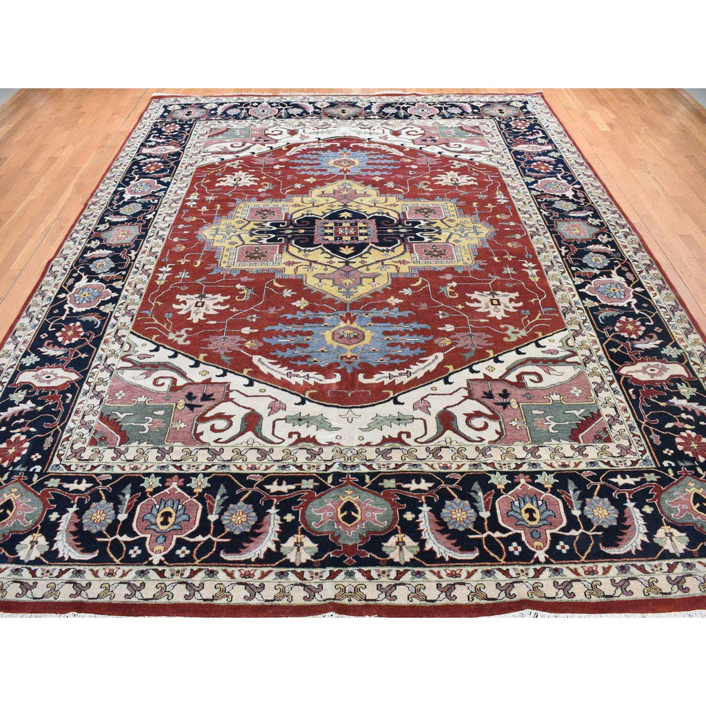 11'7"x14'10" Barn Red, Heriz Revival, Pure Wool, Hand Knotted, Oversized Oriental Rug FWR468060