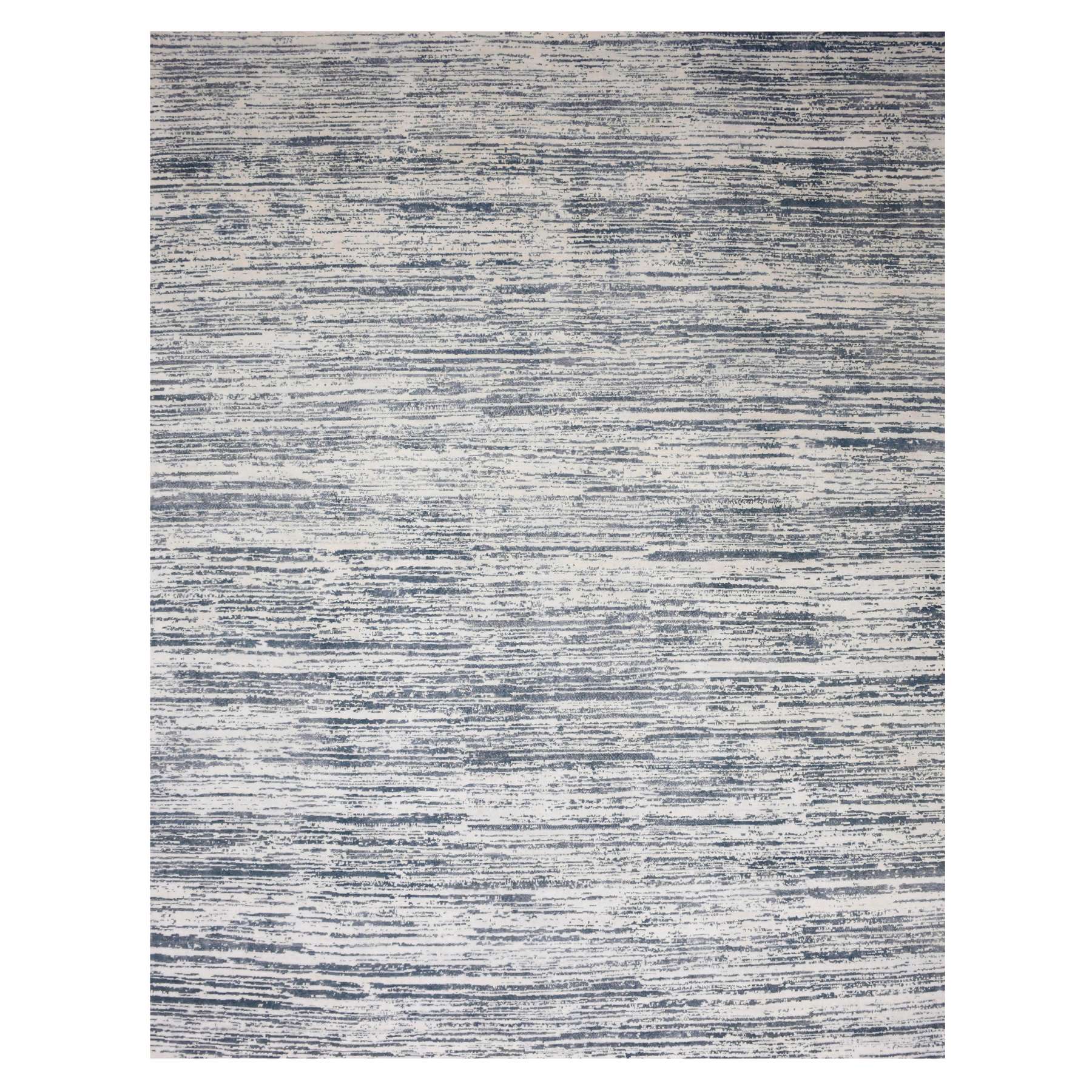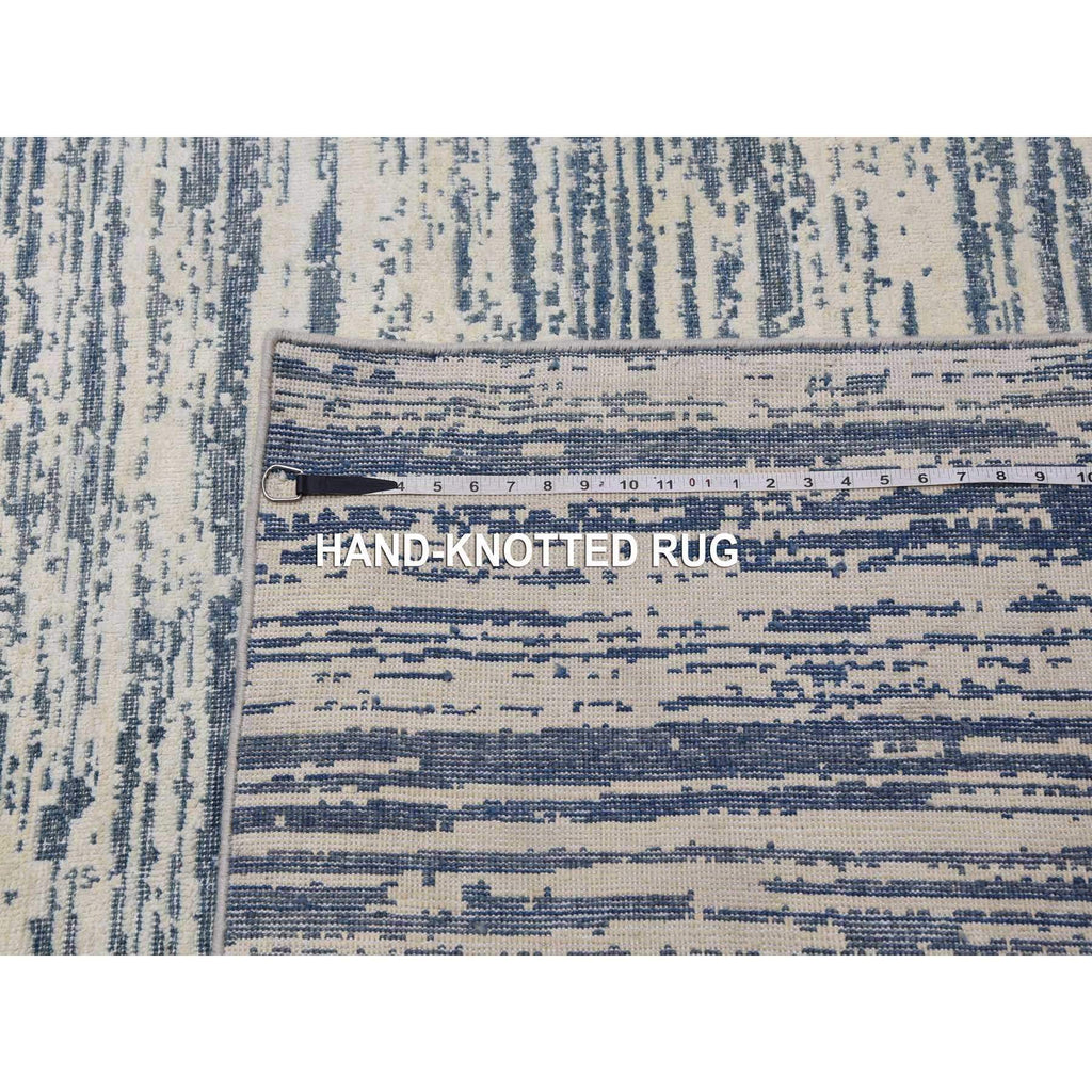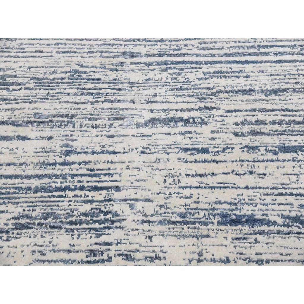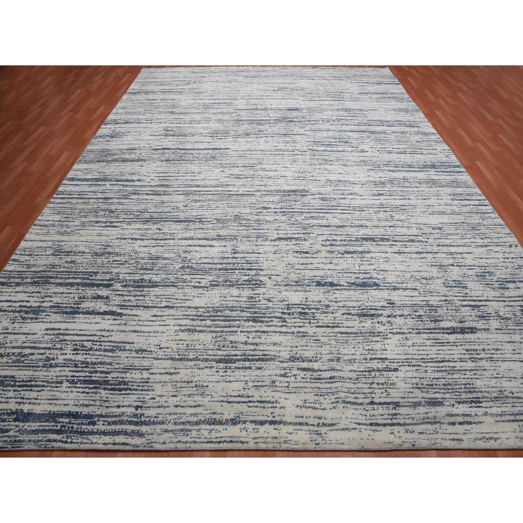 11'7"x14'10" Blue And Ivory, Modern Striae Design Pure Silk With Textured Wool Hand Knotted Tone On Tone, Oversized Oriental Rug FWR450966