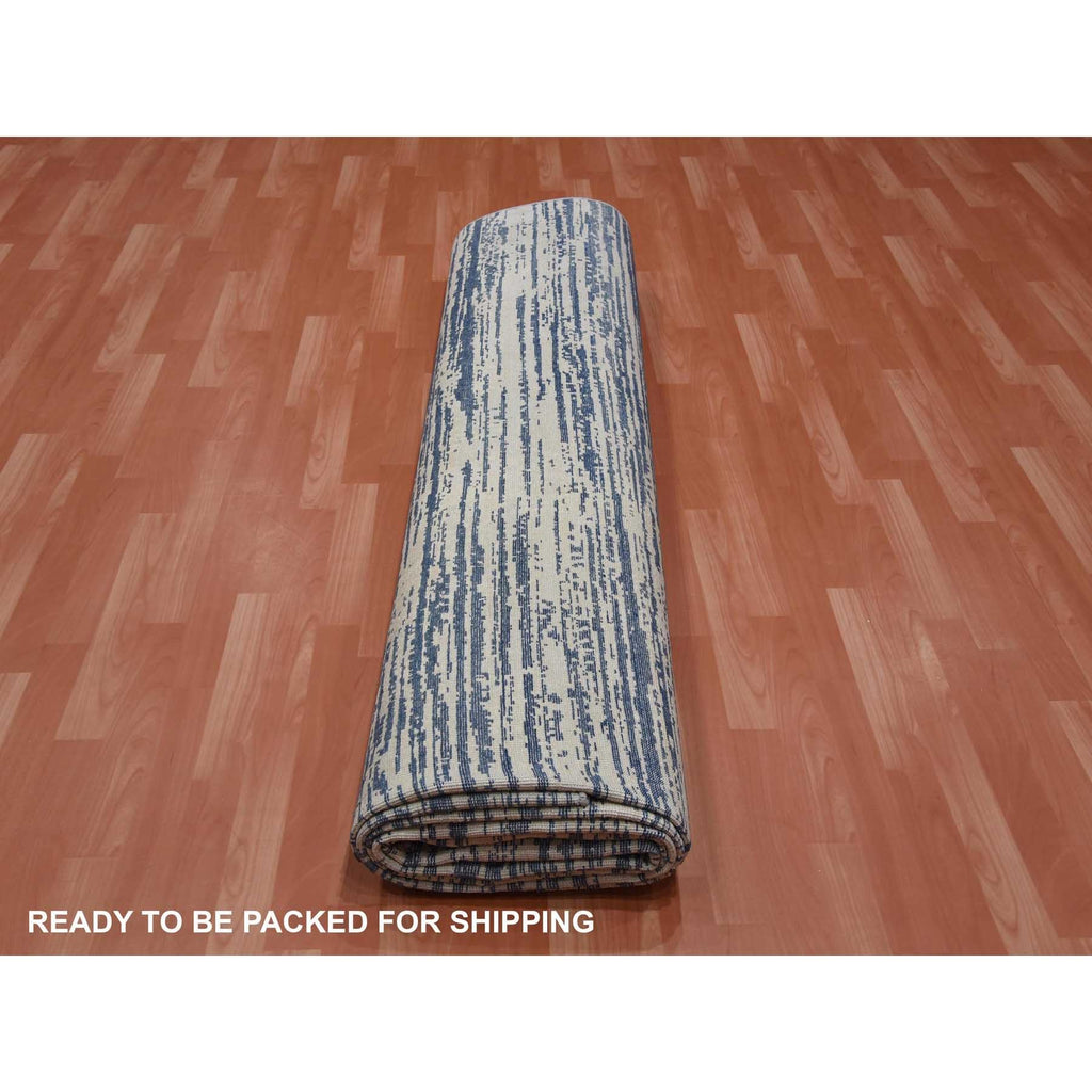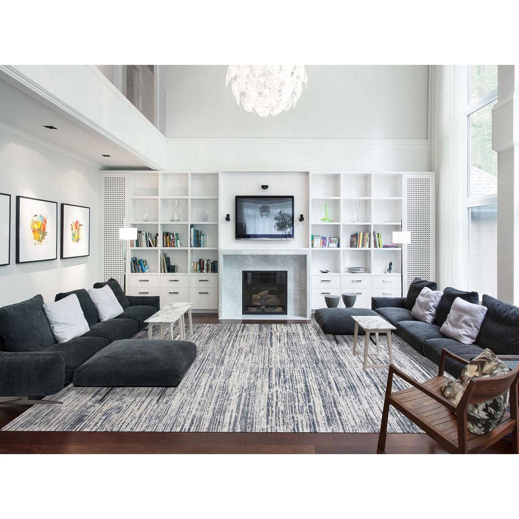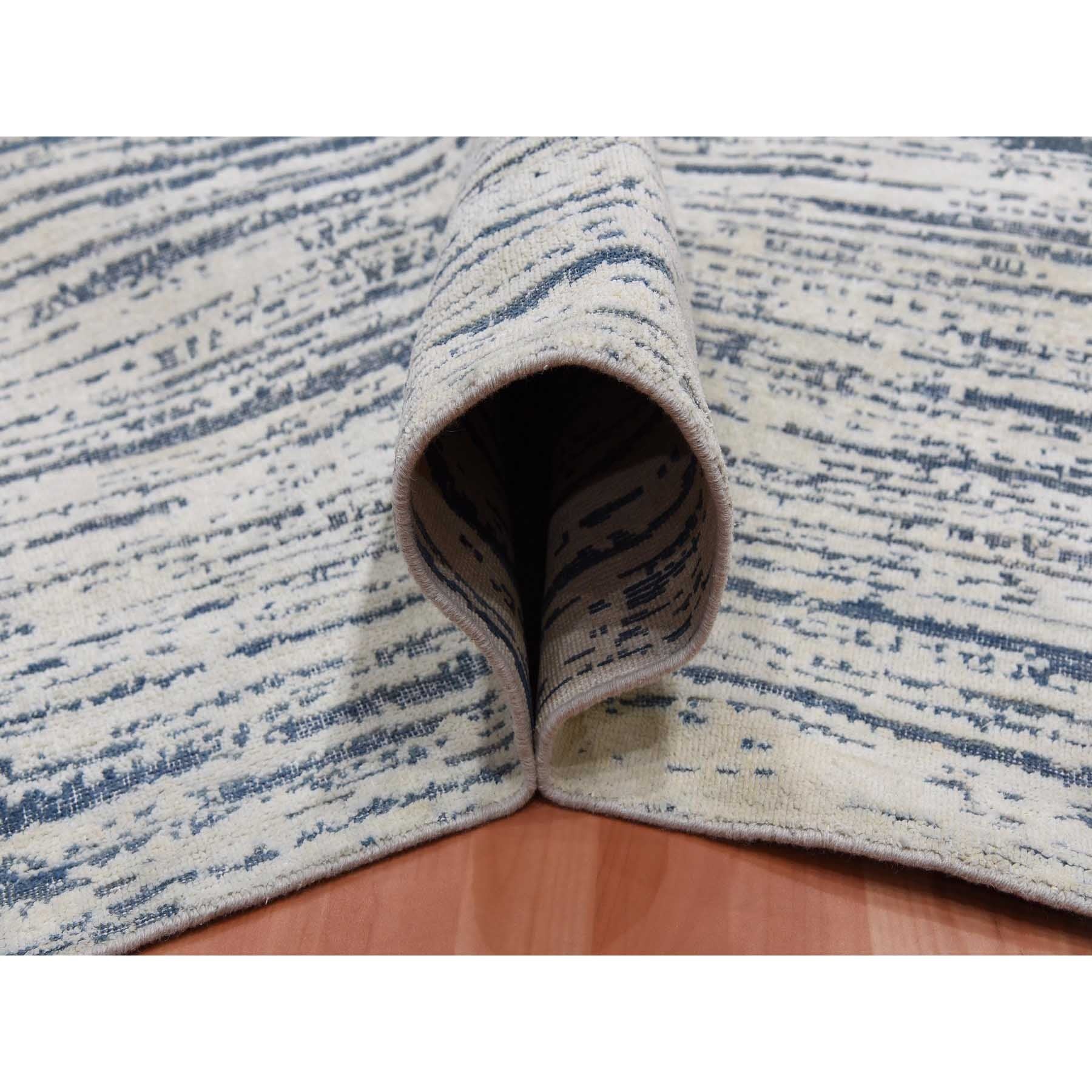 11'7"x14'10" Blue And Ivory, Modern Striae Design Pure Silk With Textured Wool Hand Knotted Tone On Tone, Oversized Oriental Rug FWR450966