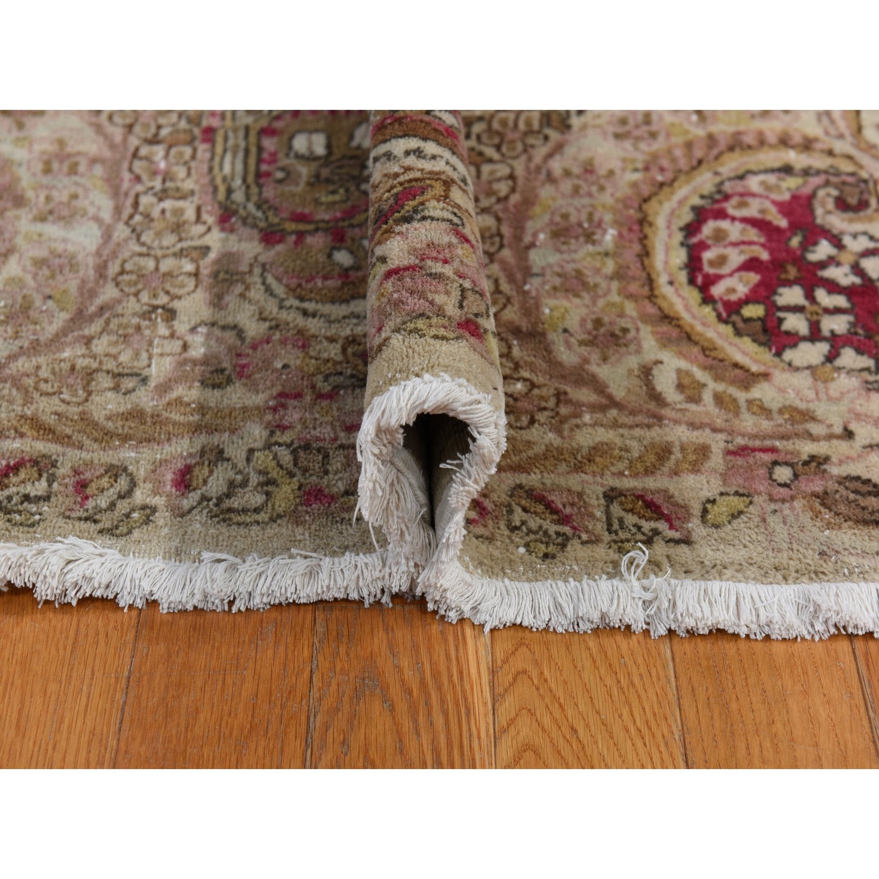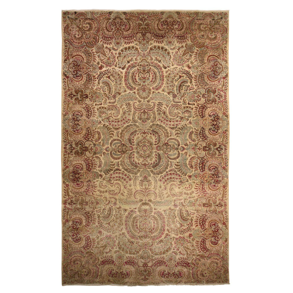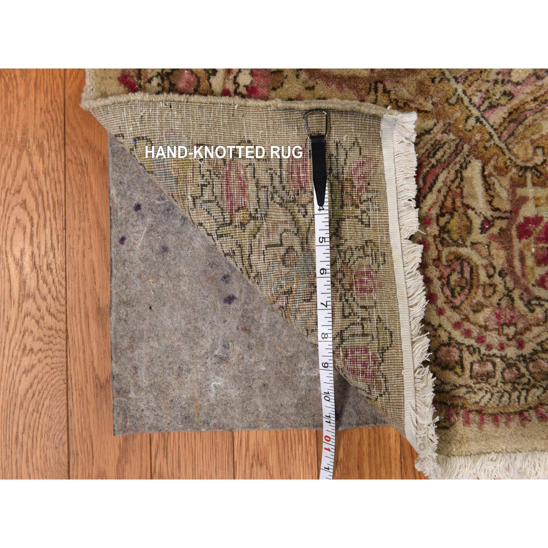 11'7"x19'3" Bone White, Antique Persian Kerman, Clean, Some Wear, Sides And Ends Secured, 100% Wool, Hand Knotted, Oversized, Oriental Rug FWR469974