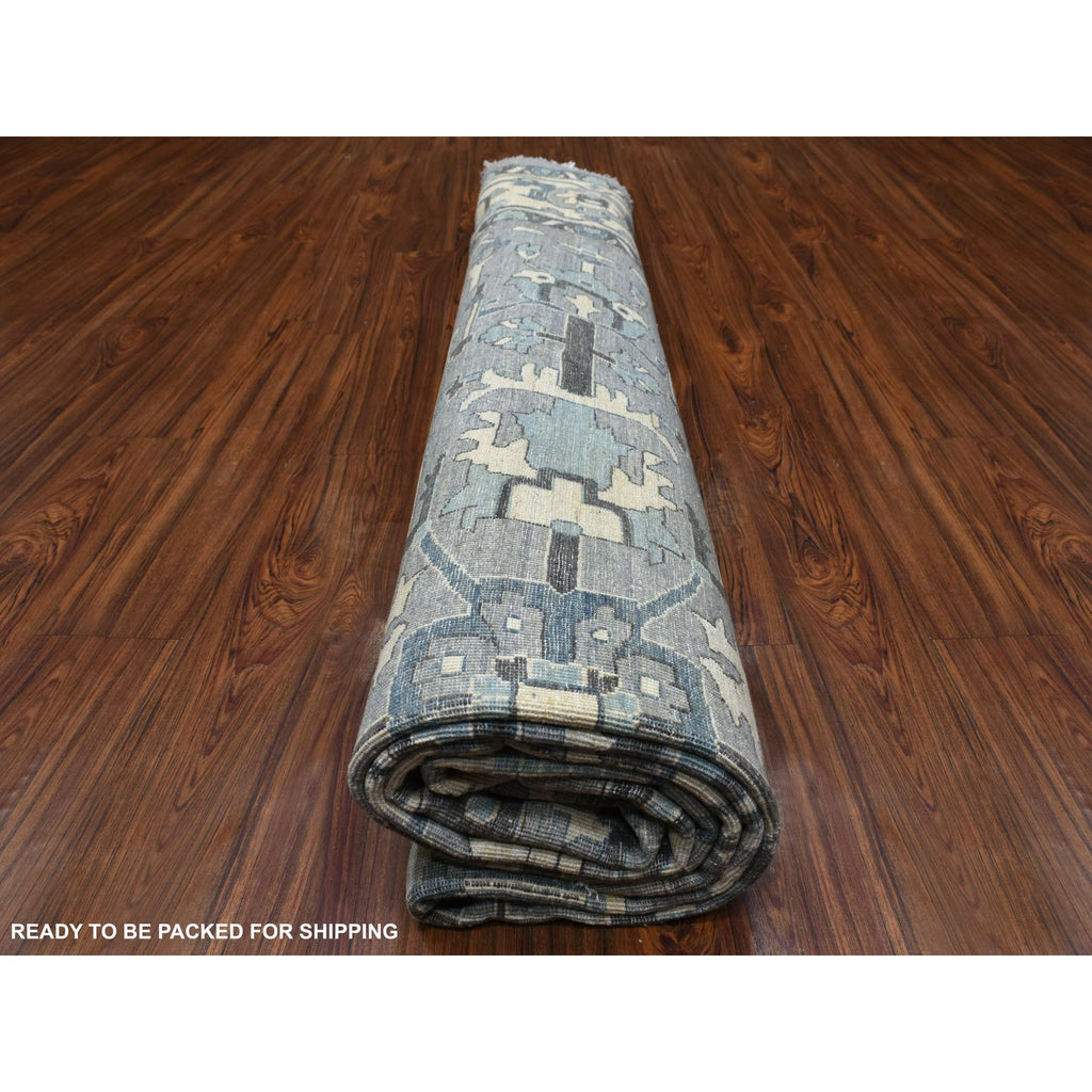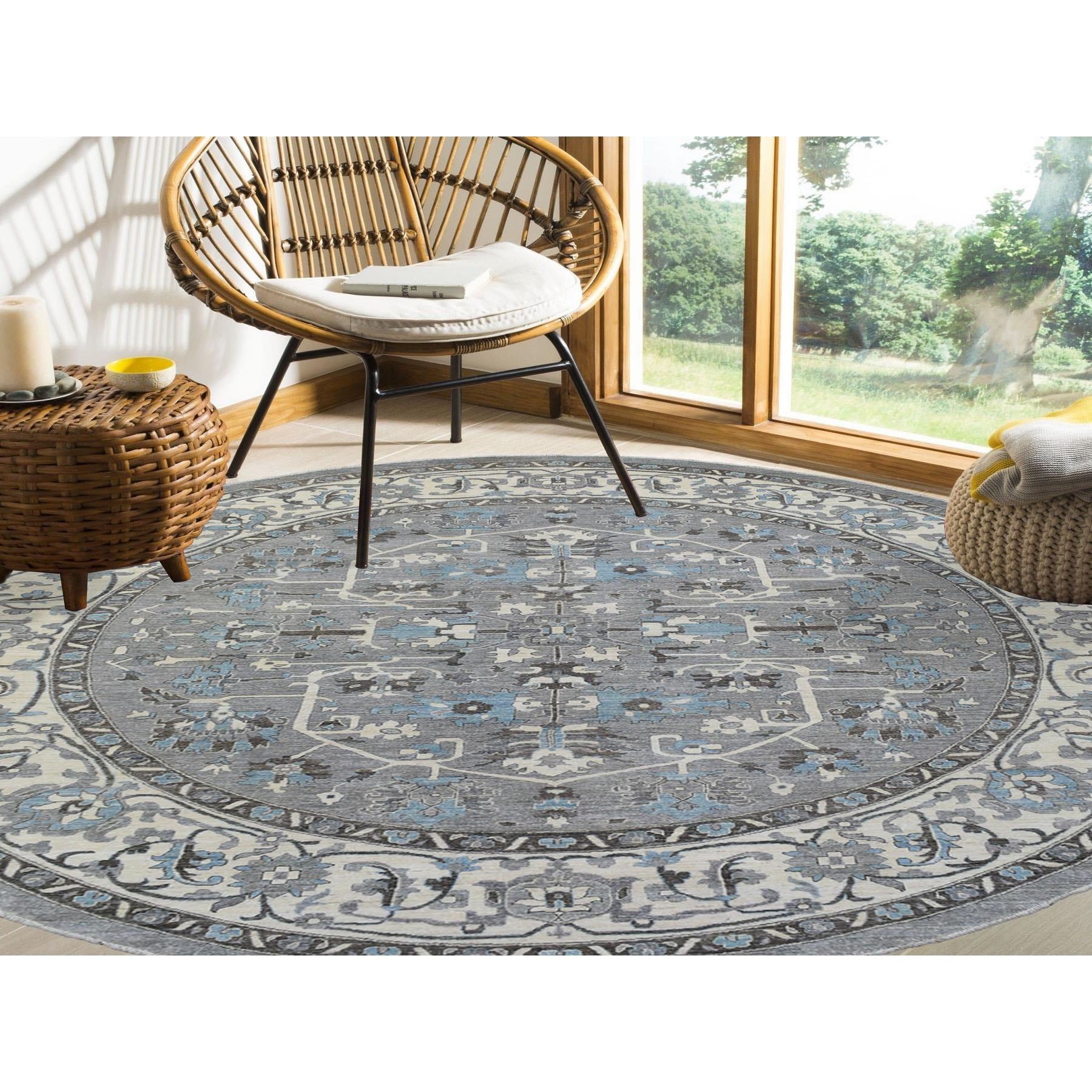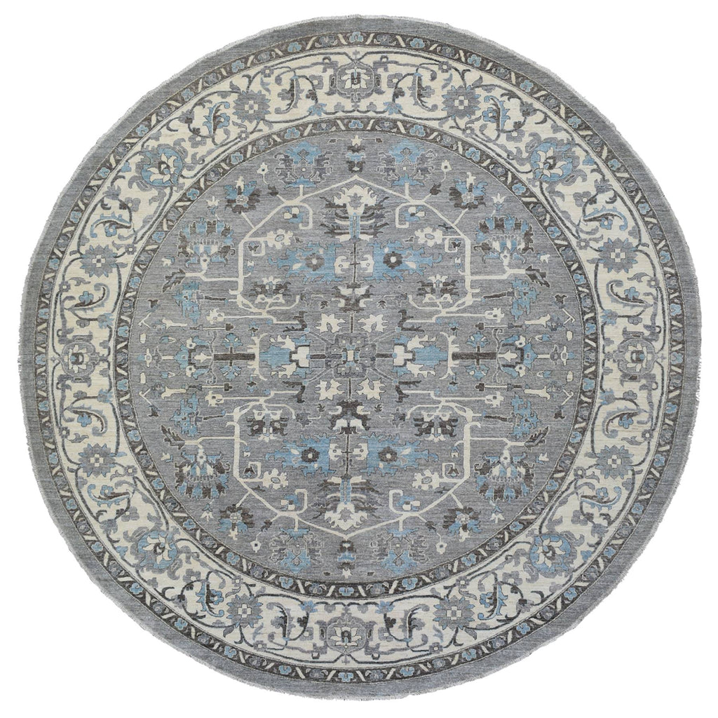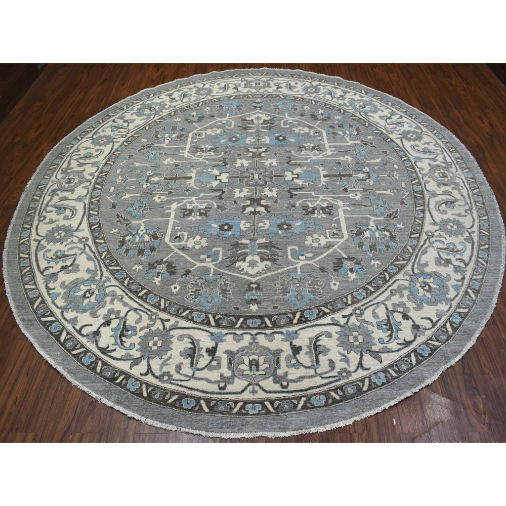11'8"x11'8" Hand Knotted Gray Heriz Fine Peshawar With All Over Design Pure Wool Oriental Round Rug FWR417912