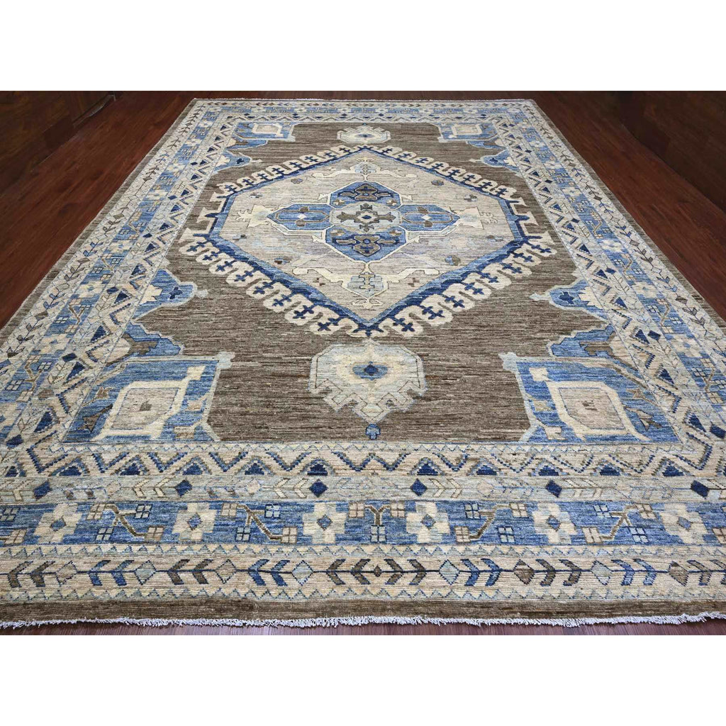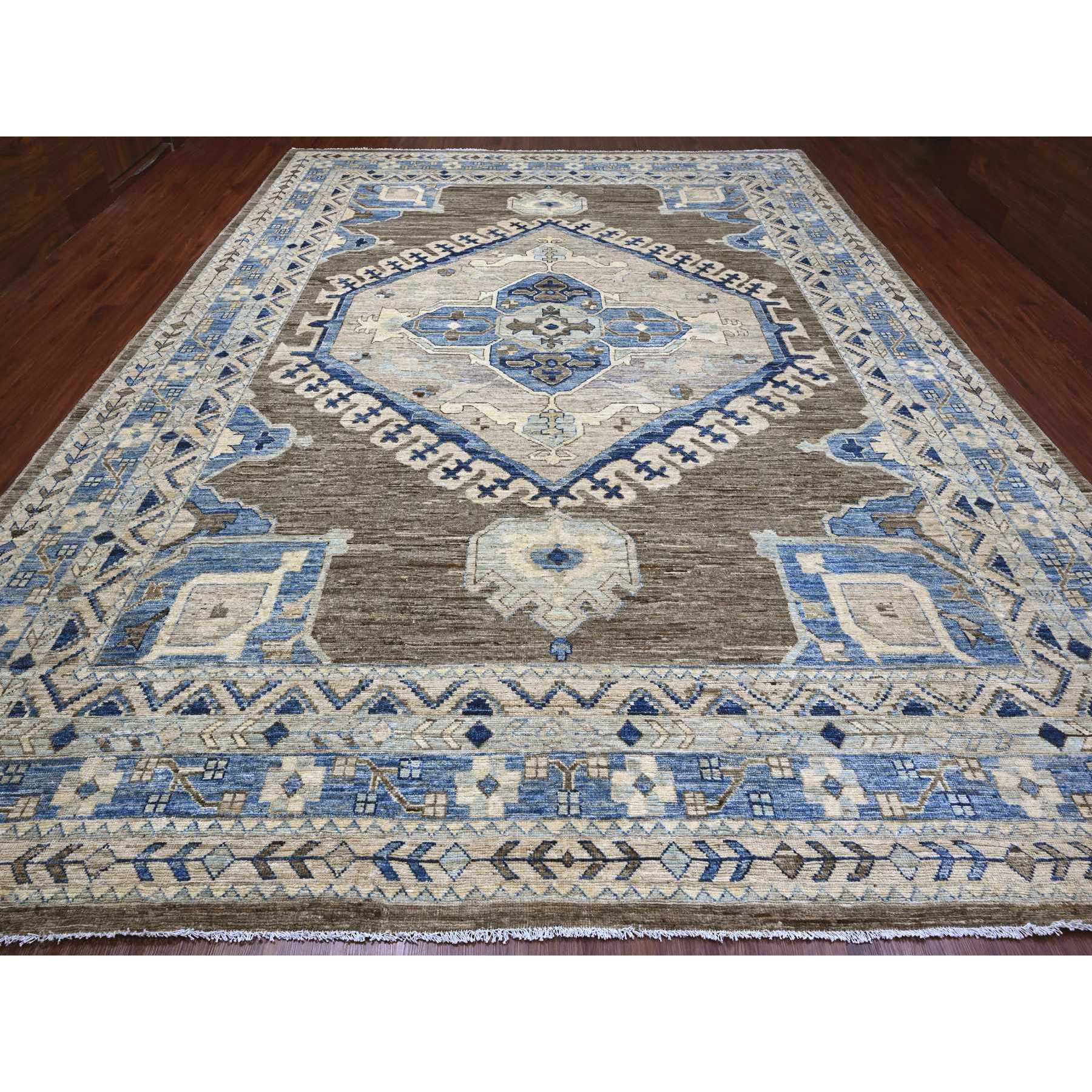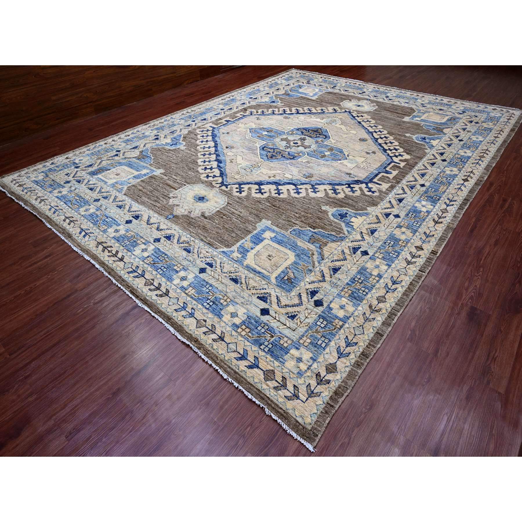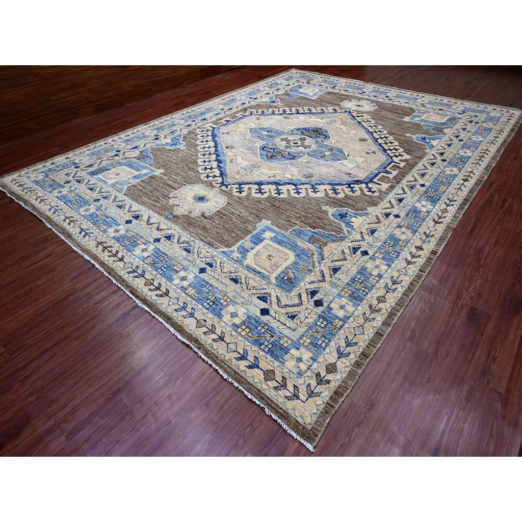 11'8"x15'6" Walnut Brown, Afghan Peshawar With Anatolian Village Inspired Design, High Mountain Wool, Hand Knotted, Oversized, Oriental Rug FWR123228