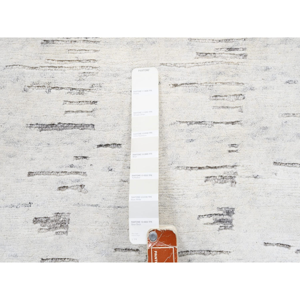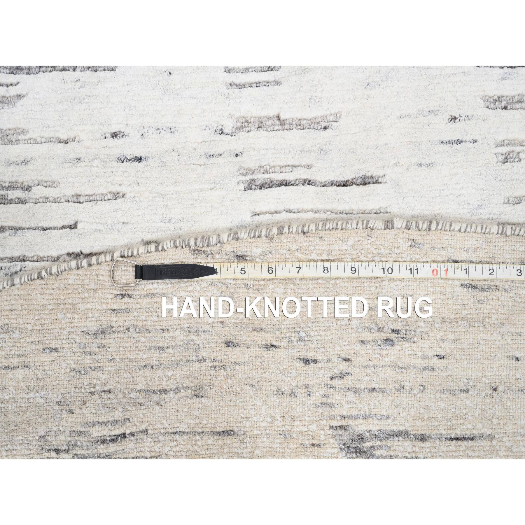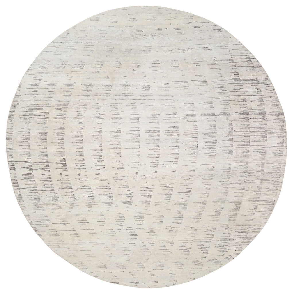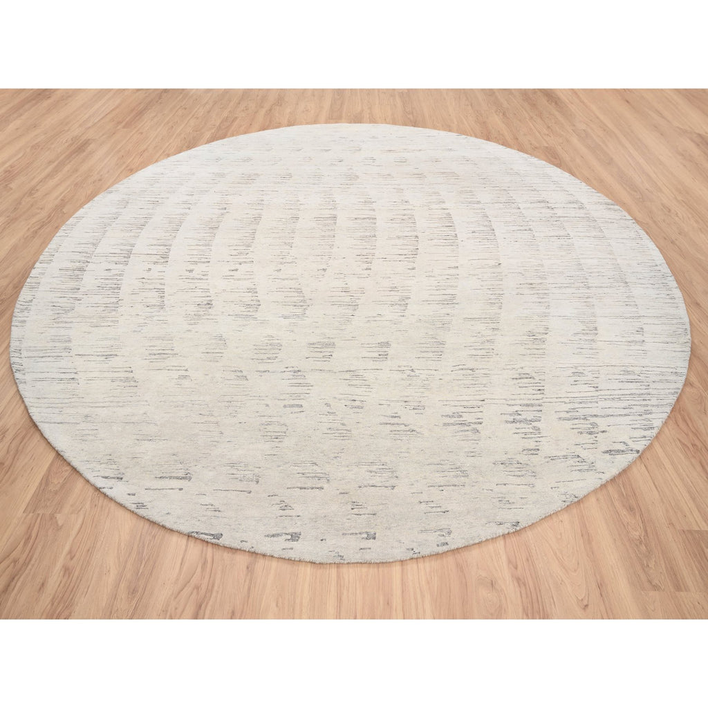 11'9"x11'9" Tone On Tone Repetitive Curvilinear Design Hand Knotted Undyed Natural Wool Ivory Oriental Round Rug FWR380274