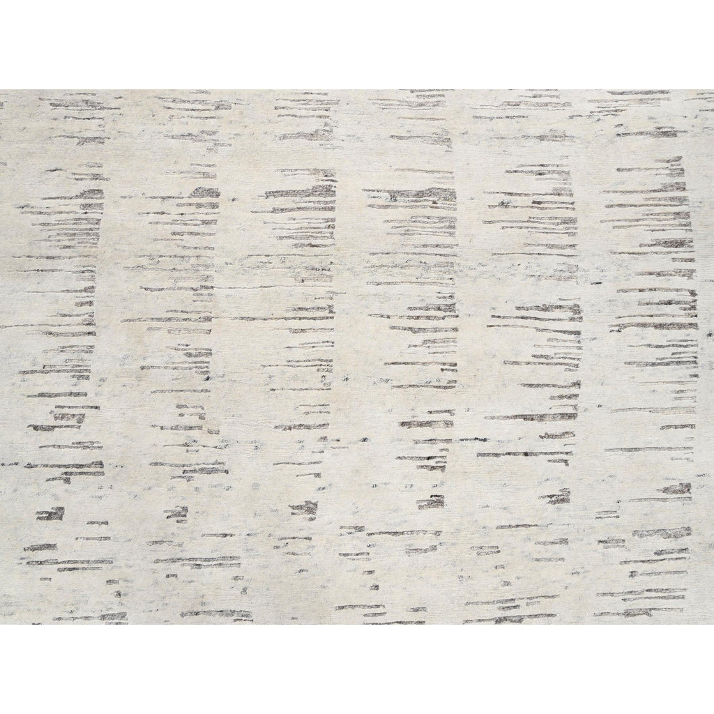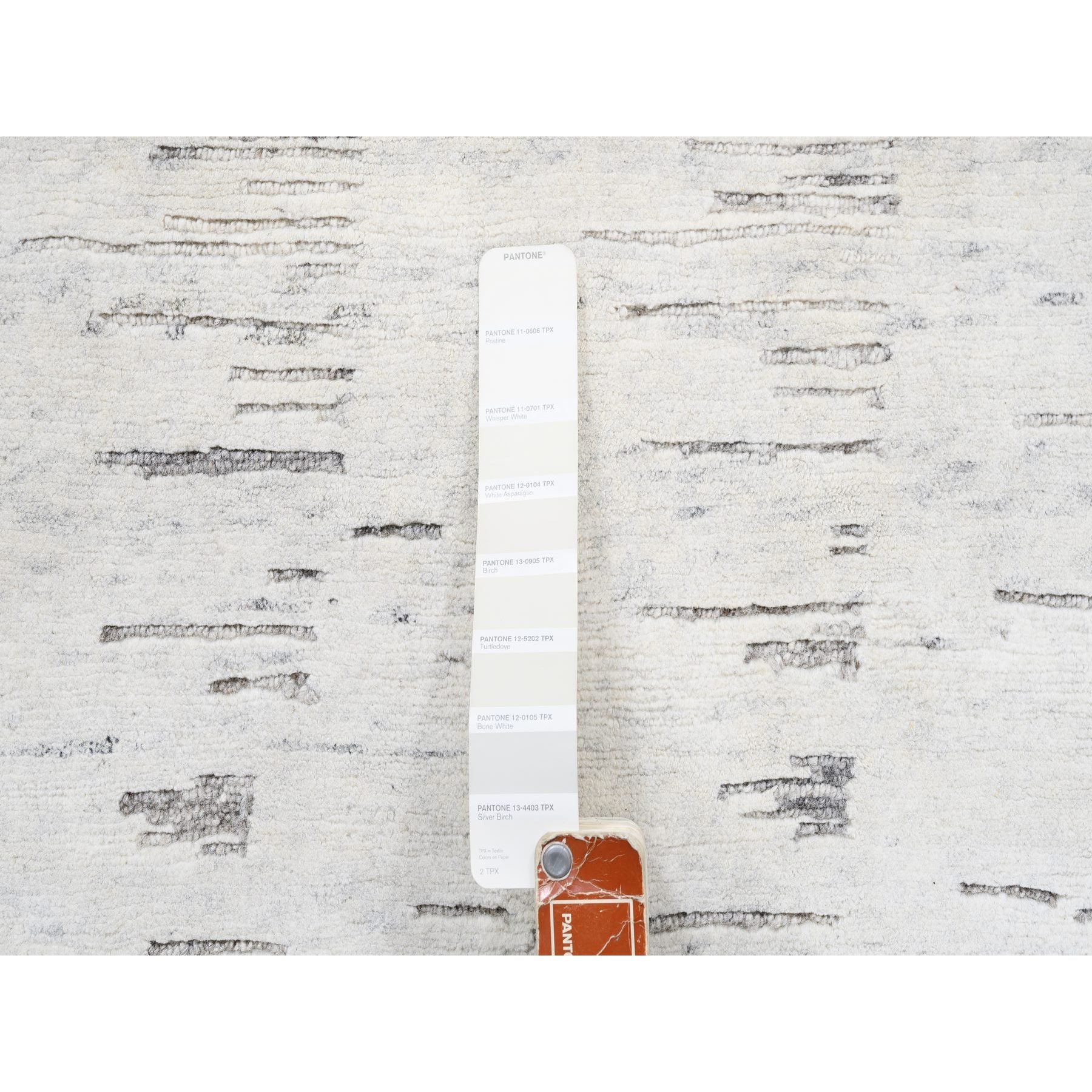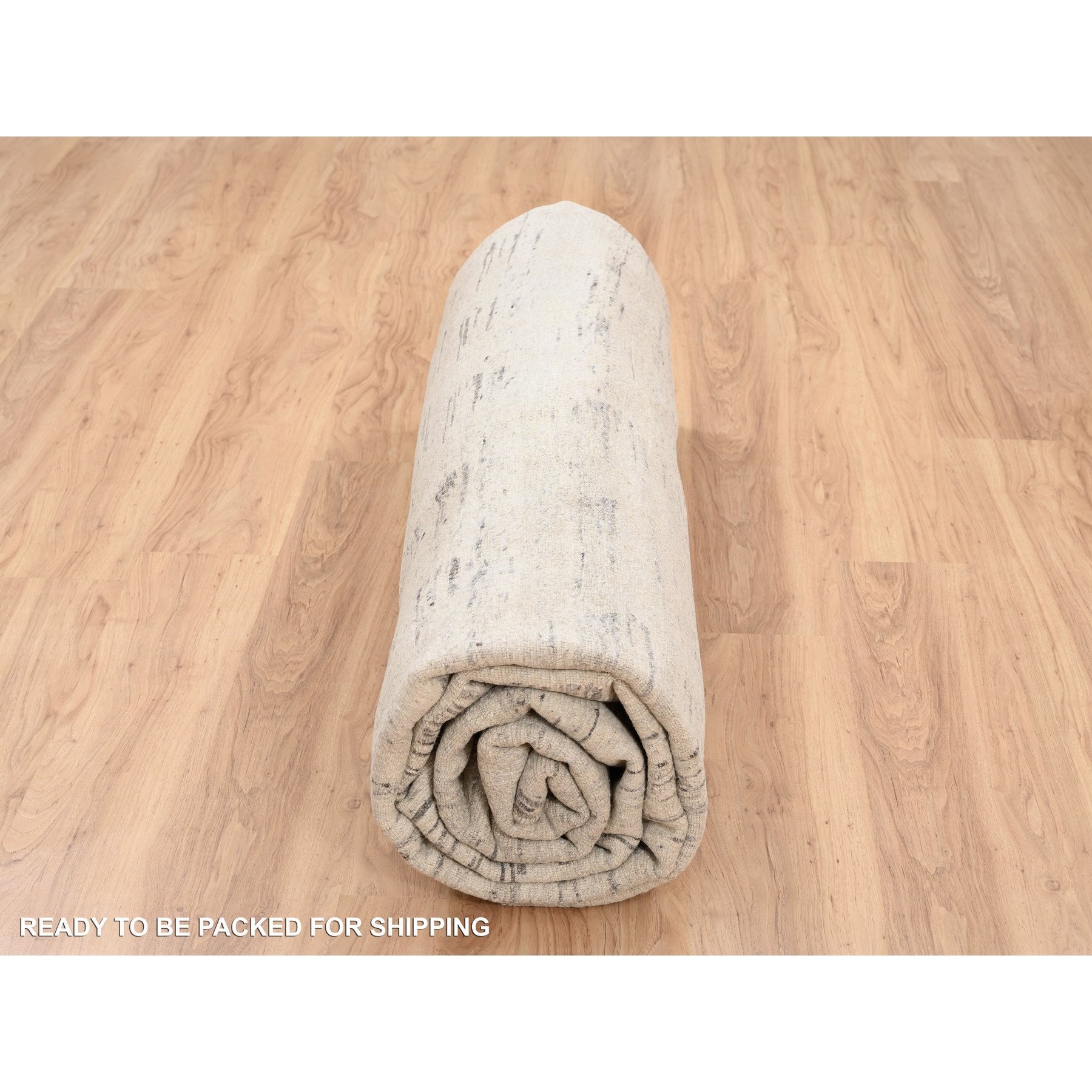11'9"x11'9" Tone On Tone Repetitive Curvilinear Design Hand Knotted Undyed Natural Wool Ivory Oriental Round Rug FWR380274