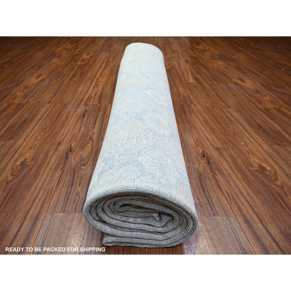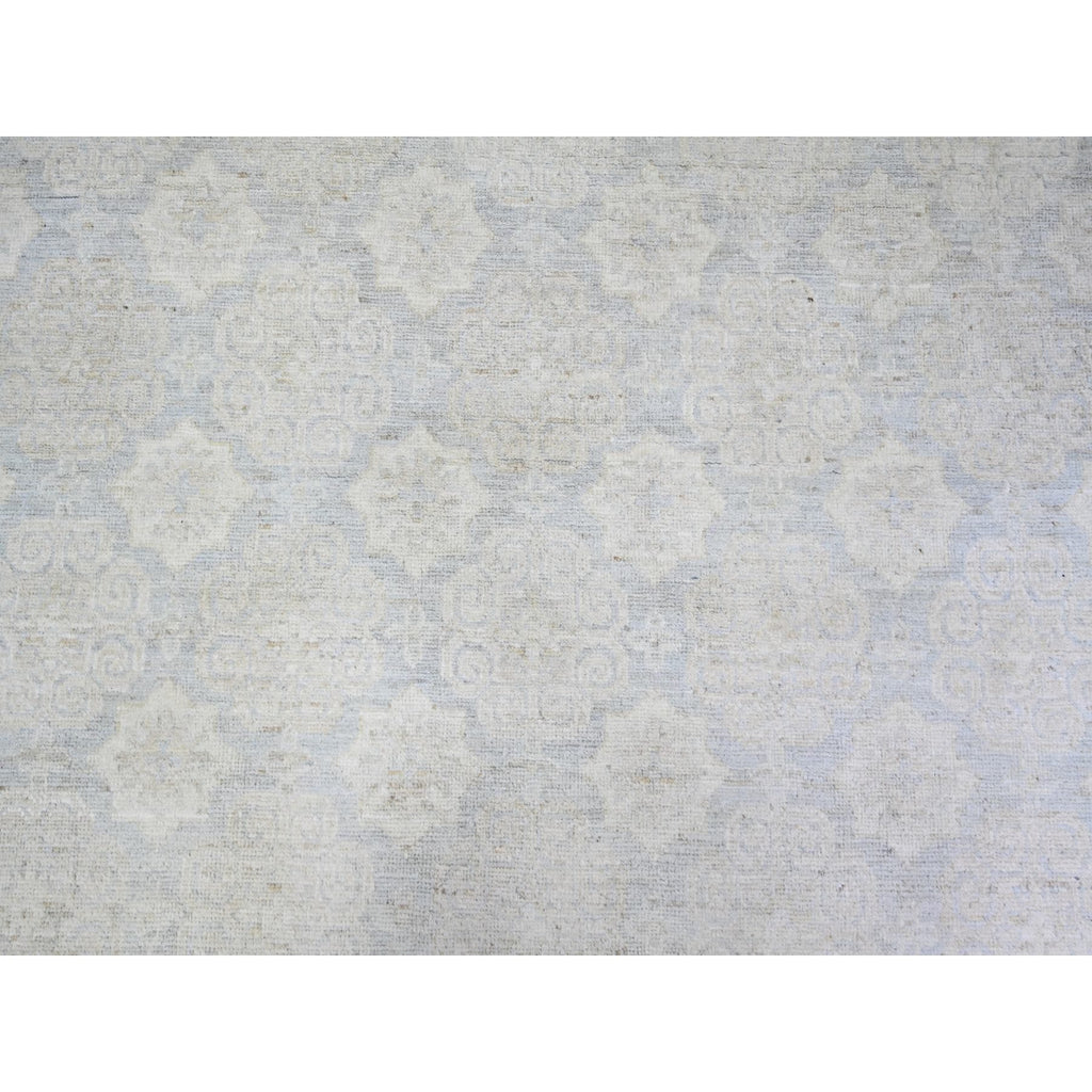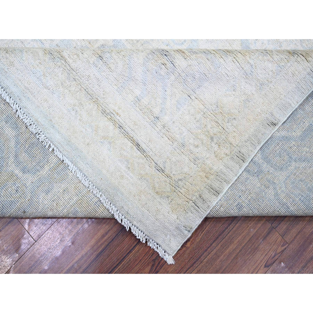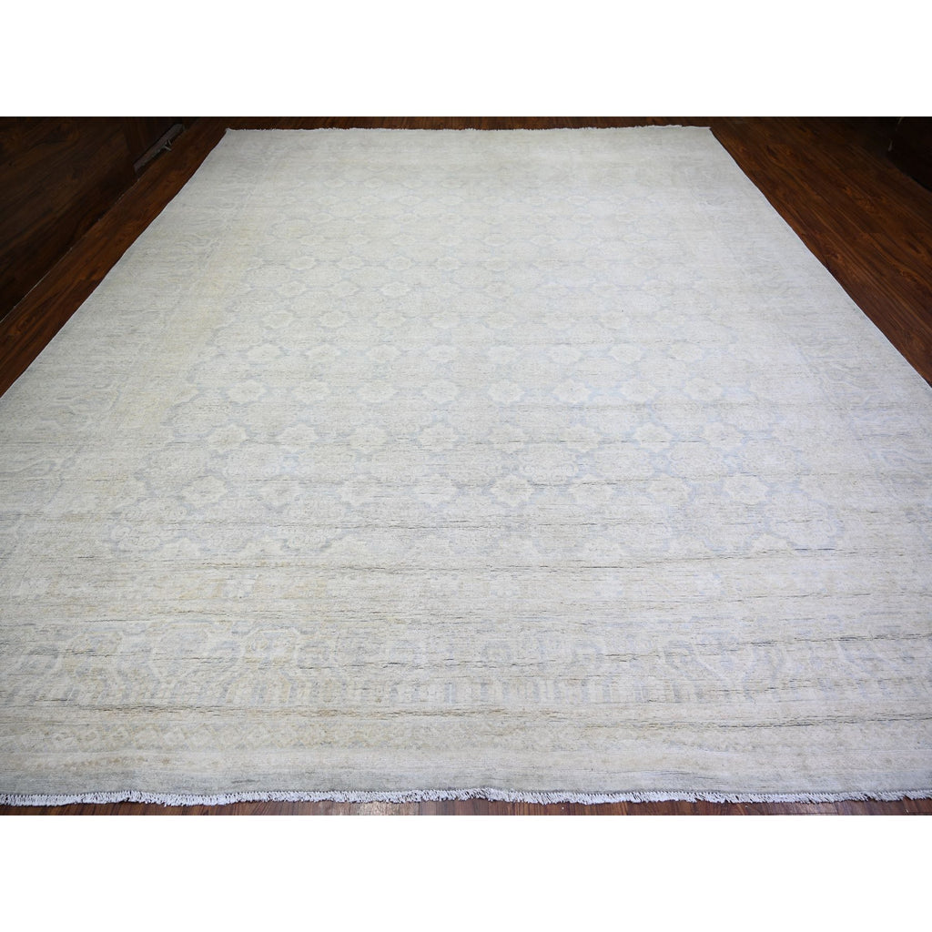 11'9"x14'3" Ice Gray, Natural Wool Hand Knotted, White Wash Peshawar With All Over Medallions Heavily Washed, Oversized Oriental Rug FWR439680