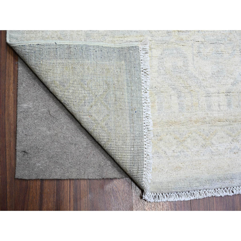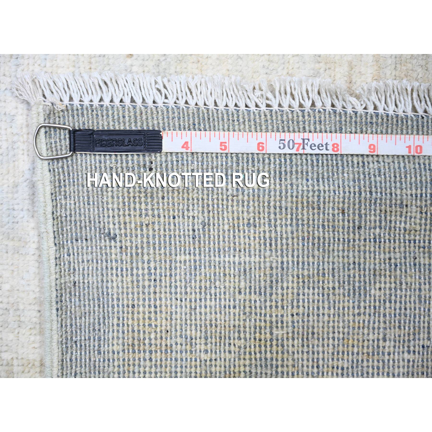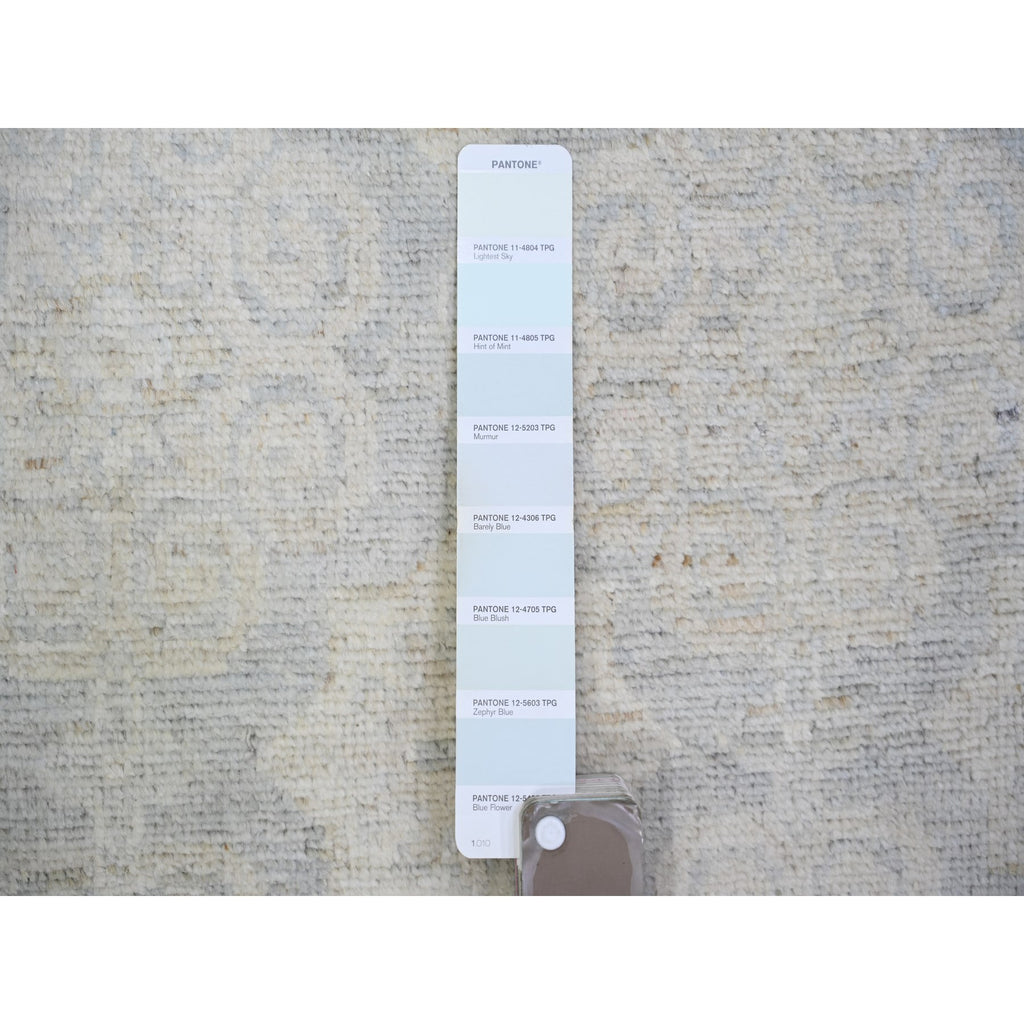 11'9"x14'3" Ice Gray, Natural Wool Hand Knotted, White Wash Peshawar With All Over Medallions Heavily Washed, Oversized Oriental Rug FWR439680