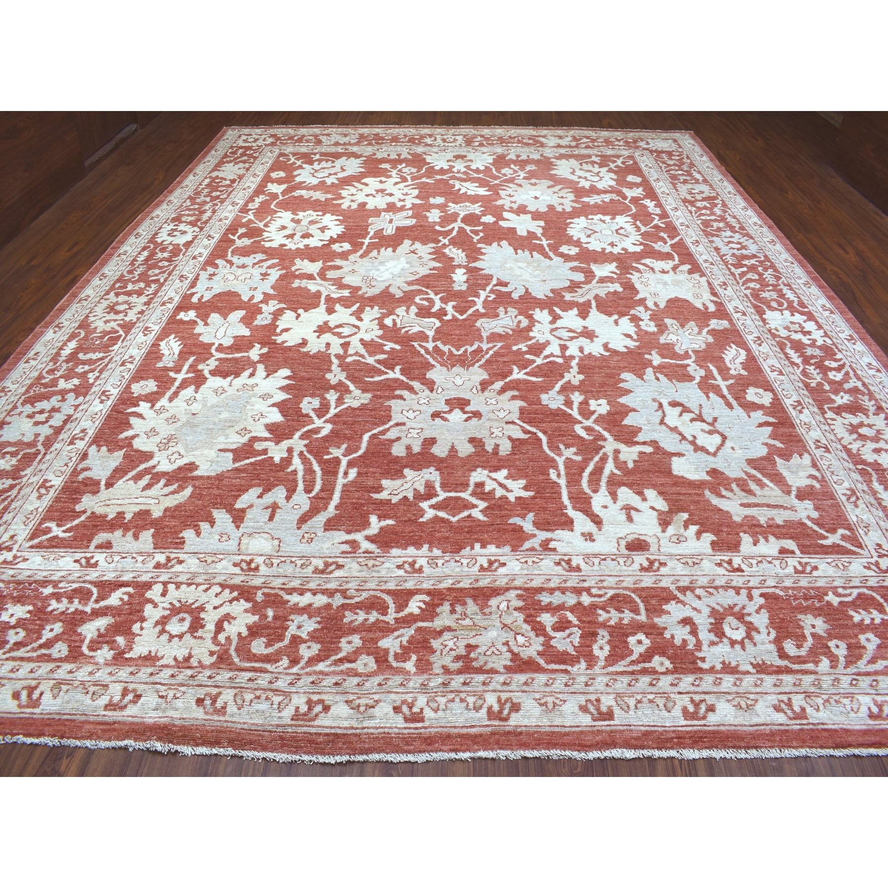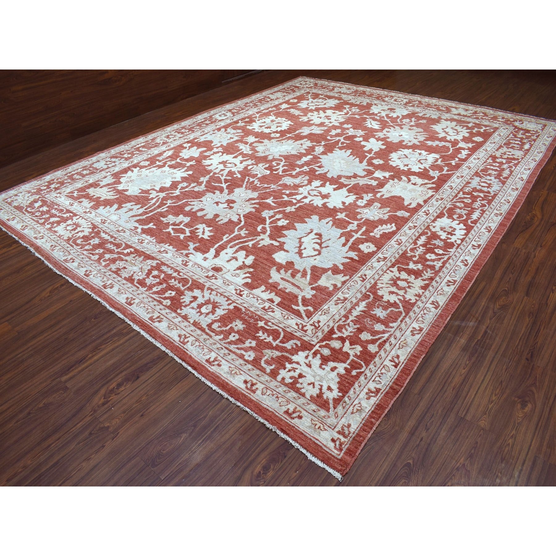 11'9"x14'9" Angora Oushak With Floral All Over Design Hand Knotted Brick Red Soft Afghan Wool Oriental Oversized Rug FWR408870