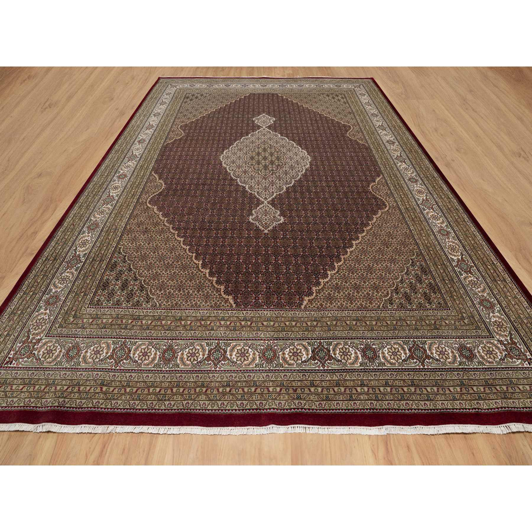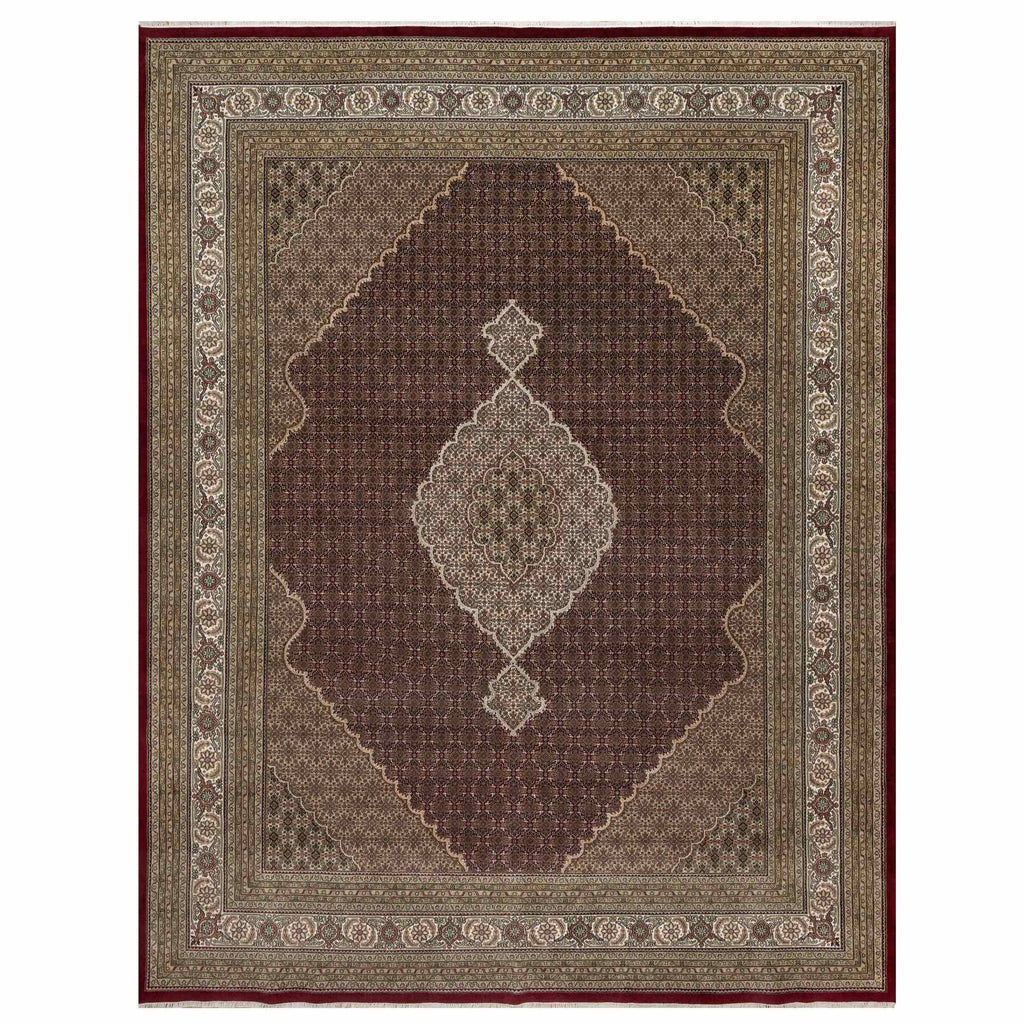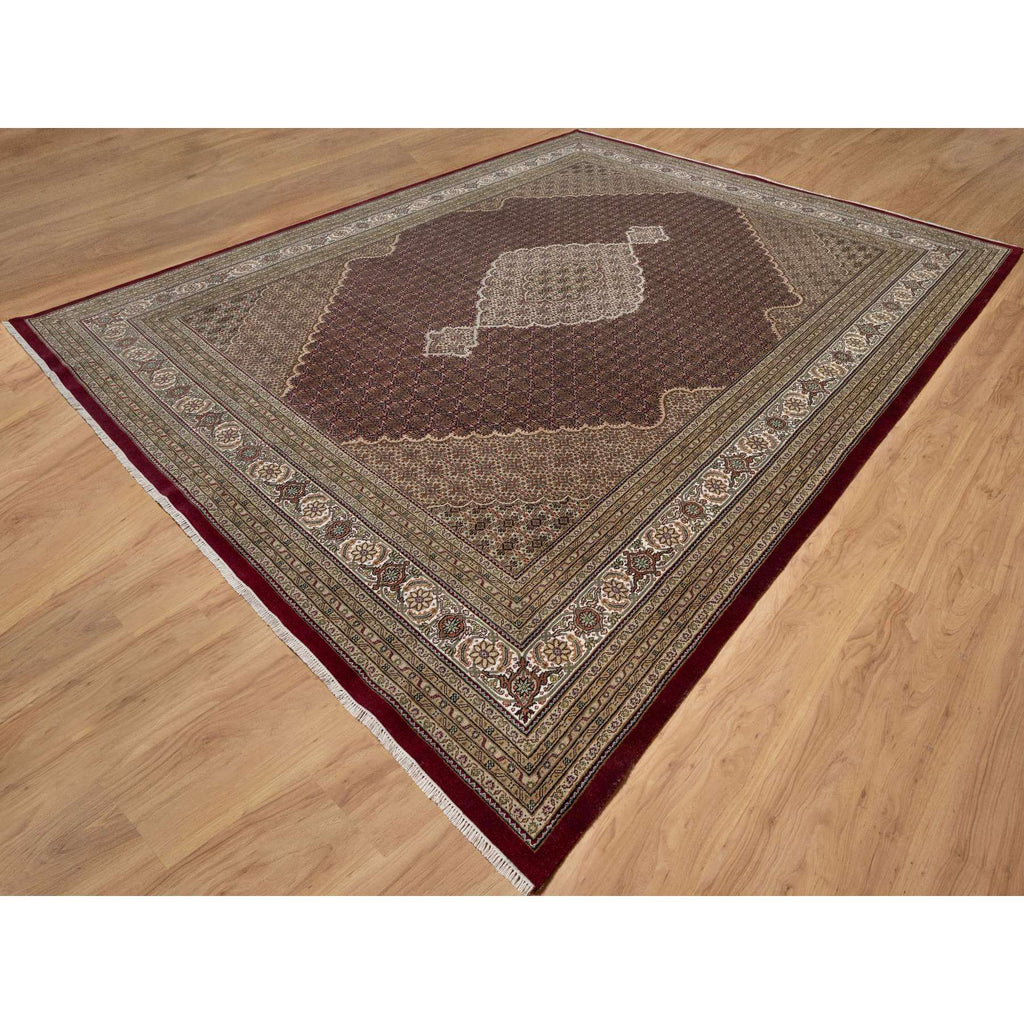 11'9"x15'1" Carmine Red, Tabriz Mahi With Fish Medallion Design, Soft Wool, Hand Knotted, Densely Woven, Oversized, Oriental Rug FWR546360